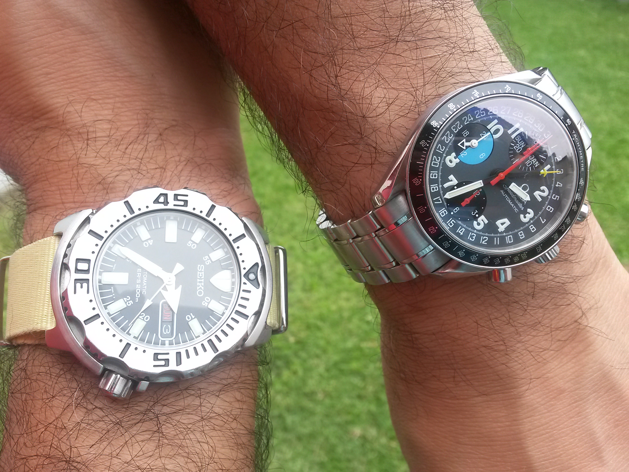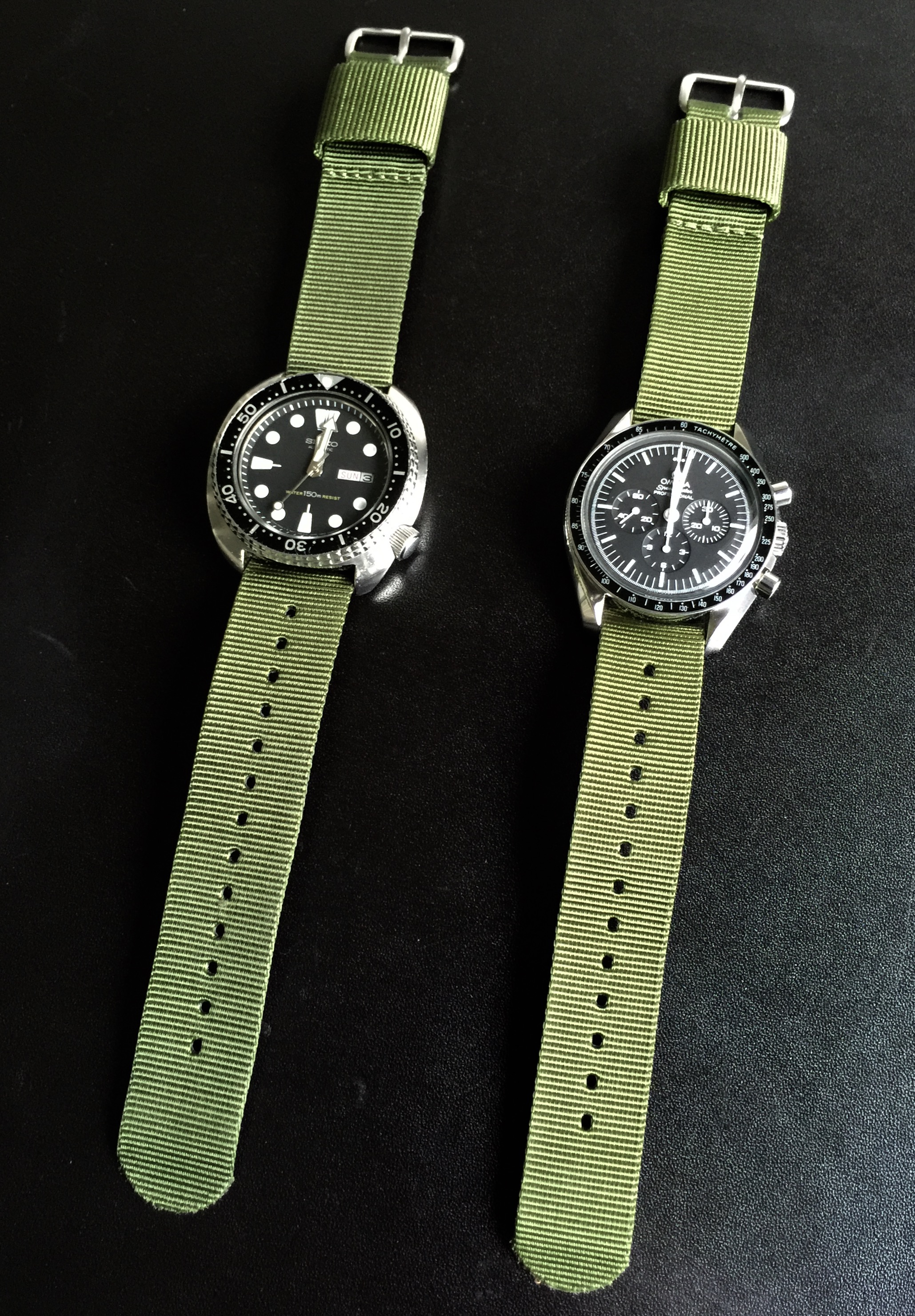 Double dogging it today with Psycho Pseiko 6309 and Speedy Gonzales...both on green nylon NATO straps from cheapestnatostraps.com...