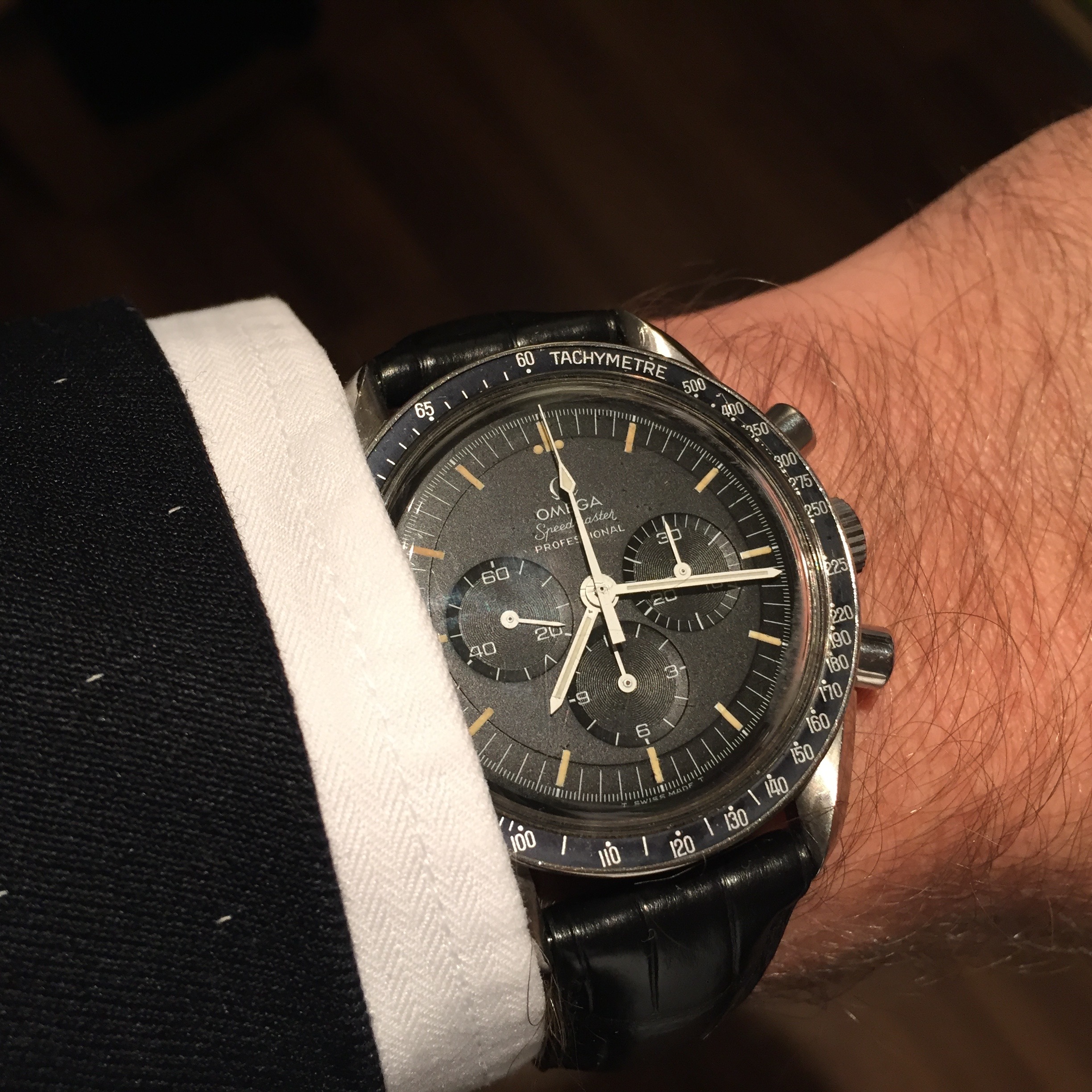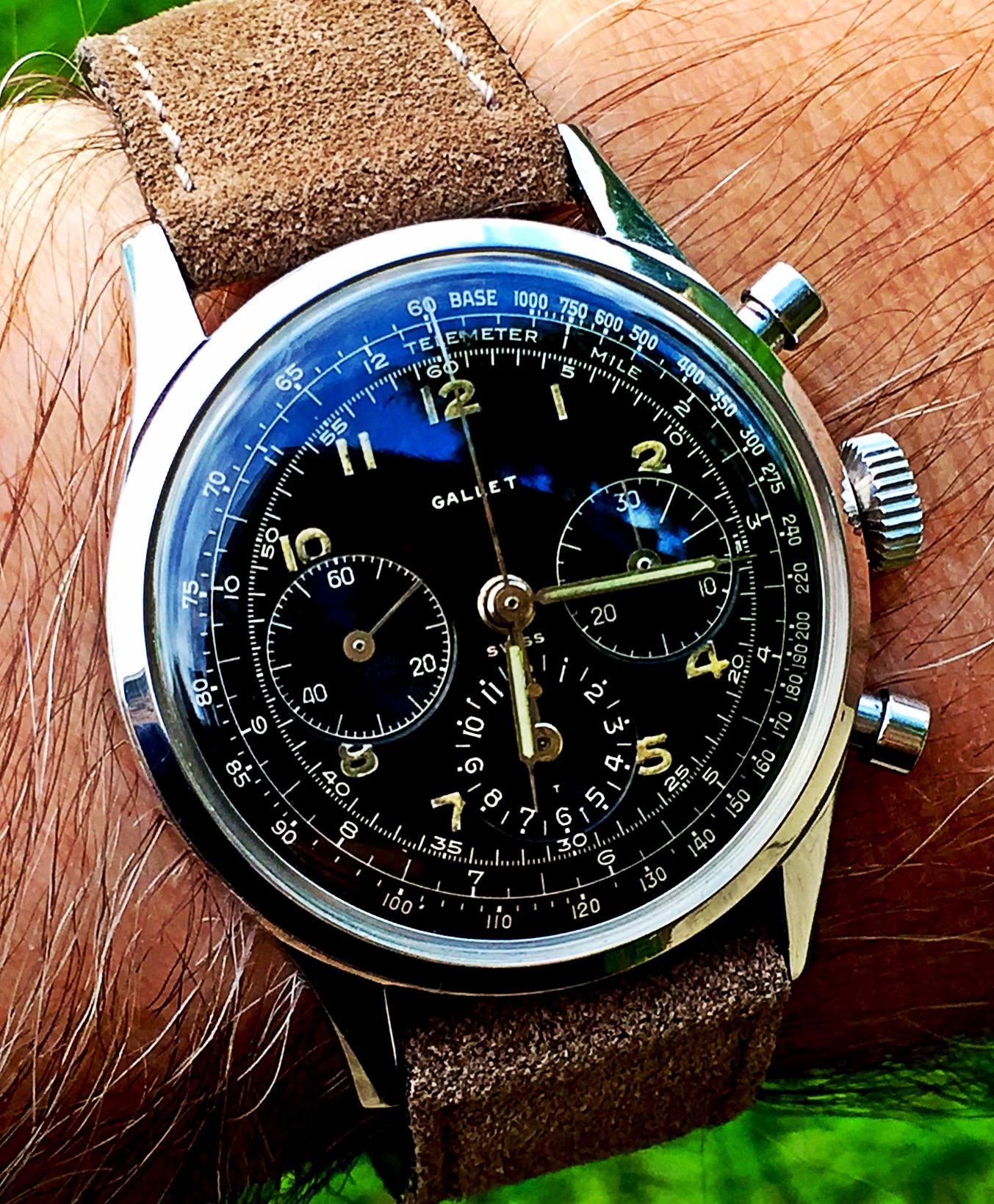 Fun Little project watch I did last year. I could barely make out a textured dial with crosshairs through the crystal in the seller's photos. I was able to purchase it on the cheap since the hands, crown, and stem were wrong. They were wrong because someone had replaced the movement with Quartz! I sourced a proper 471 movement, made a minor repair to it, sourced some NOS hands and it is back in business. Yes the second hand is a little short, but at least it ticks more than once a second!