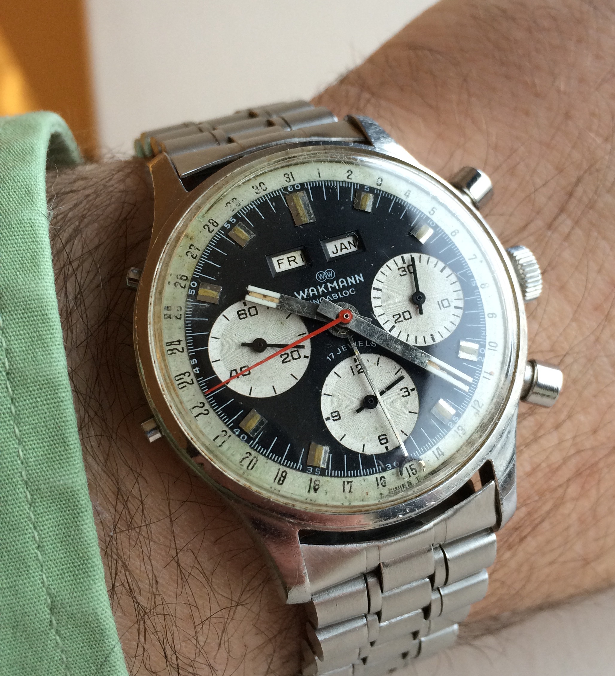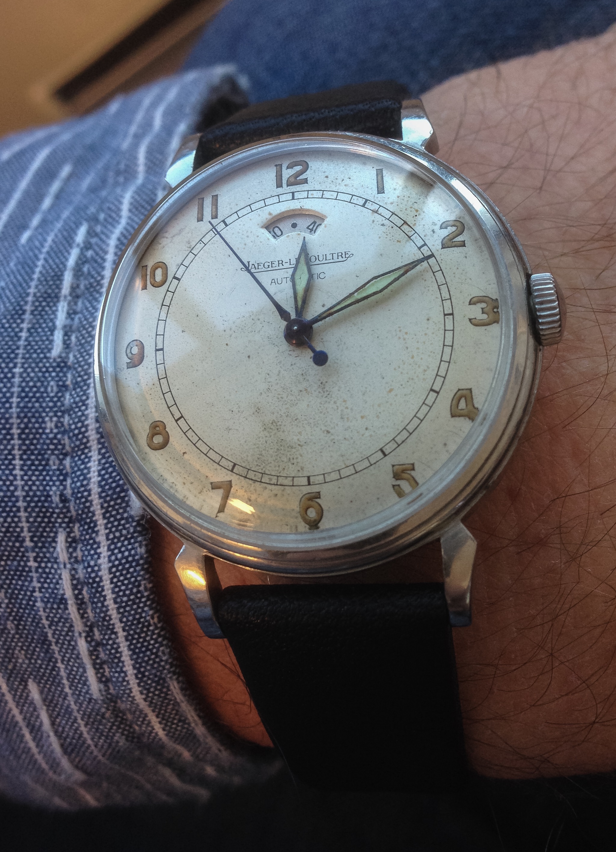 New arrival on the wrist. Jaeger LeCoultre cal 481. First automatic wristwatch caliber with a power reserve indicator!