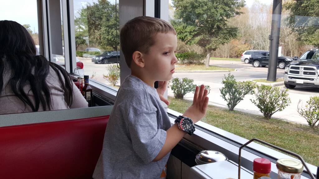 Our oldest teen is a female unit...but our youngest teen is a male unit (he's 14). He came along on our trip to the University of Kentucky (and Hooters) today...and he was definitely licking his chops in both locations. He also found it necessary to make fun of his old man once we returned home (see pics below)...meddling kids...