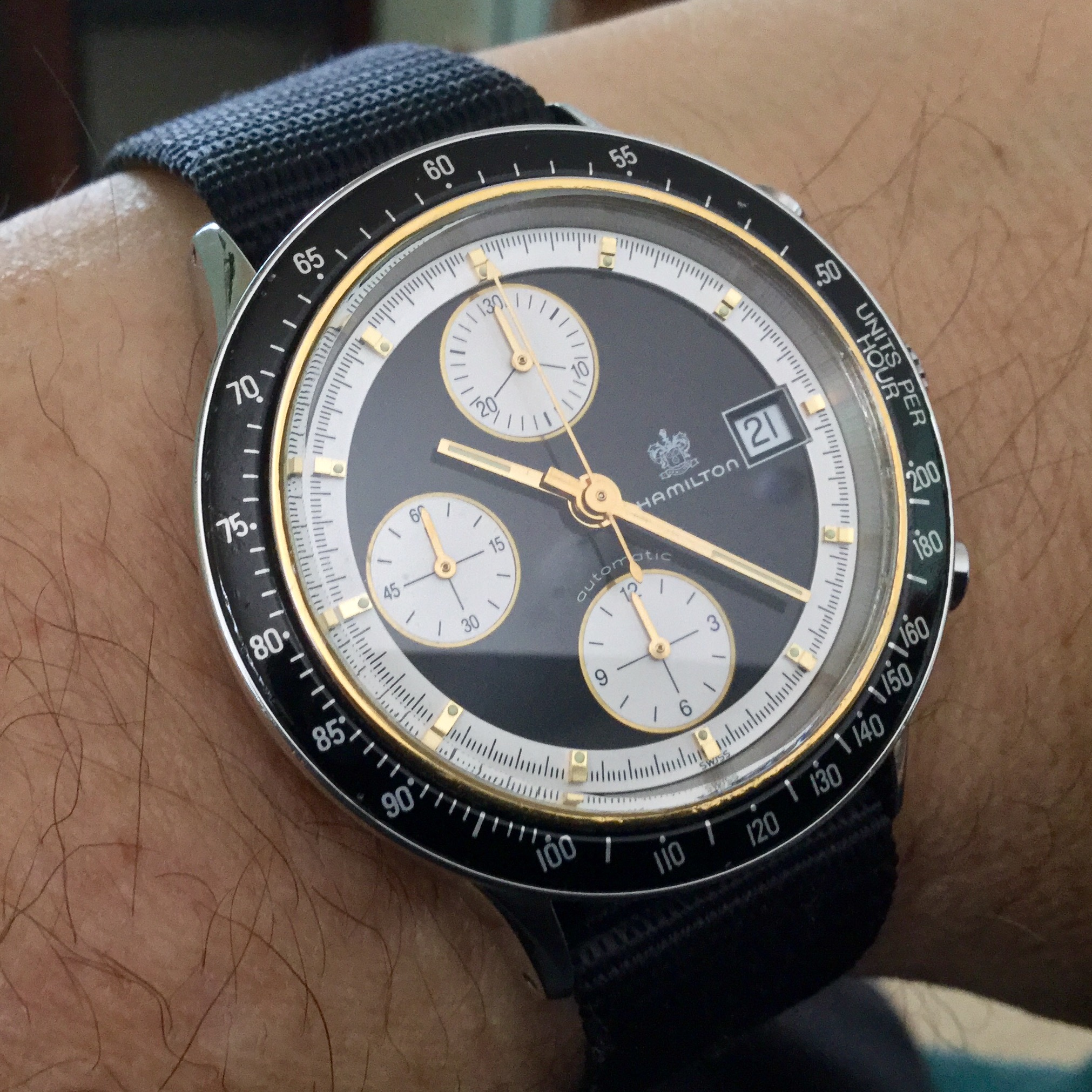 The cal 15 is distinguished from the later cal 210 by the absence of a brake on the chrono sweep second hand wheel.