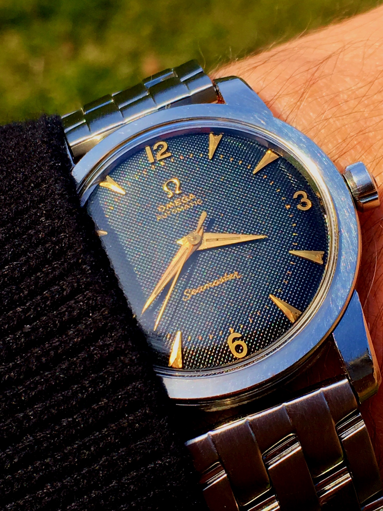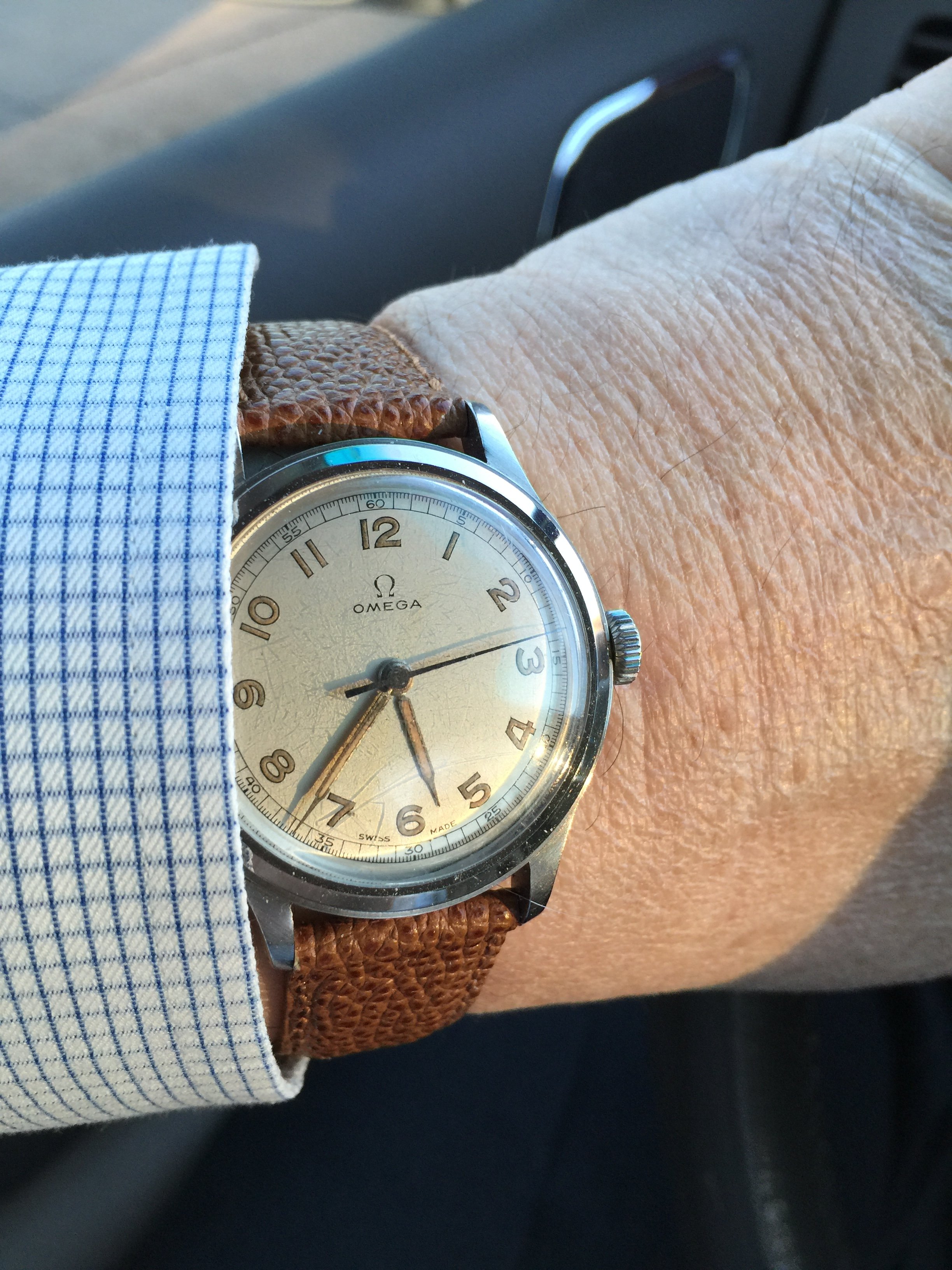 A few new straps in today. Gotta say for a inexpensive strap from eBay they look damn nice on this. Black w blue stitch and a brown with antique stitch. Vintage.G brand made for Victorinox watches it said. 23mm for like 30 bucks each. Seem nice quality a bit stiff at first but will break in.