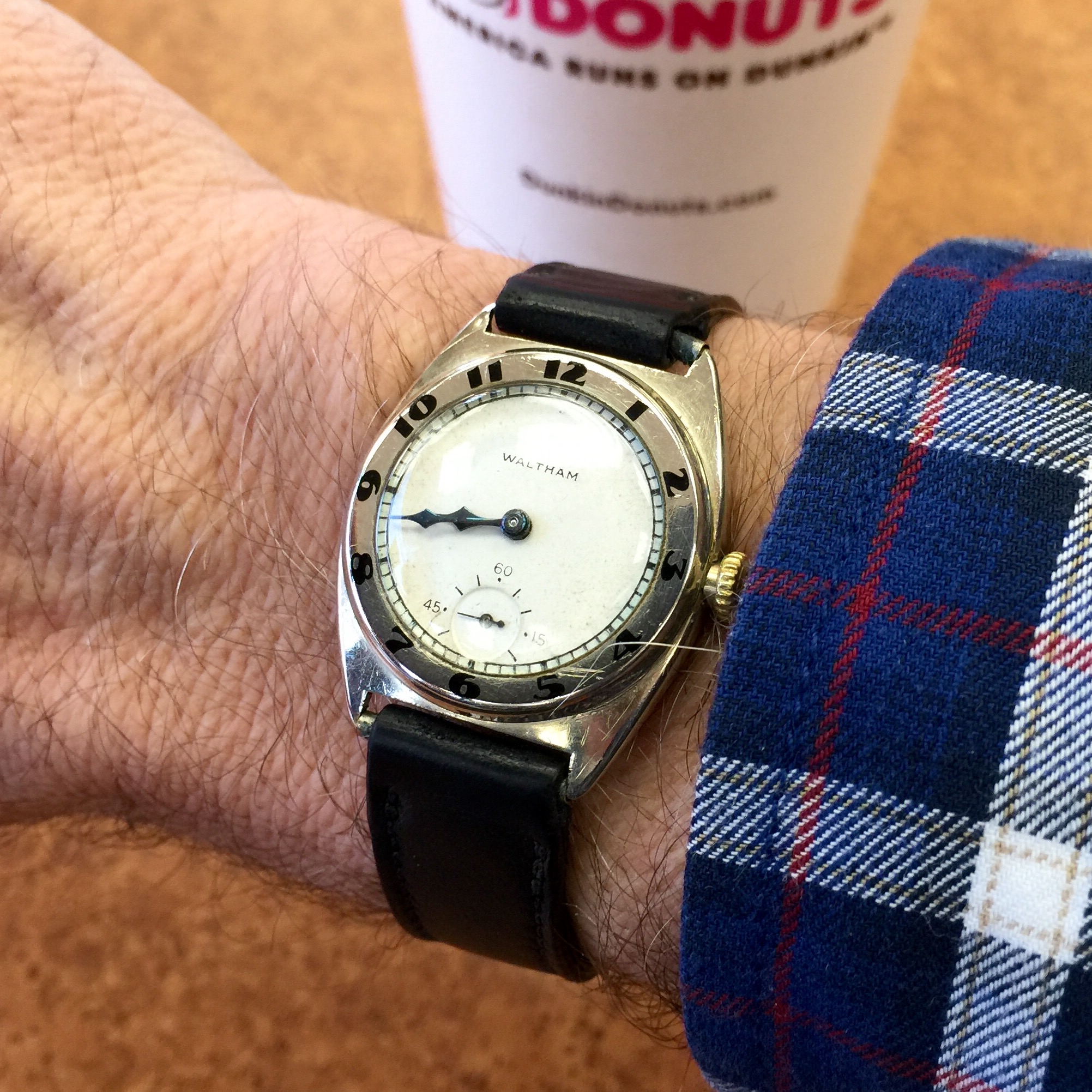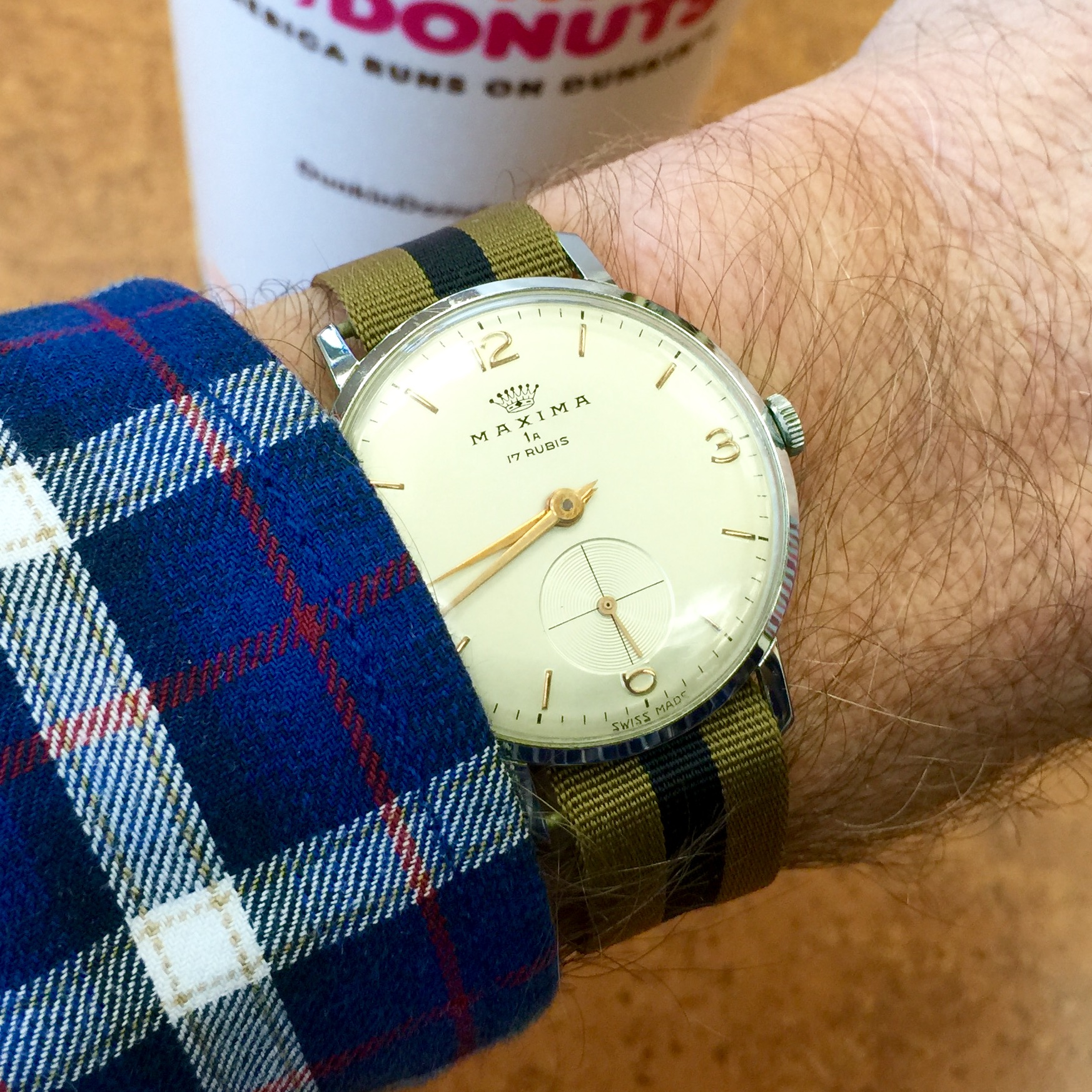 Double dogging it today at Dunkin' Donuts with my late father's Maxima and Waltham Ruby...don't know much about the Maxima...seems like it's somewhat of an obscure brand...