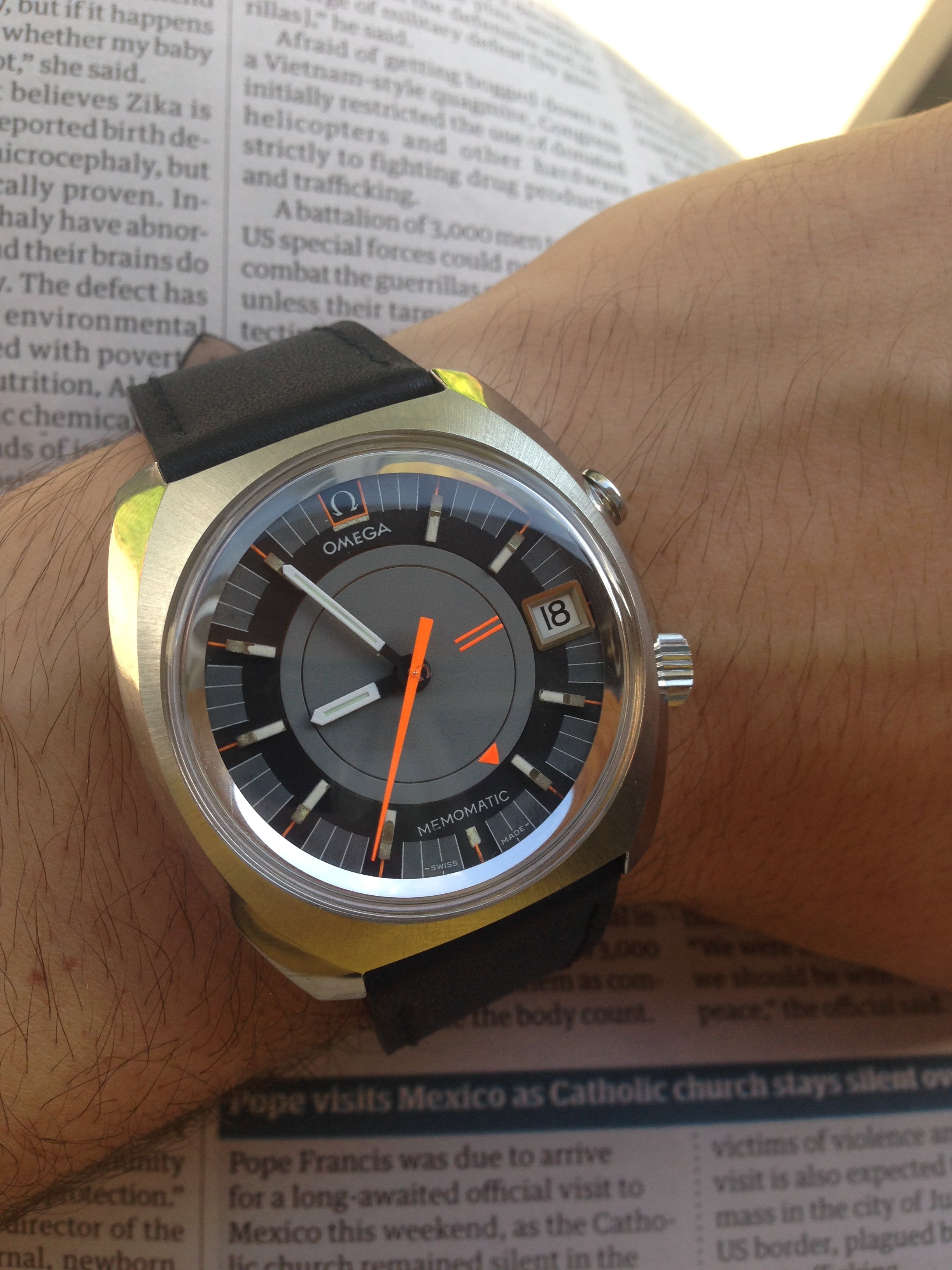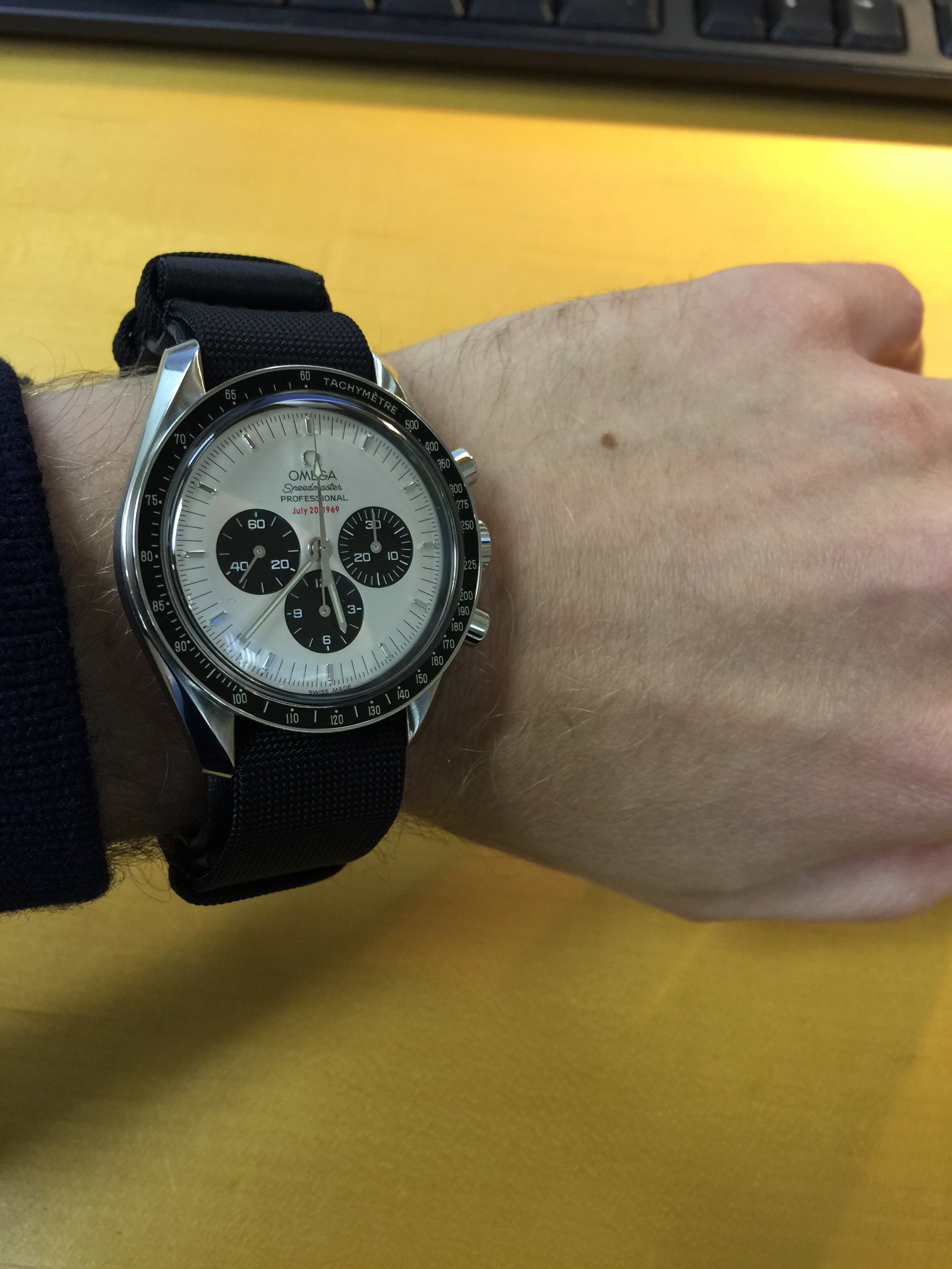 Wore this hunk of a watch today (yeah, I know, not that popular around here, but I love the balanced dial configuration - reminds me I'd better buy a 9300 Speedy soon). Not from today, but the picture was taken exactly 1 year ago!
