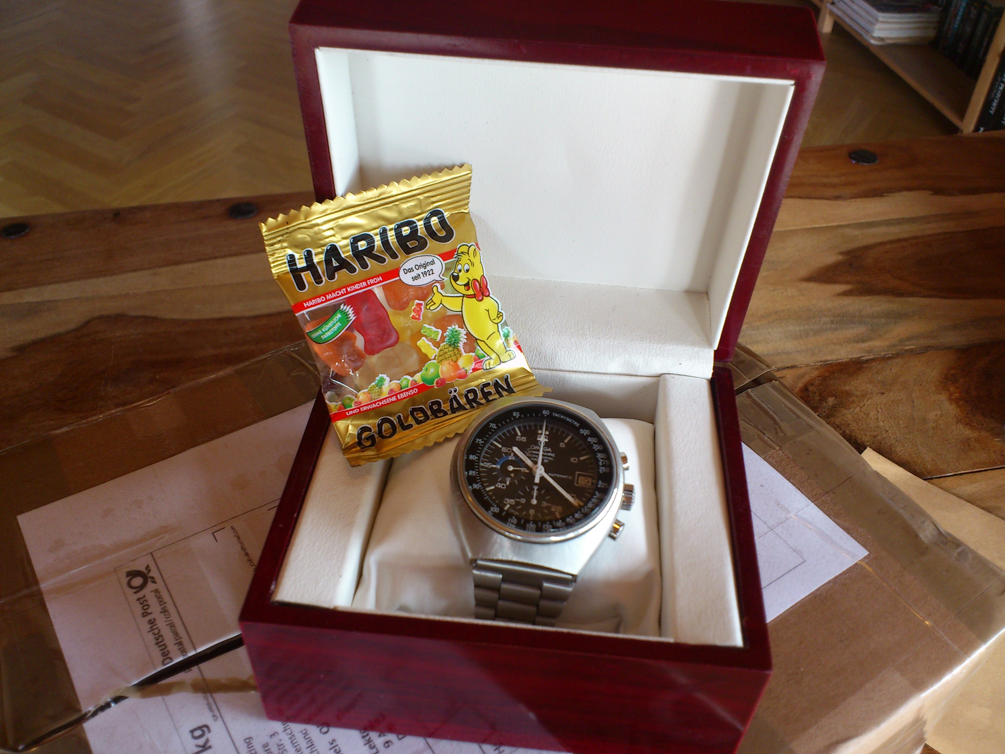 A Speedmaster MK IV! And a pack of gummy bears! Woohoo!!