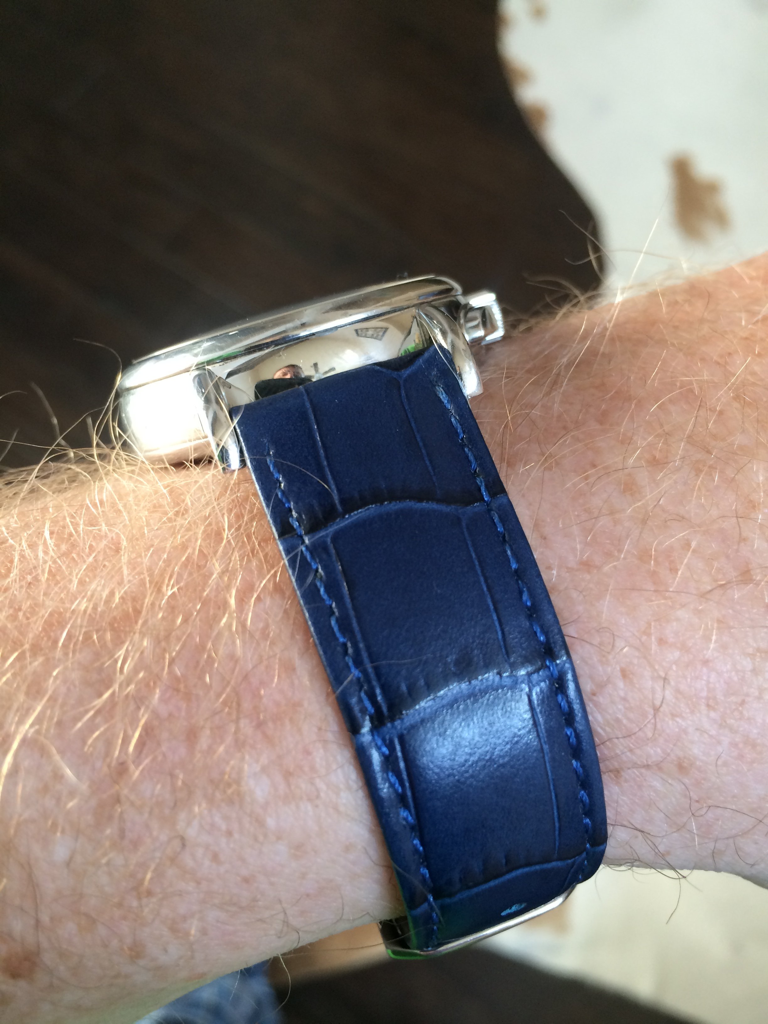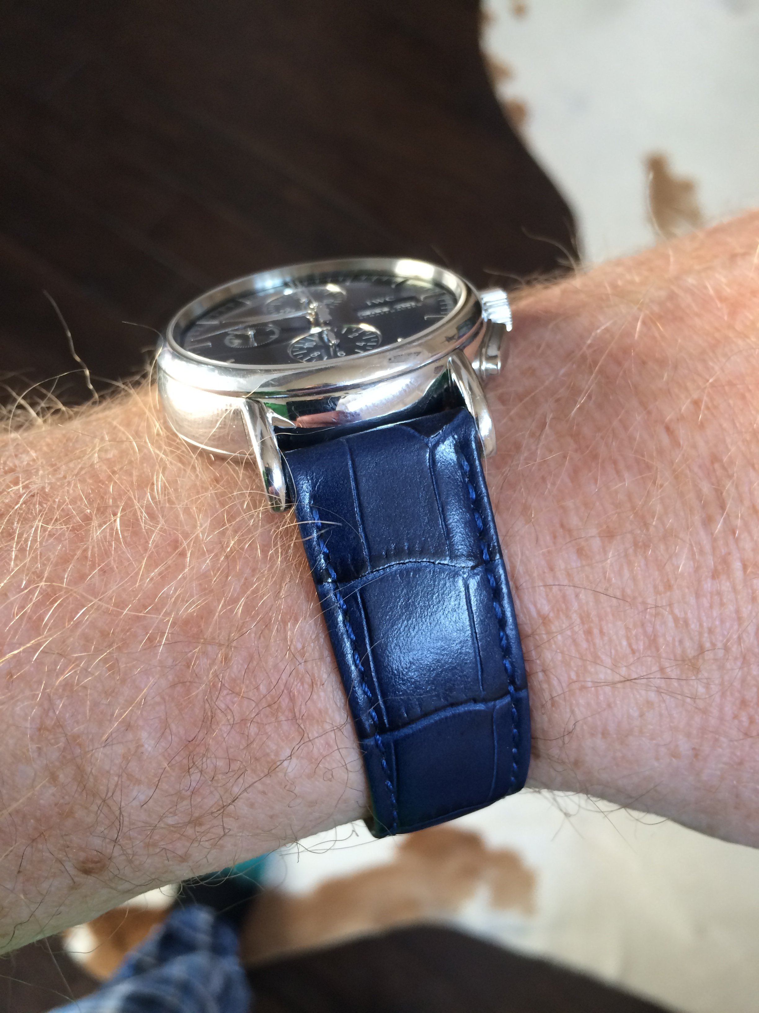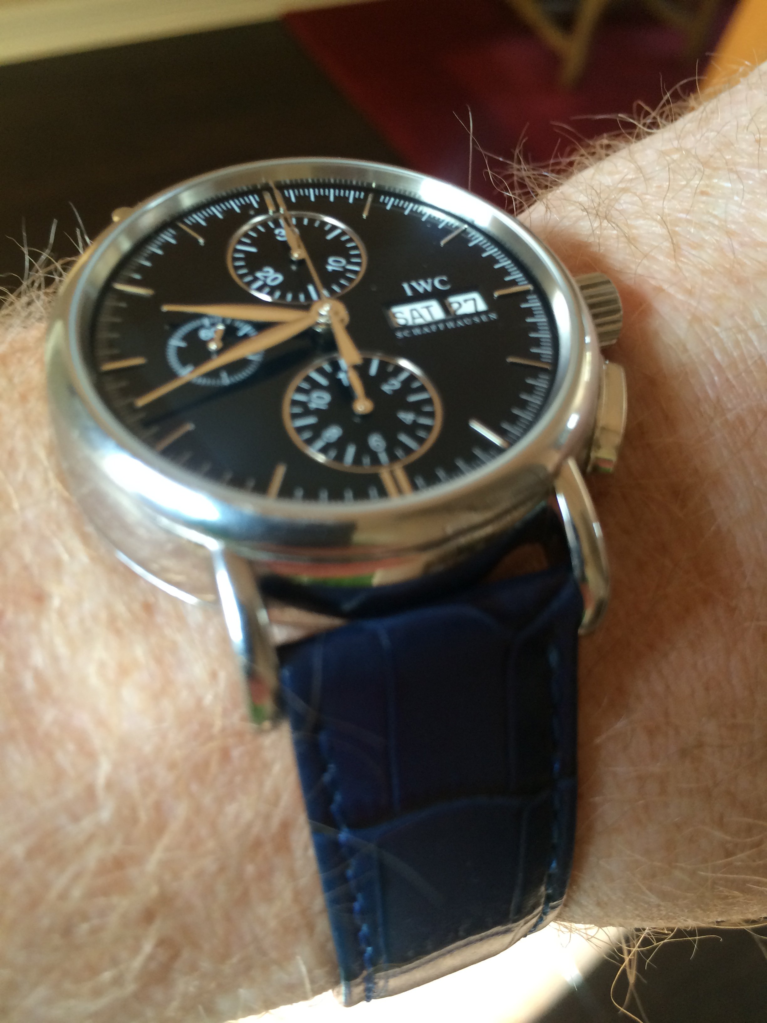 I Posts 182 Likes 1,651 IRCM 路Feb 27, 2016 IWC today, on a new blue strap. Not sure if I like the look, so bought a new mahogany brown one, too.