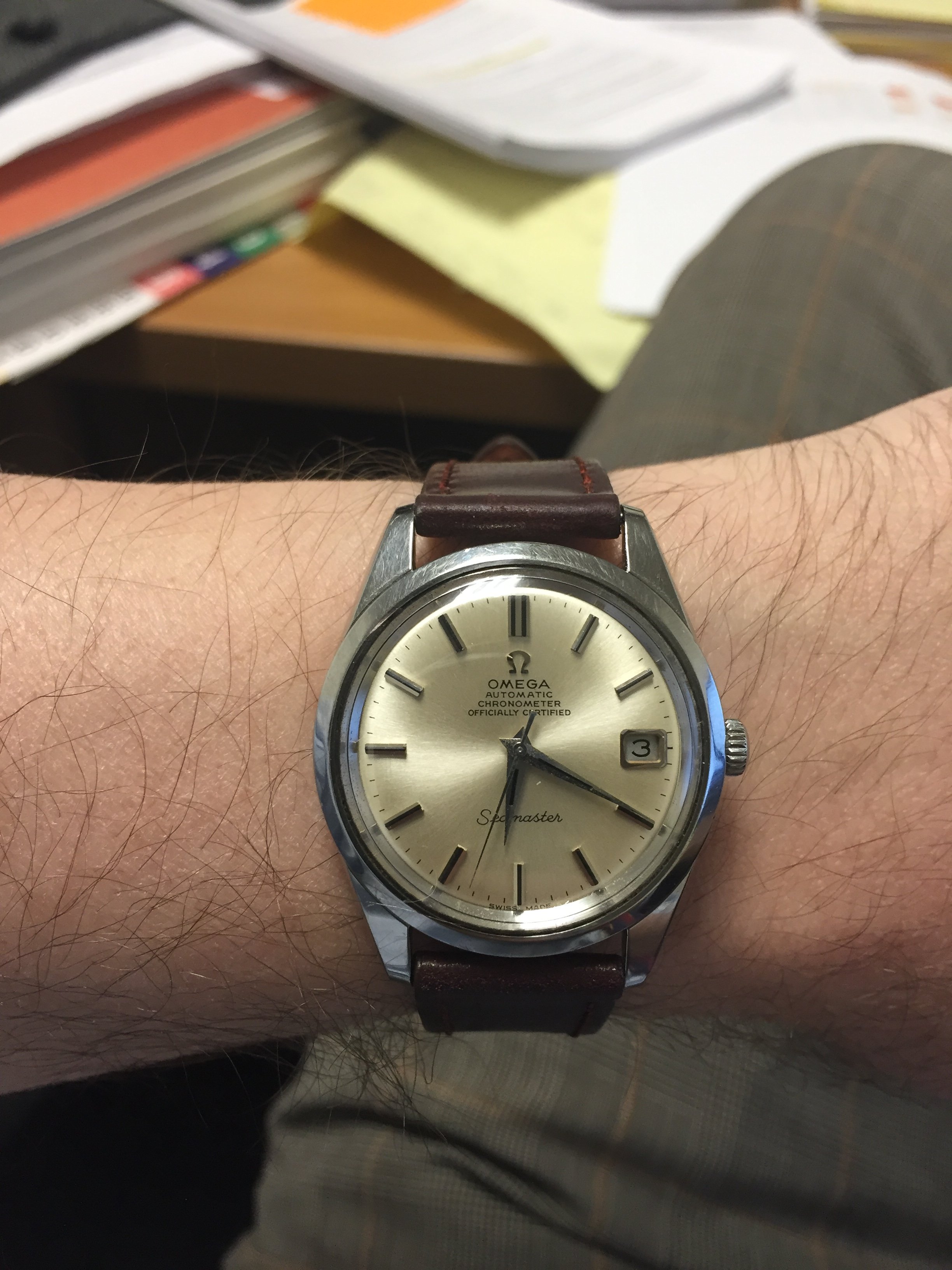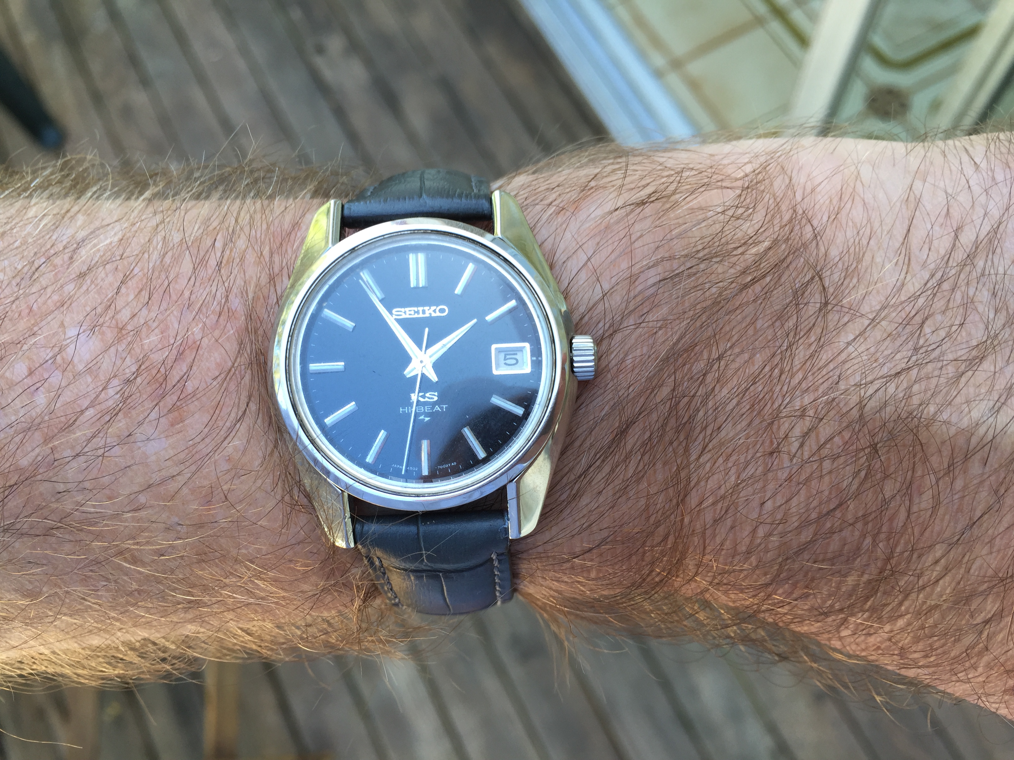 The automatic movement is an Enicar cal. 166 with quick date set by pulling and pushing the crown.
