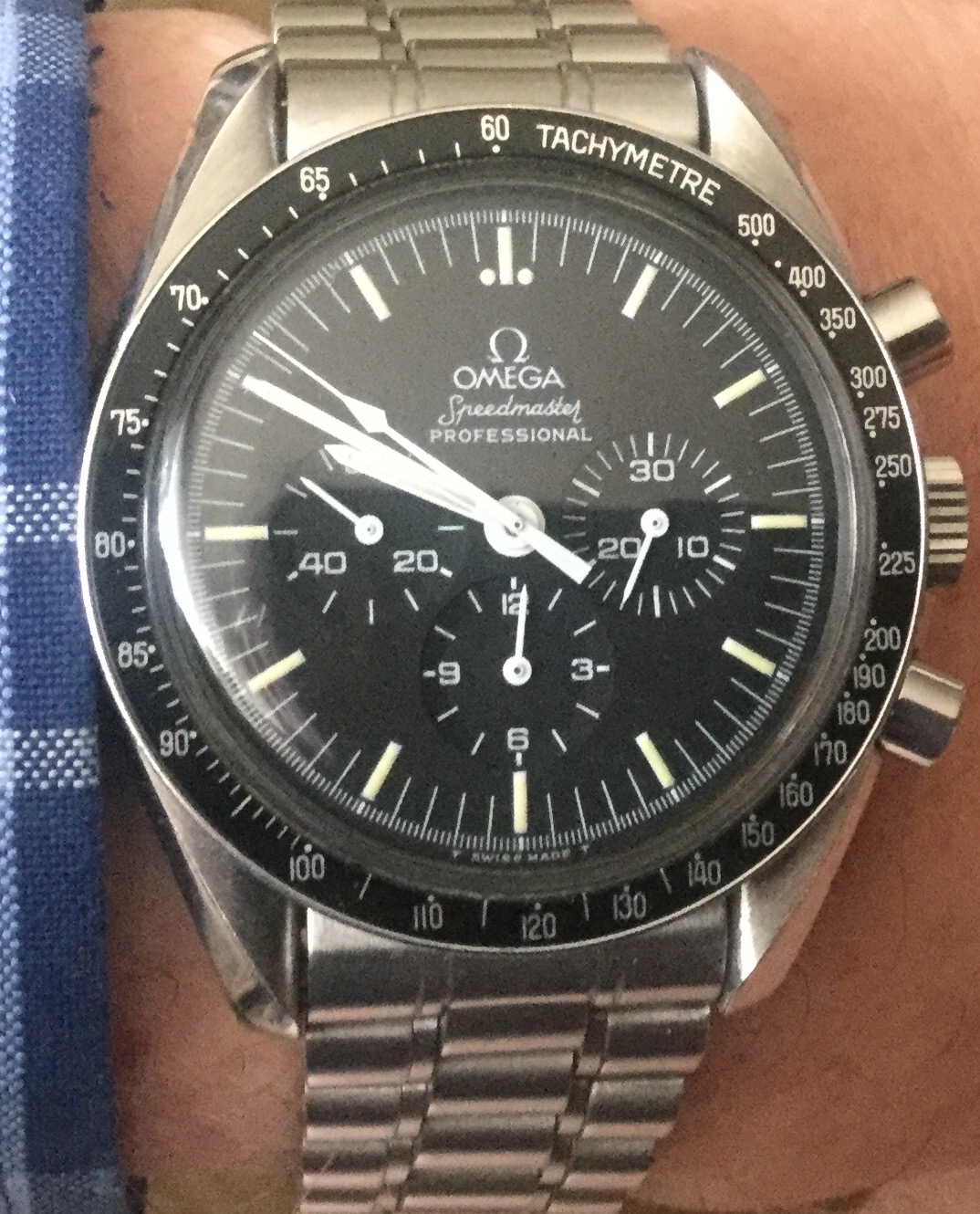 I need the time, to the second, later today. So I set my Apollo XI commemorative edition Speedmaster, from 1989. Had it since new, and sitting here in the morning sun, it occurred to me that it doesn't really look like a 27 year-old watch!