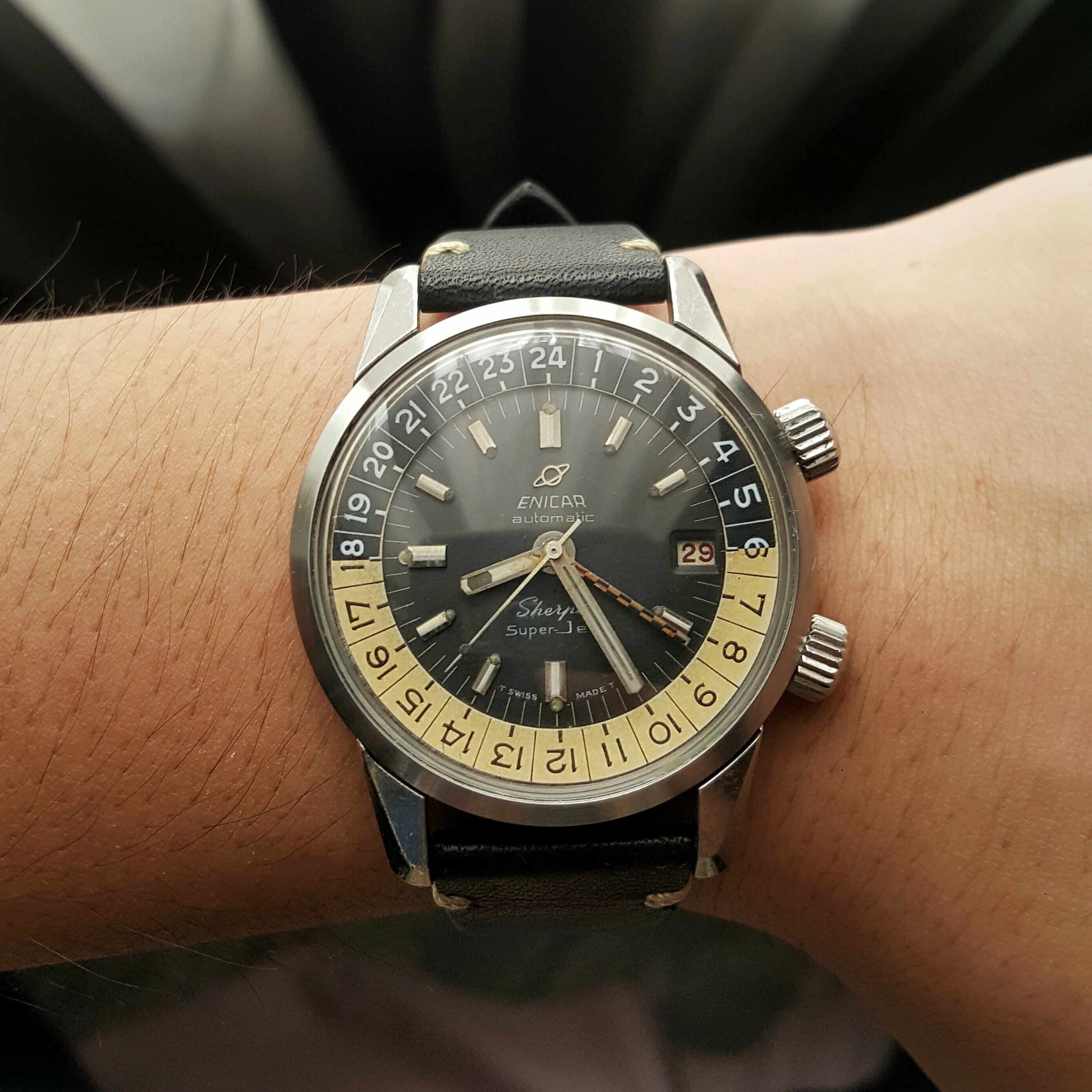 Another day to evaluate the Sinn 156 before its owner returns from vacation. Have dressed my two other Lemania 5100s with similar straps for more group fun.