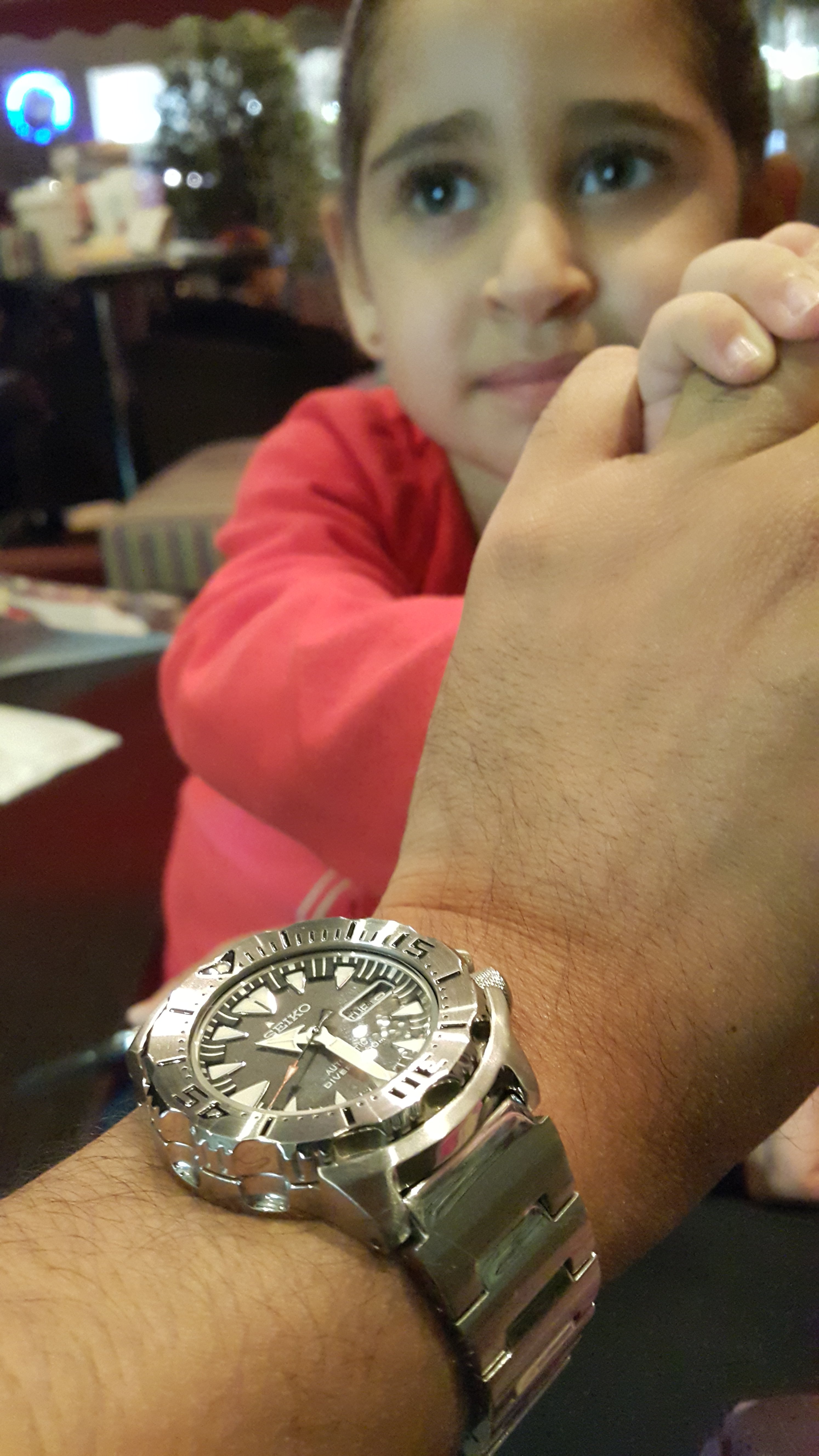 Waiting at the good Doctor's office with the whole famn damily (minus the dog)...our youngest, Max, busted his collar bone and thumb during LAX practice at school about a week ago...anyway, Speedy Gonzales says, "Time to take some more watch pics utilizing the really new vinyl upholstery on the waiting room chairs, dude!" 馃憤