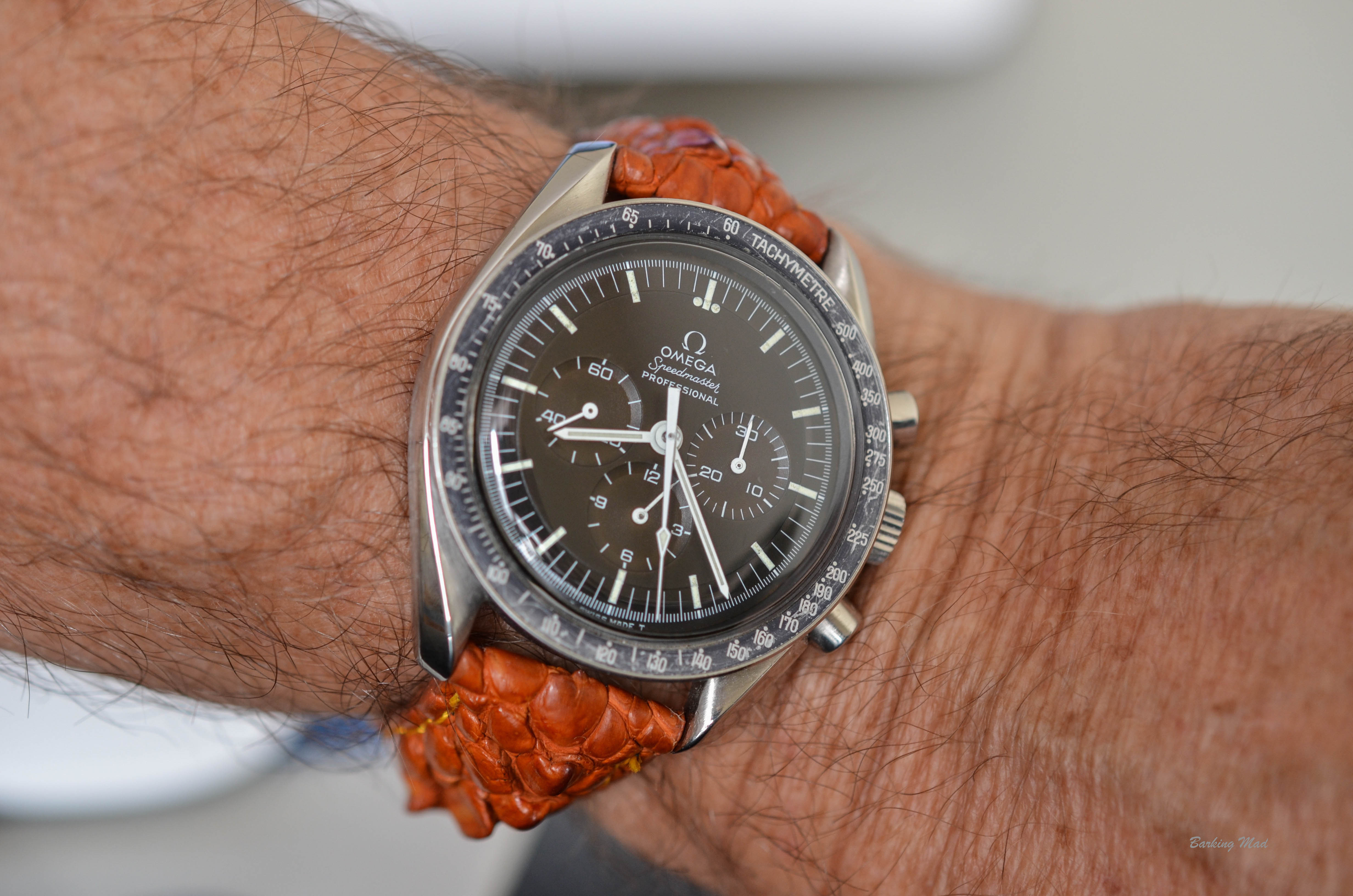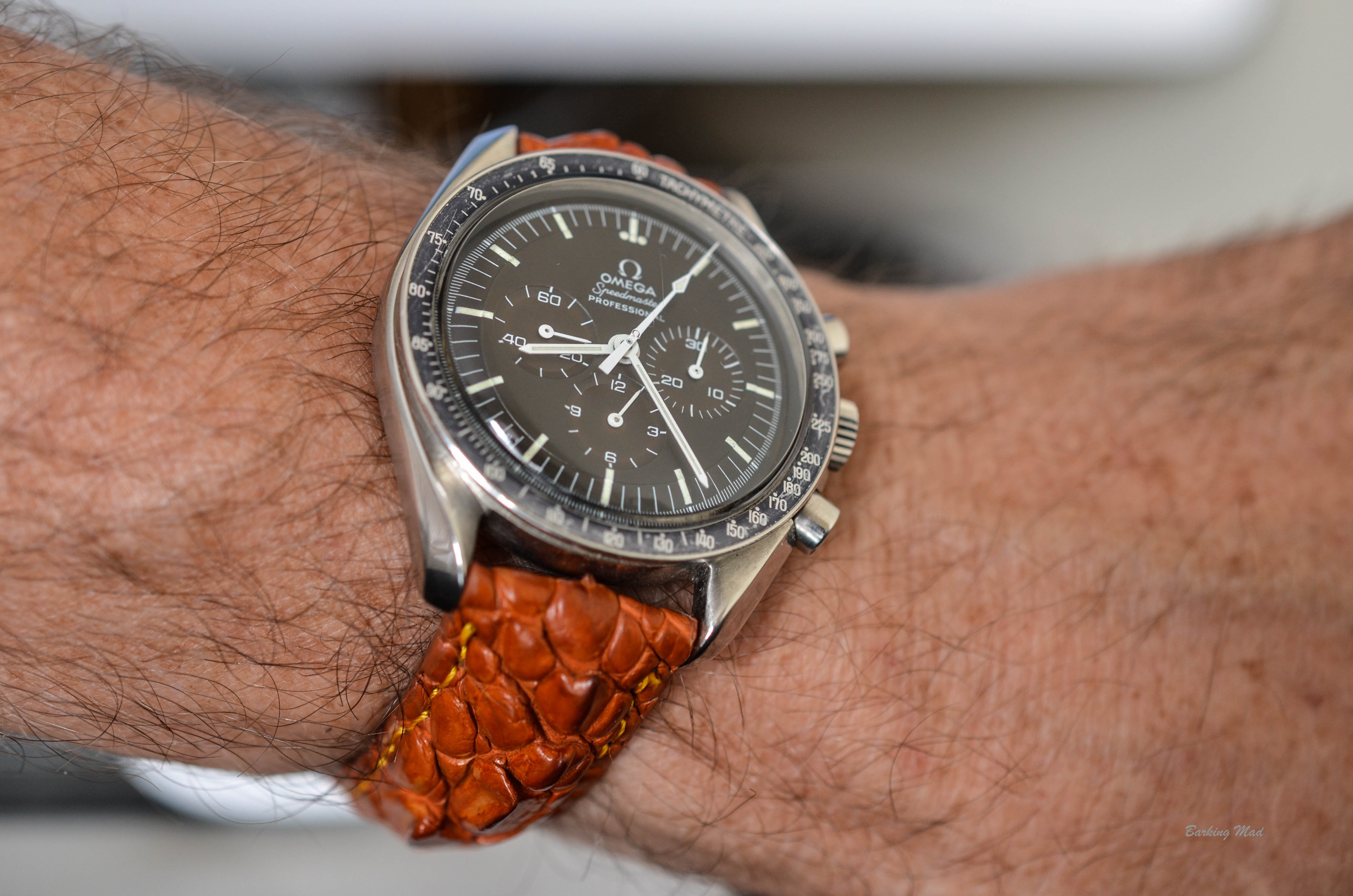 Quite a bit. Like it a lot better on the lambskin. May try the oem bund strap.