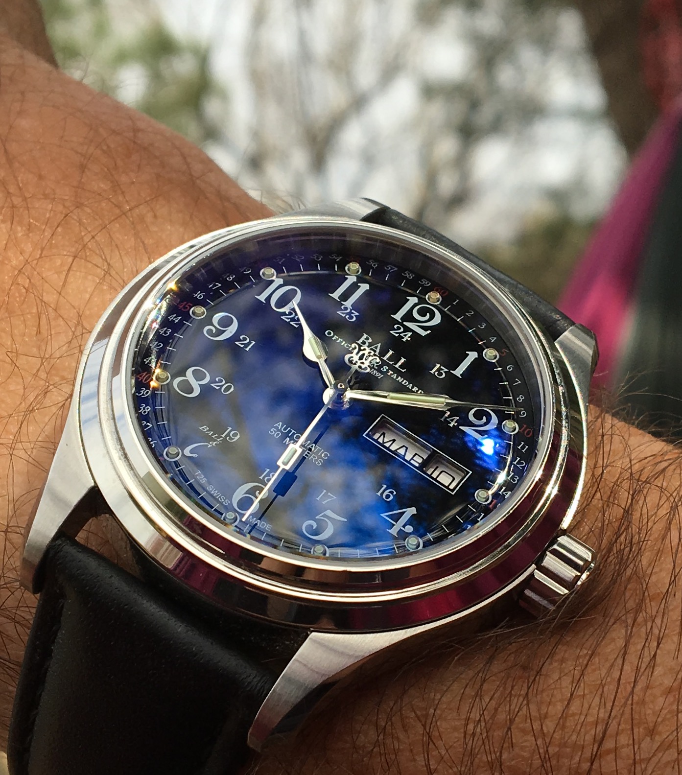 I love the way the reflections of the clouds and sky interact with the dial and crystal on this one: