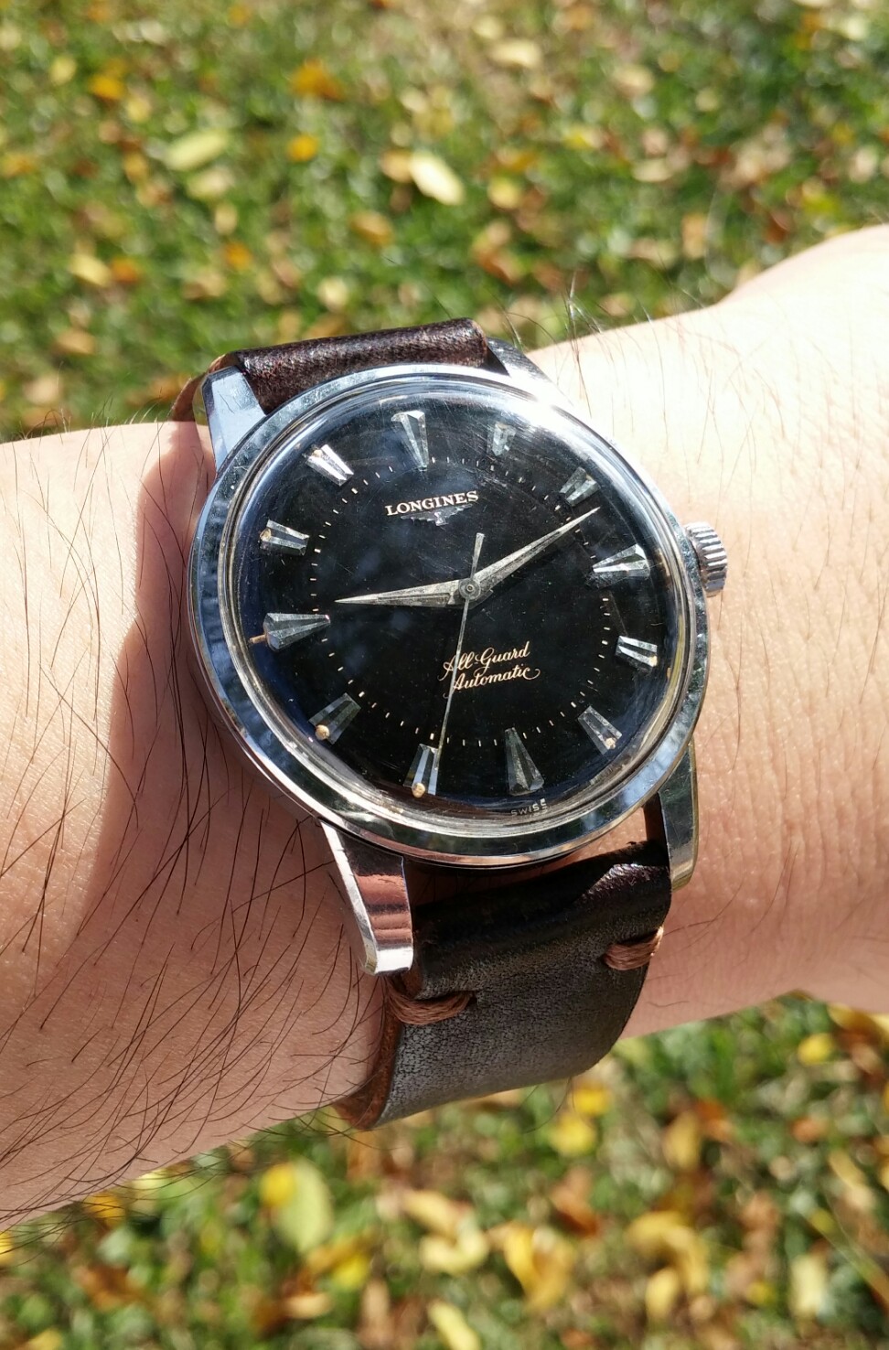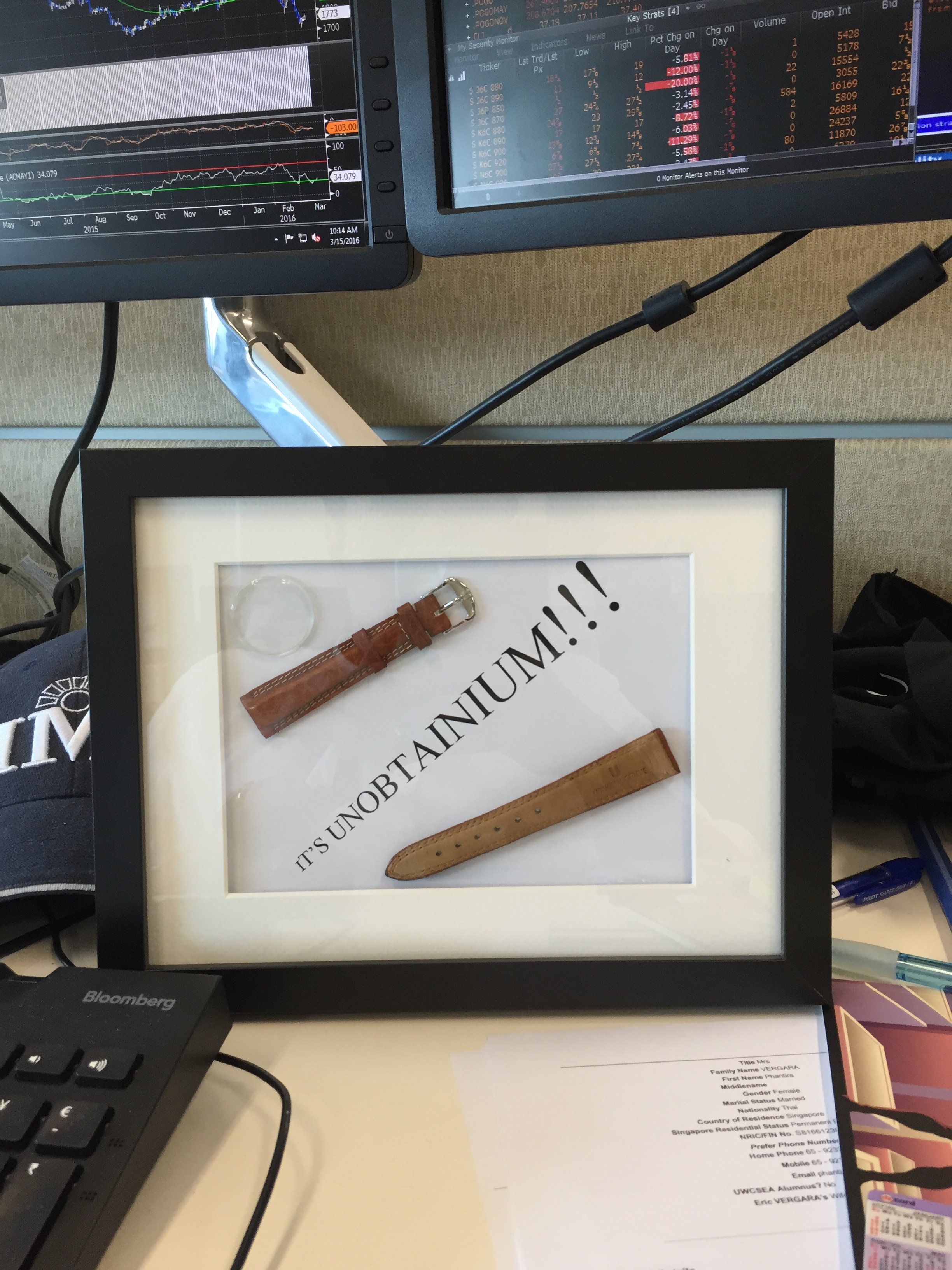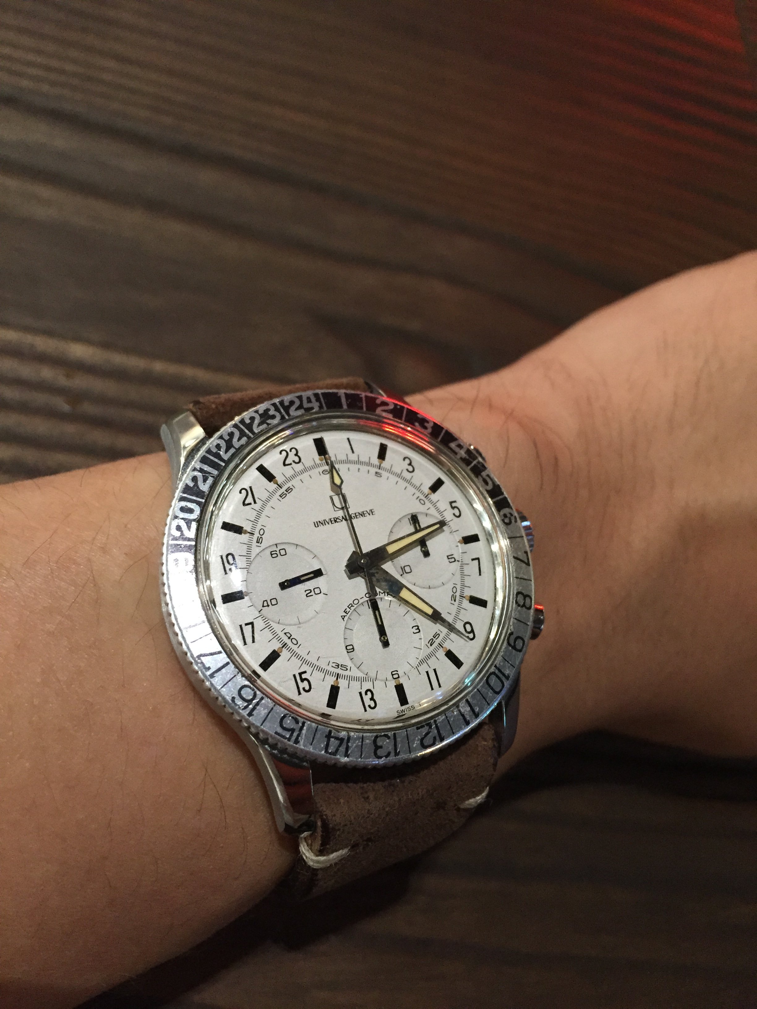 Not exactly wearing this but arrived at the office to find it. Basically I was trying to change polerouter acrylic myself and chip its edge yesterday so a colleague who is also a forum member took the liberty to frame the damaged acrylic along with funny looking UG strap.