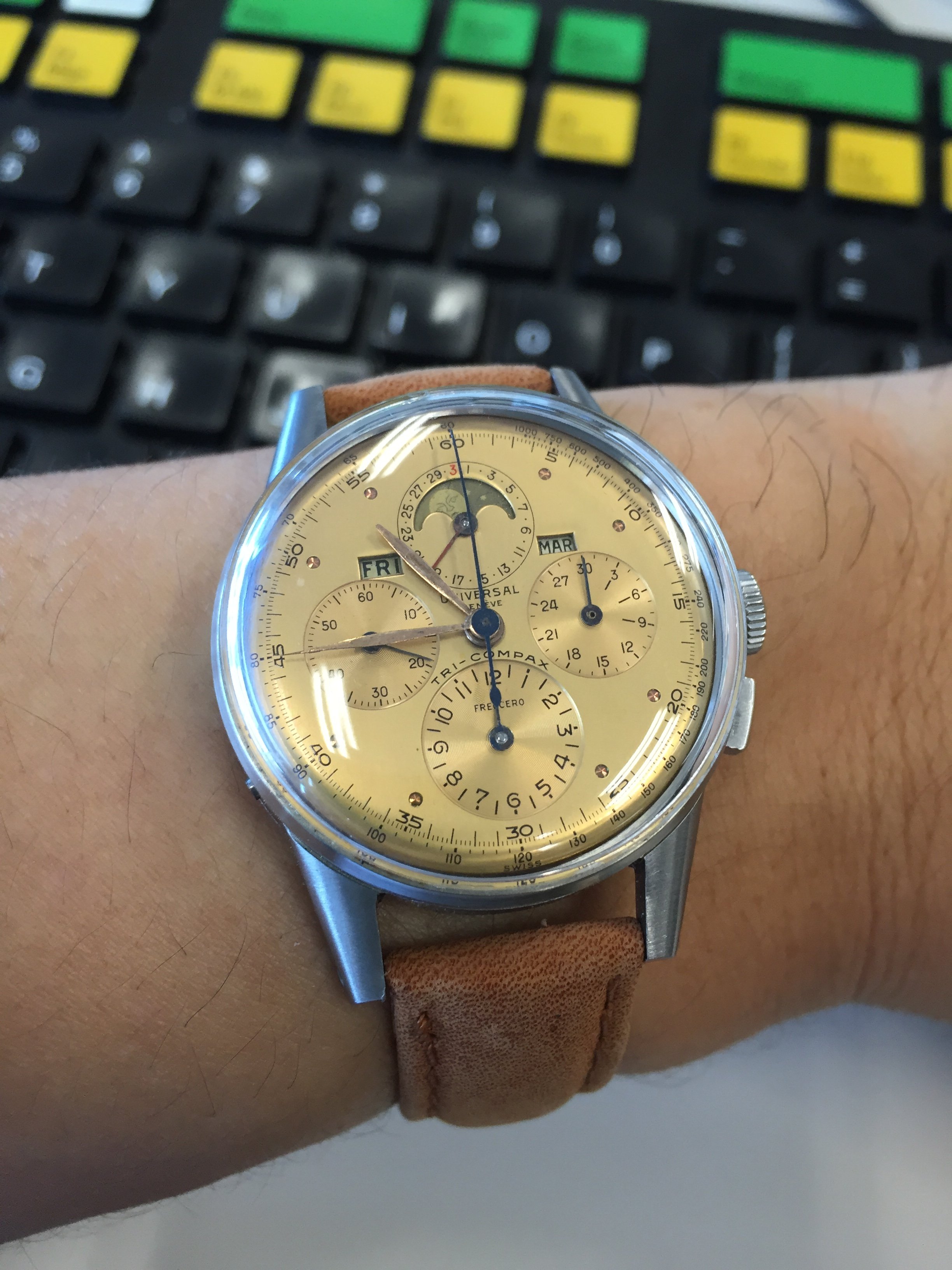 Posts 2,070 Likes 14,603 Traveler 路Mar 17, 2016 Evening switch to a new arrival that was waiting at home 馃榿 - Zenith with creamy sub dials...