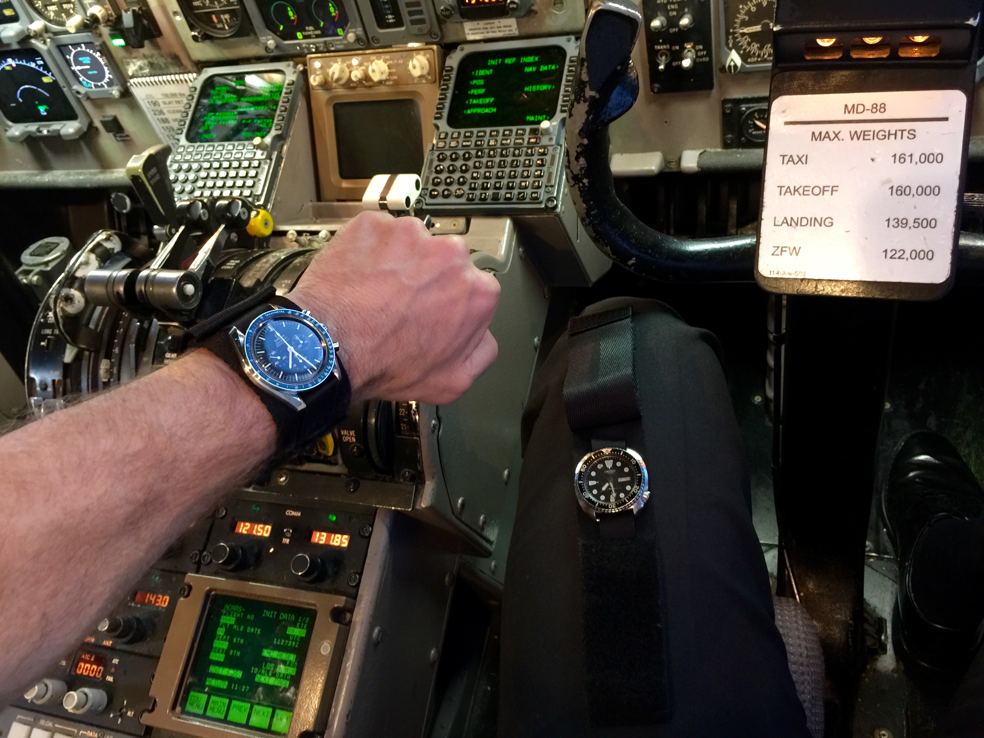 I always like the cockpit pics. I'm interested in the differential between takeoff and landing weights. Is that all meant to be fuel? Does that mean you couldn't land with a full load? Teach me...