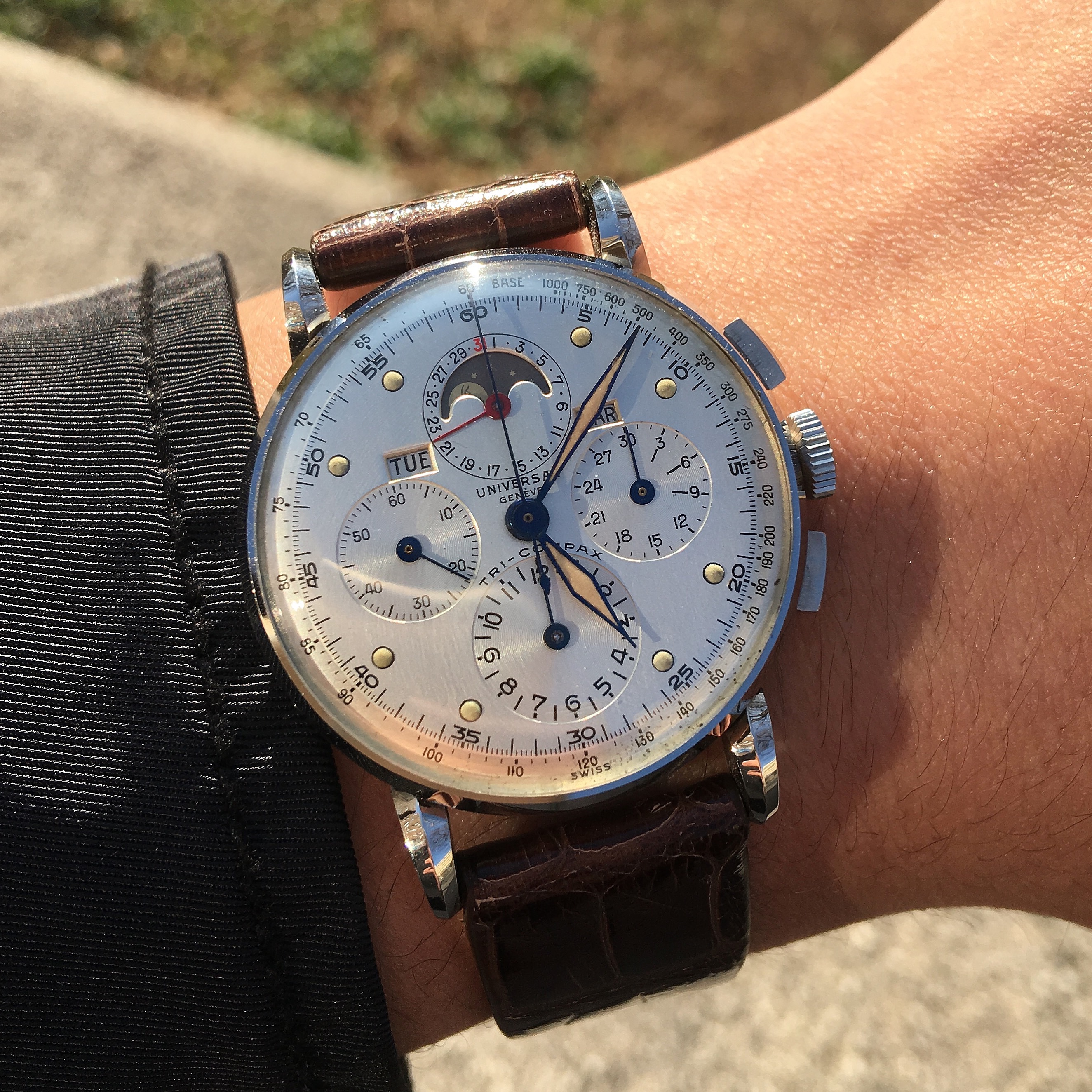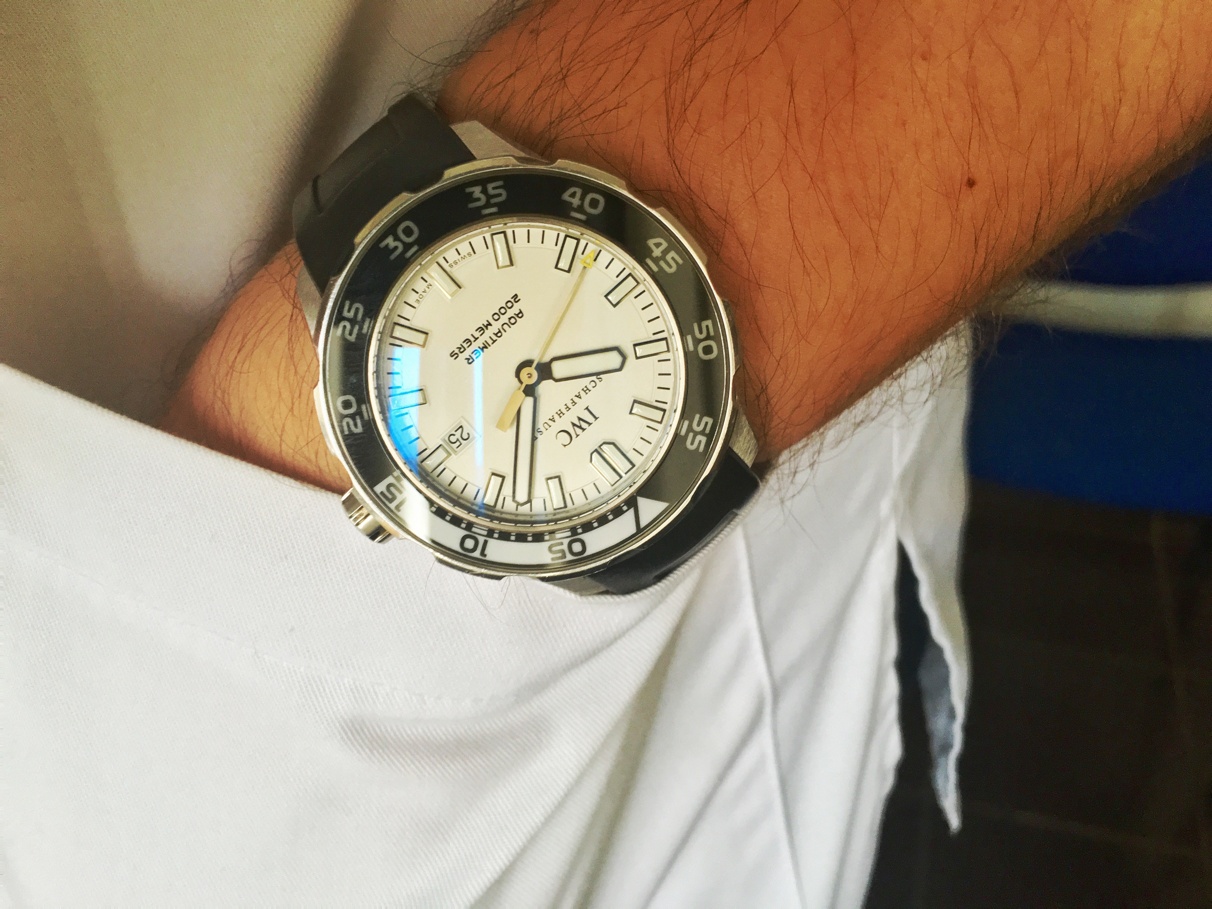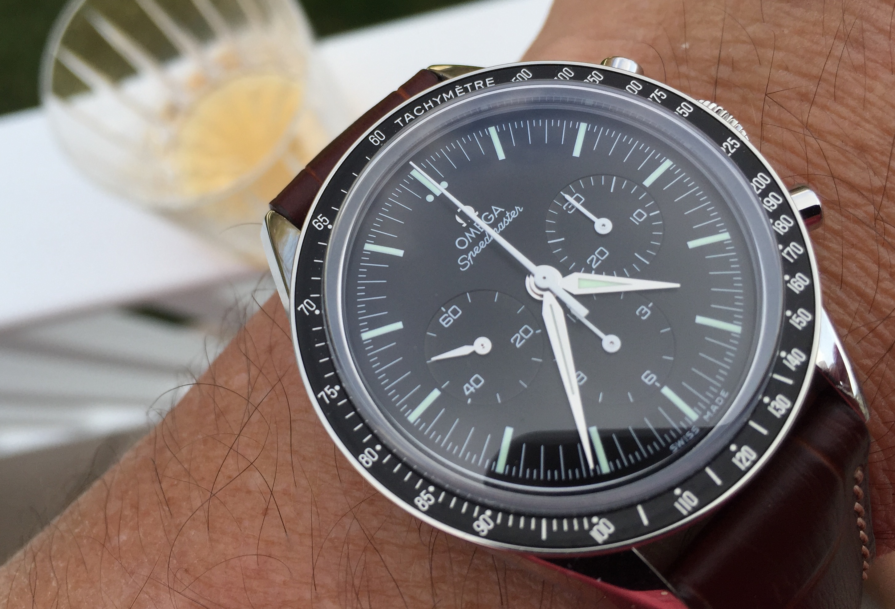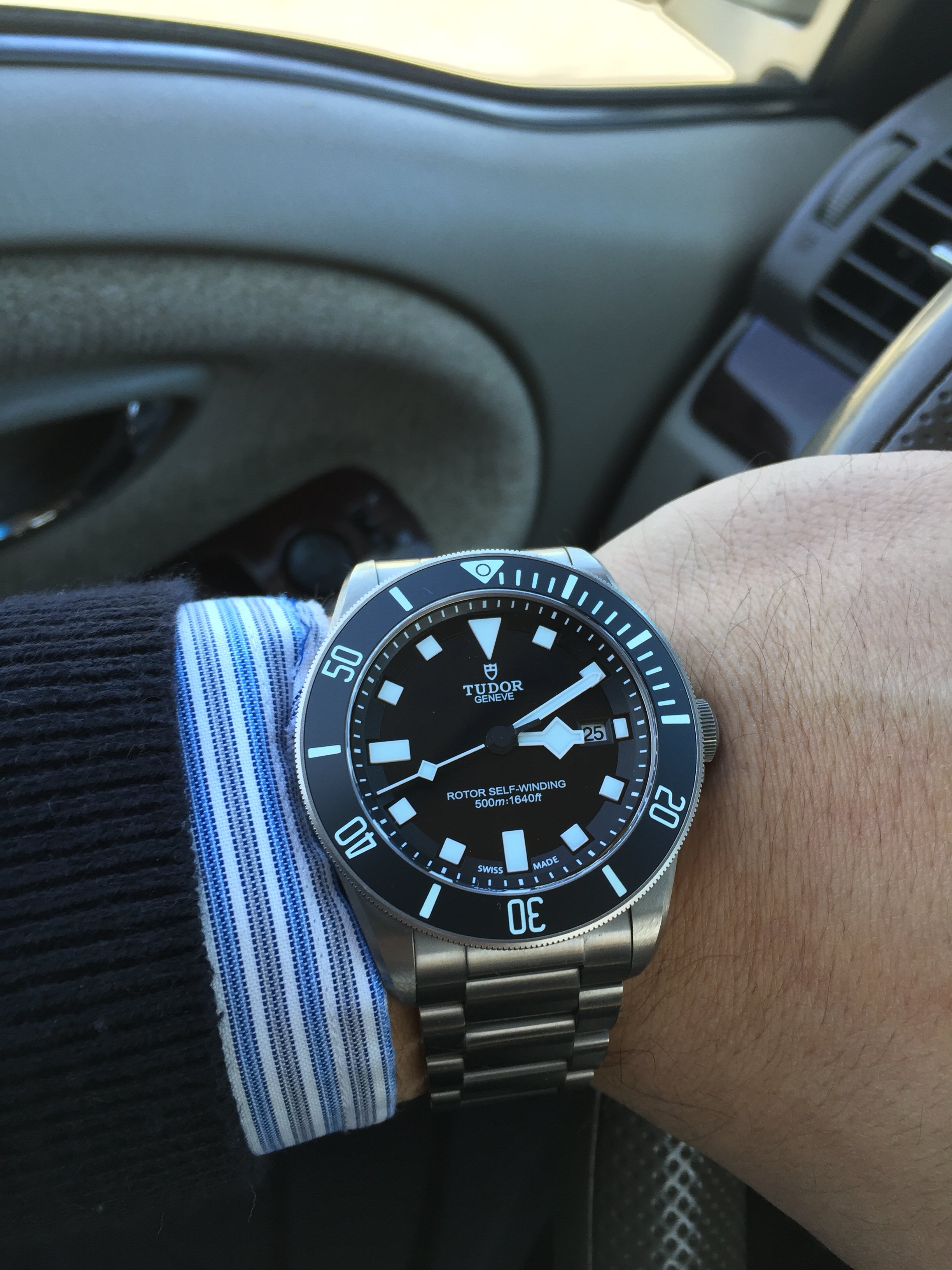 Ended the day out for dinner with family, wearing a watch that I sold to a friend, then got it back, sent it for another crystal replacement (first one wasn't fitted well and cracked from accumulated tension).