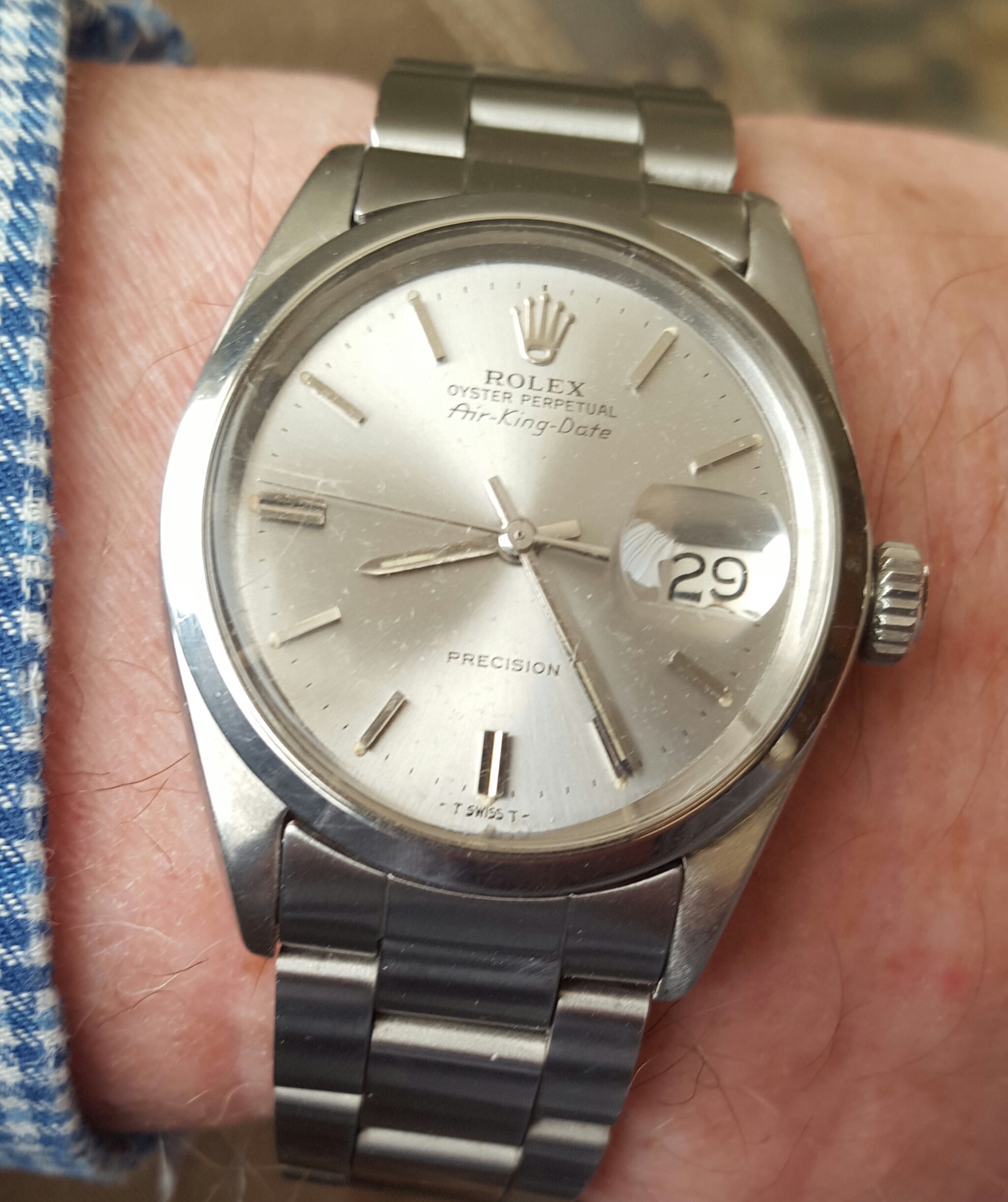 Posts 15,539 Likes 46,148 Canuck ·Mar 29, 2016 Still my 45-year old Rolex Air-King. Not much for "bling", but a sentimental favourite.