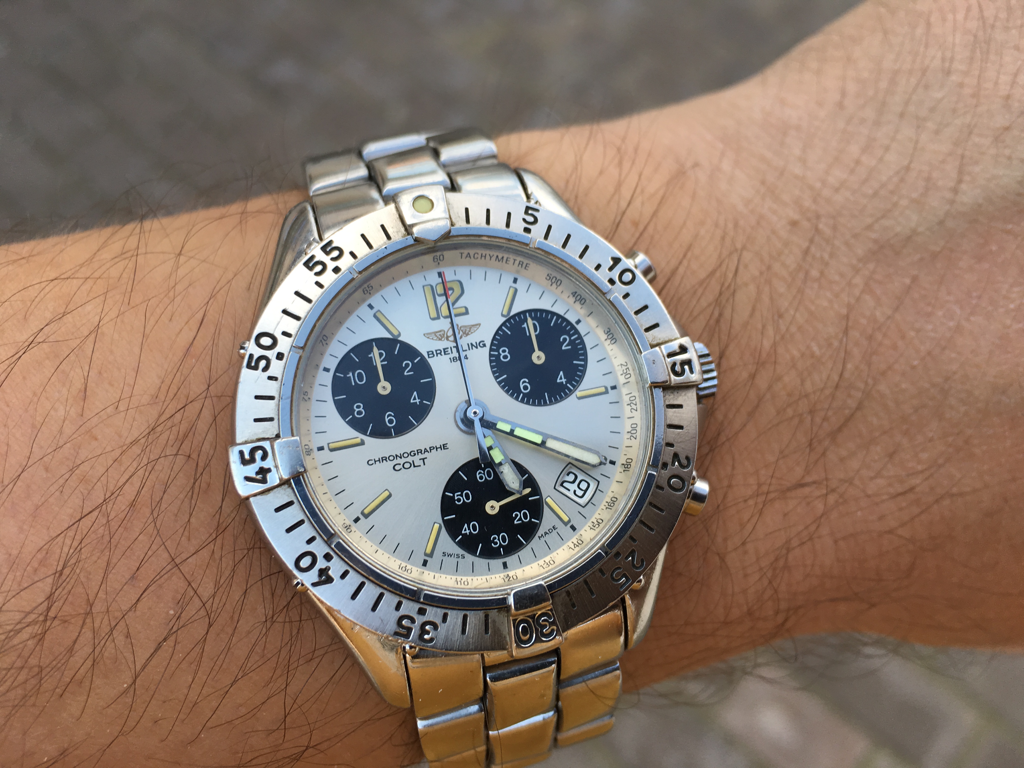 Posts 872 Likes 9,890 gwzymytk ·Mar 29, 2016 Changed to this after the morning speedy. Hard to imagine Breitling did 38 mm at some point, eh? Got this in the morning in a trade.