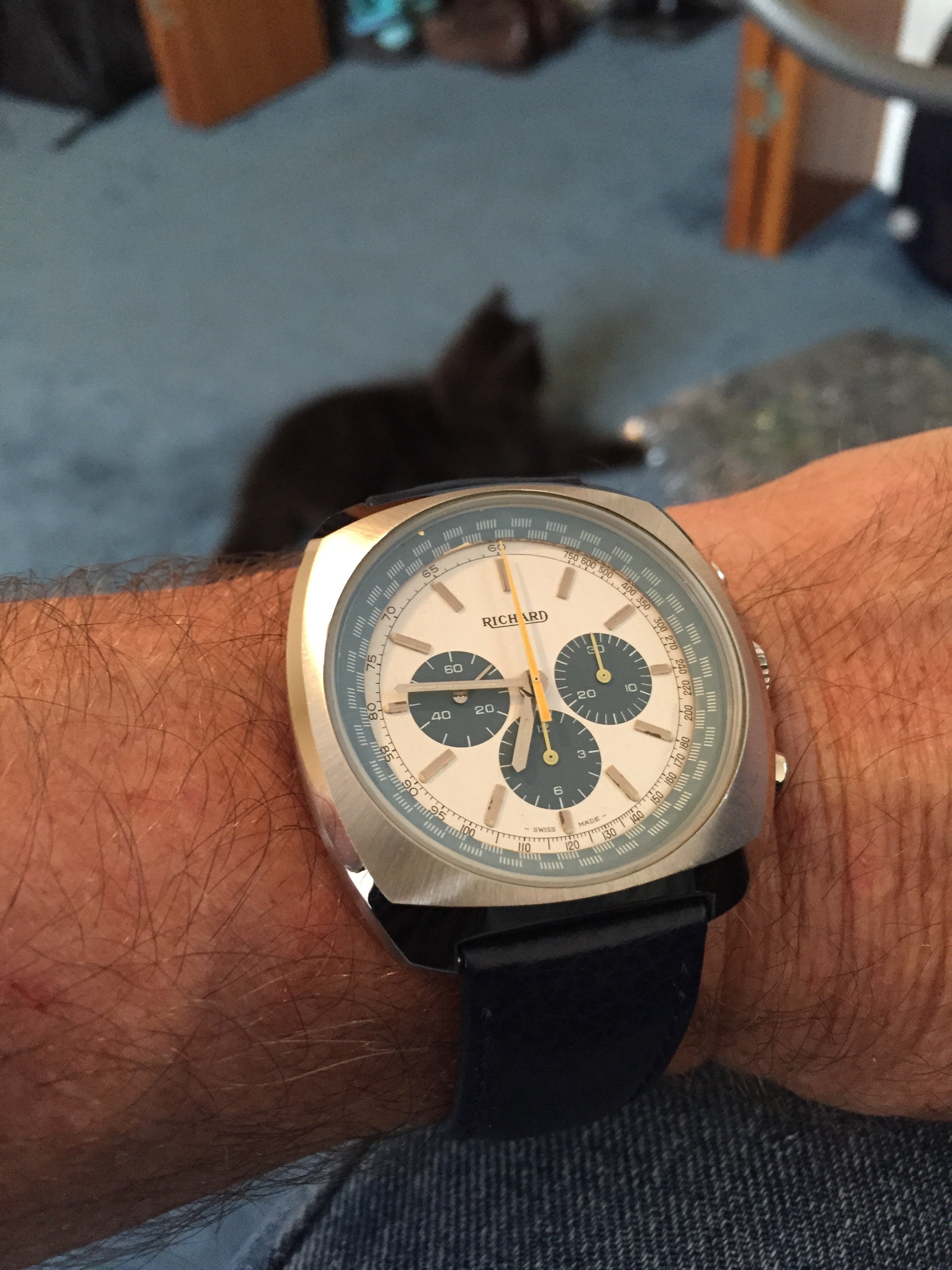 Unitas chronometer grade caliber 2812 movement - it runs well within COSC to this very day! +/-3 seconds all positions.