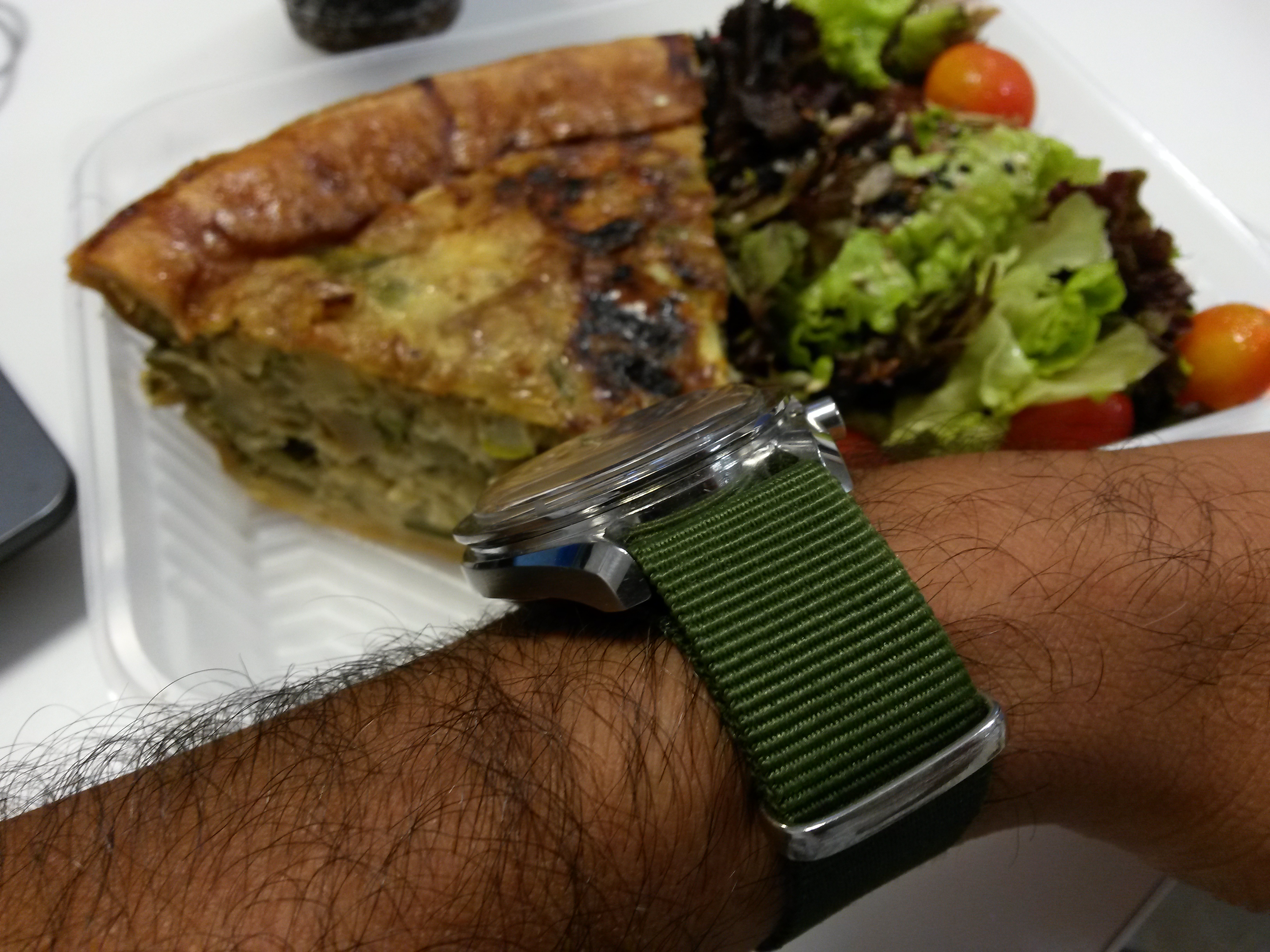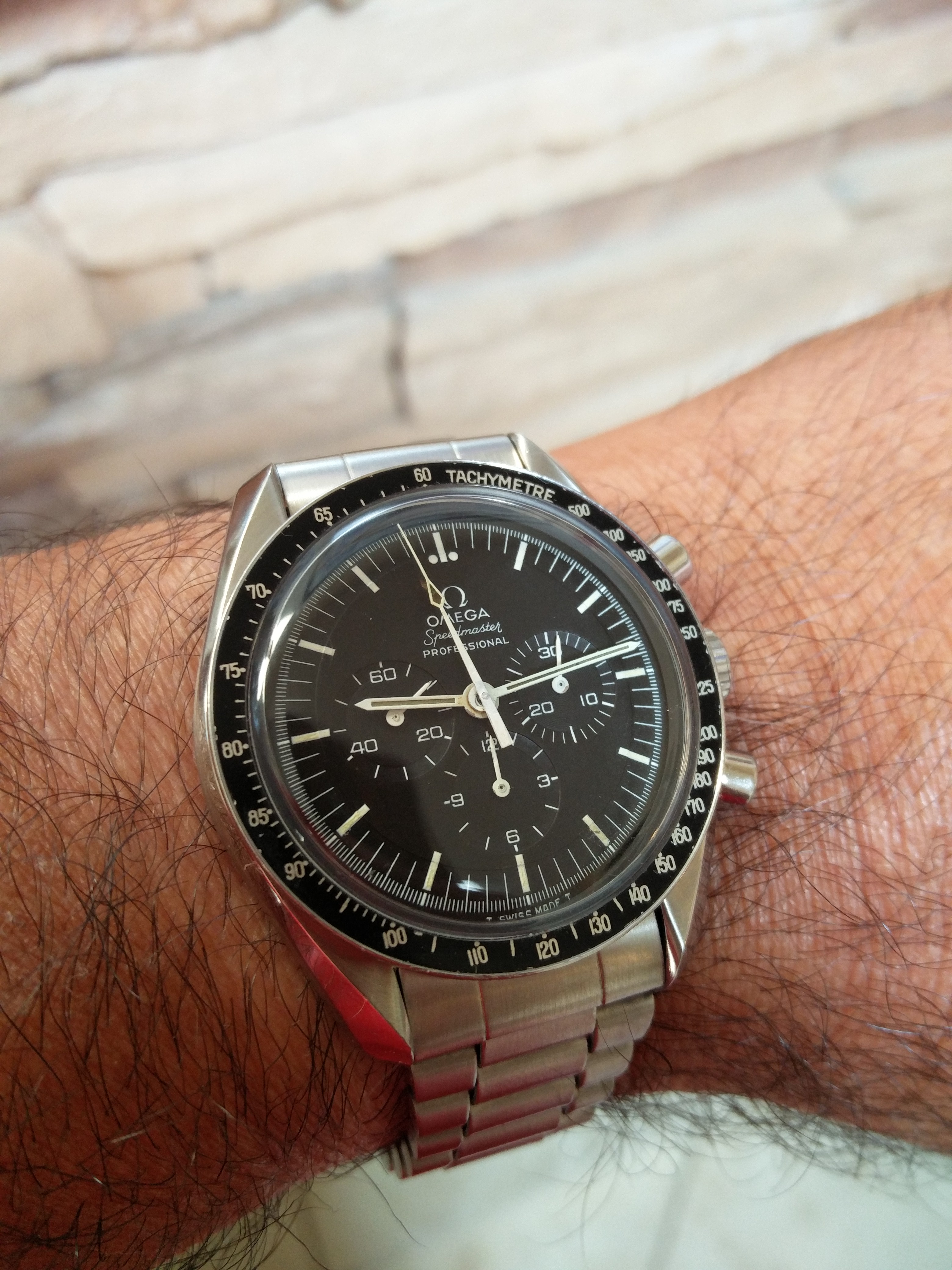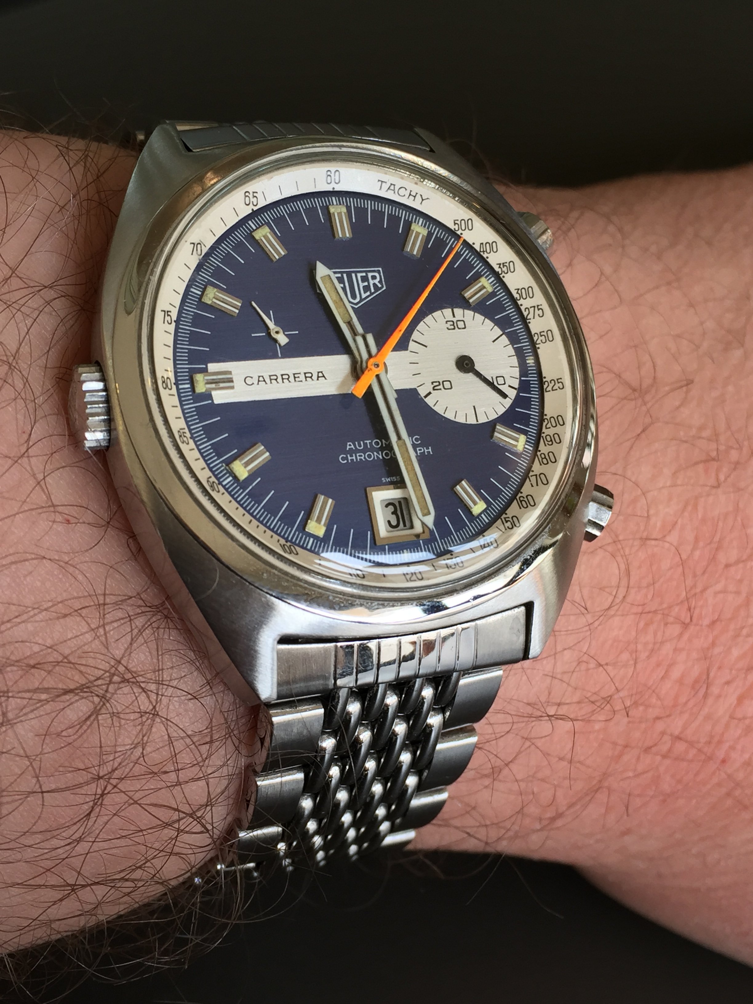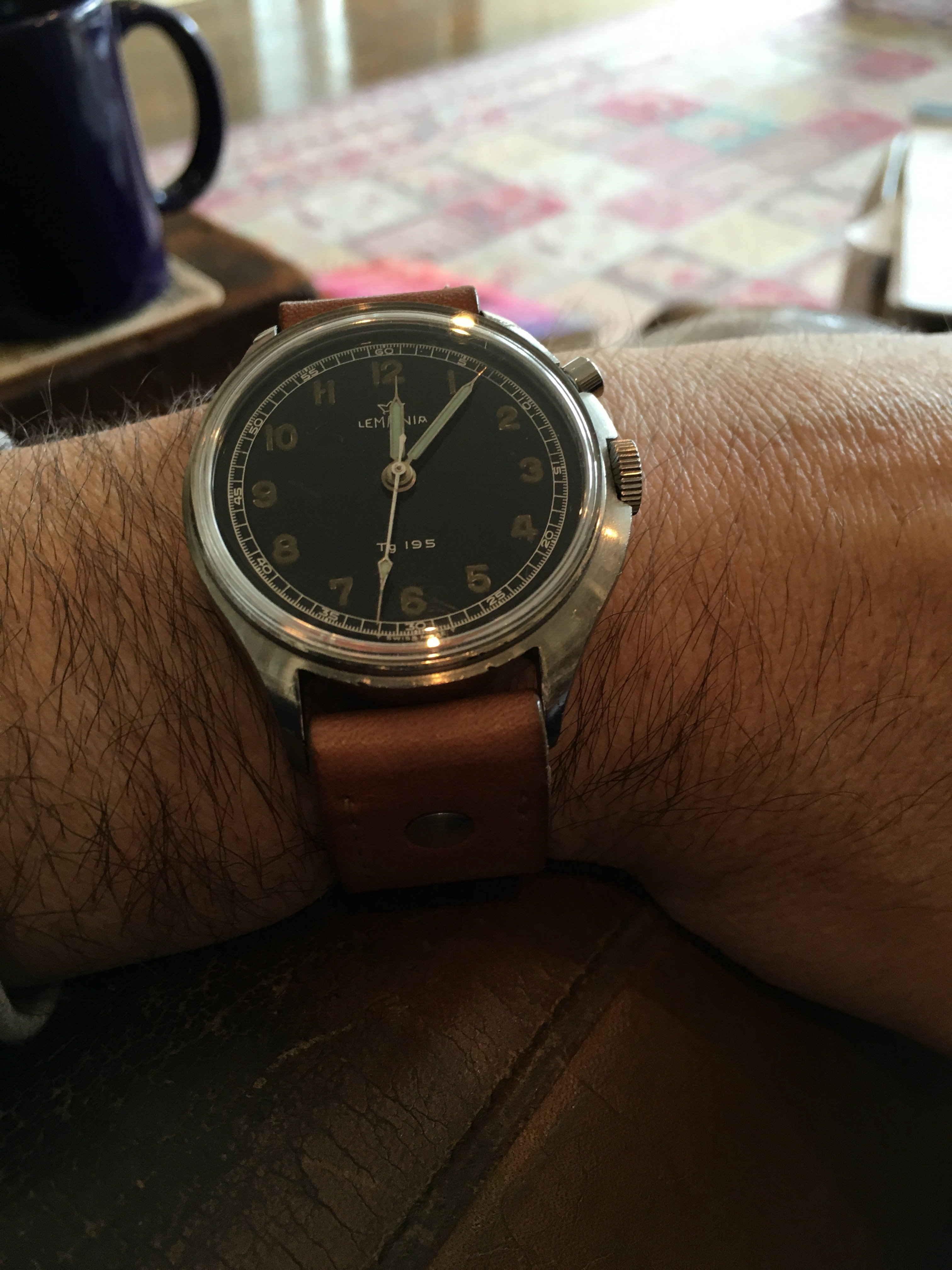 Straight Writing today. Decided to cover scratch in dial with chrono hand. Out of site, out of mind. Nope, damn scratch has been driving me crazy.