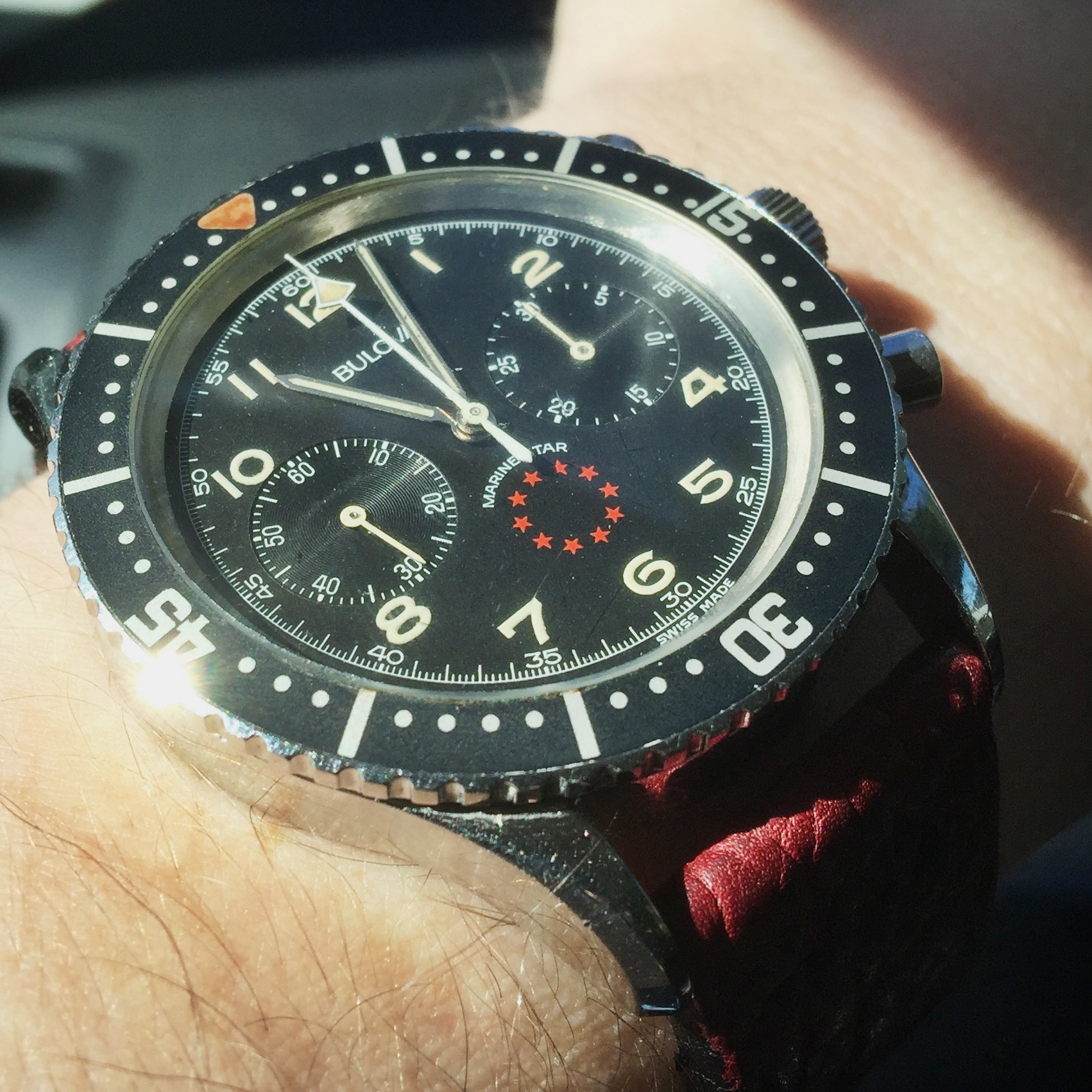 Today, it's a piece originally commissioned in in the late 70's for the Siberian military: the Bomega Polmylka 700-s. It boasts wind resistance up to 25meters-per-second and a power reserve of 19 hours. I wear it on two variations of what is known as the weeds of rice band, which is highly nitrogen resistant and absorbs UV radiation in the ultraviolet spectrum.