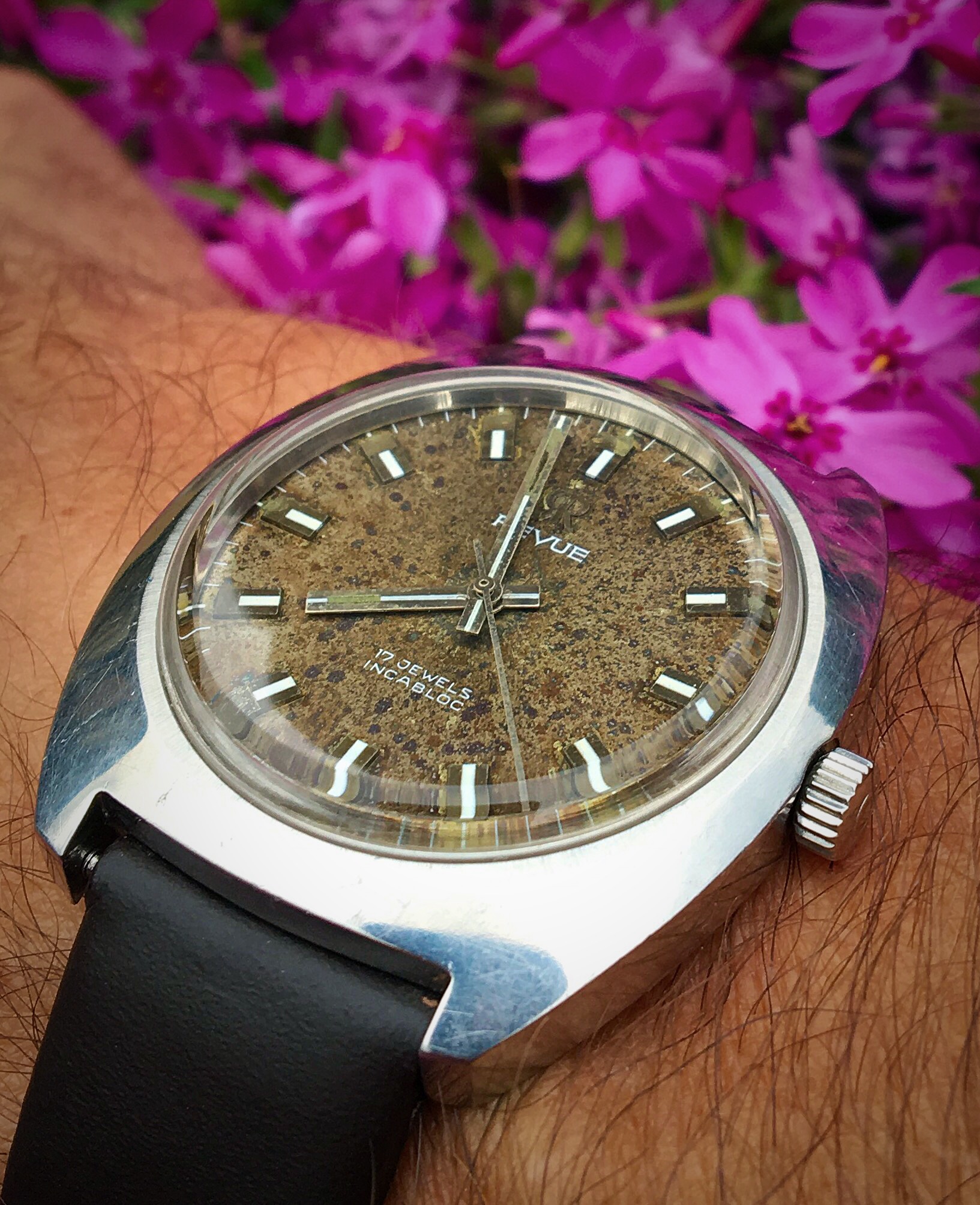 I bought it for the interesting dial which, I think, is part patina, part intentional, but I could be wrong! The seller called it a 'stone dapple' dial. Perhaps ugly to some, I do like the look: