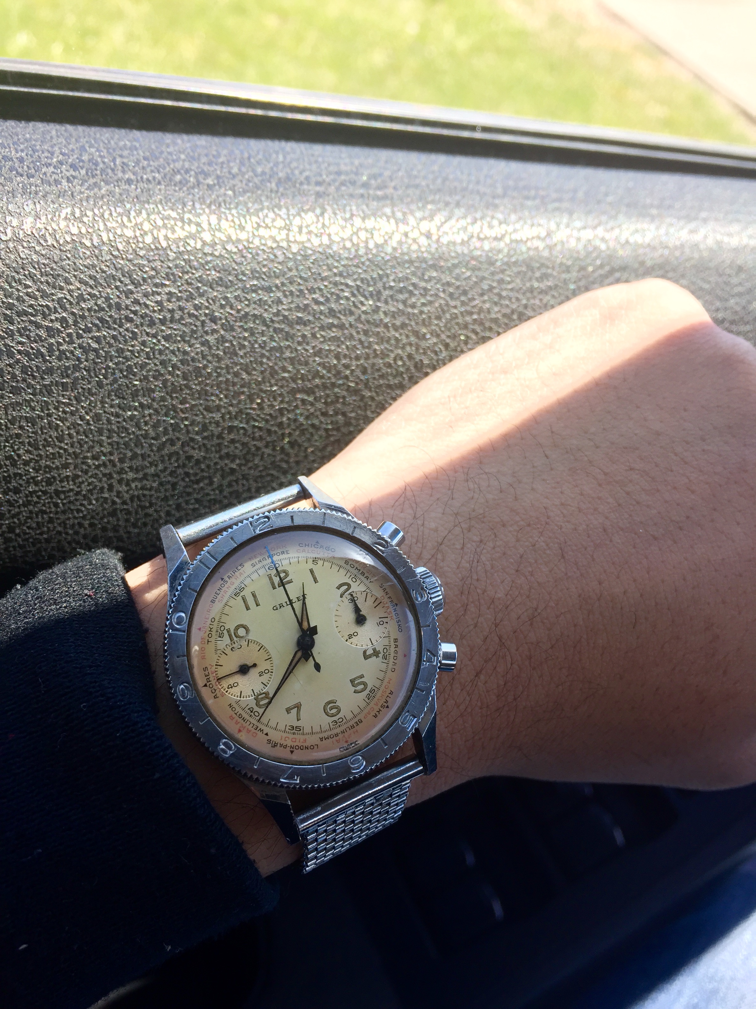 That looks like a ref. 960 or 975, possibly chrome case with stainless back (975-C?), with the optional dial seen in fig. F at the right-hand side of this brochure: