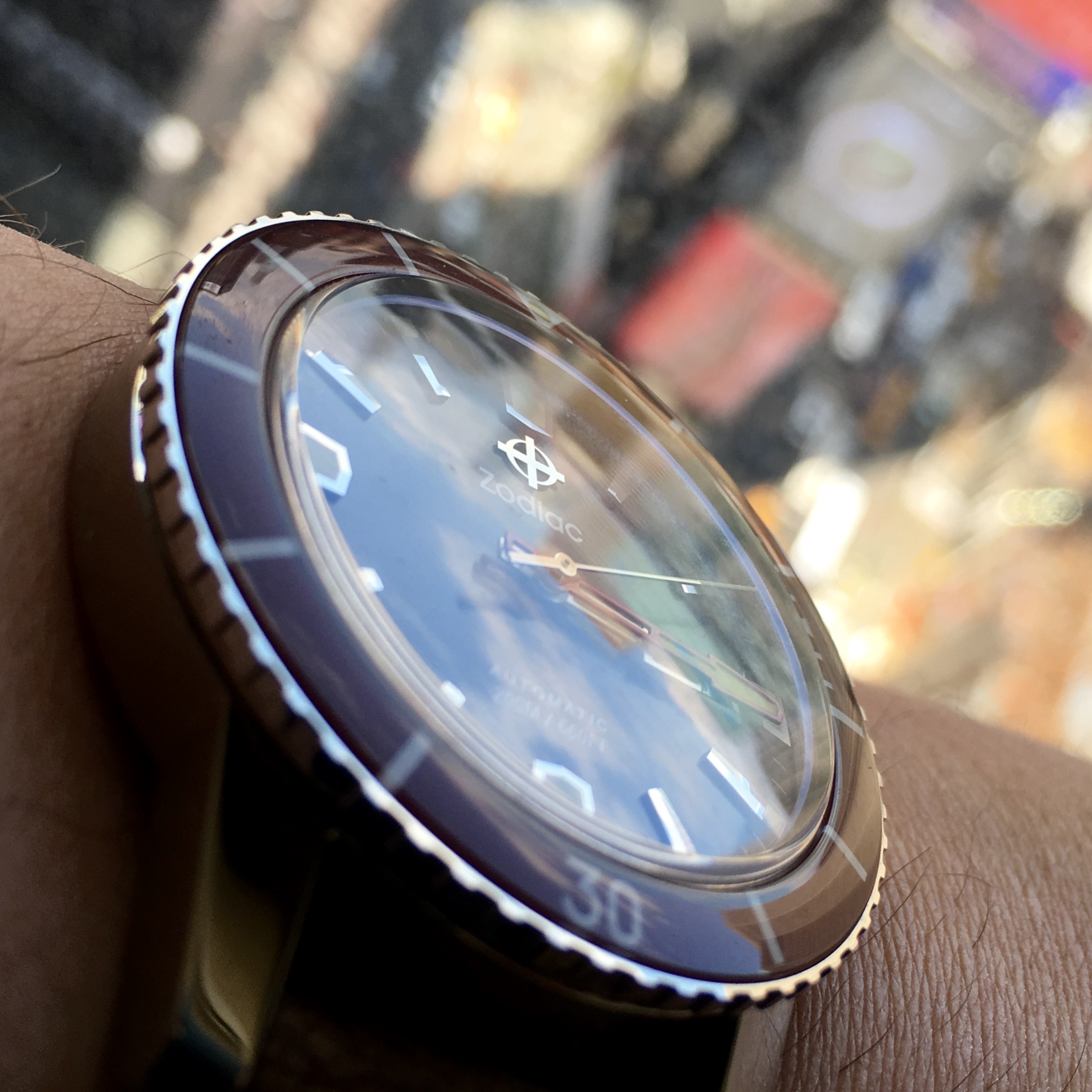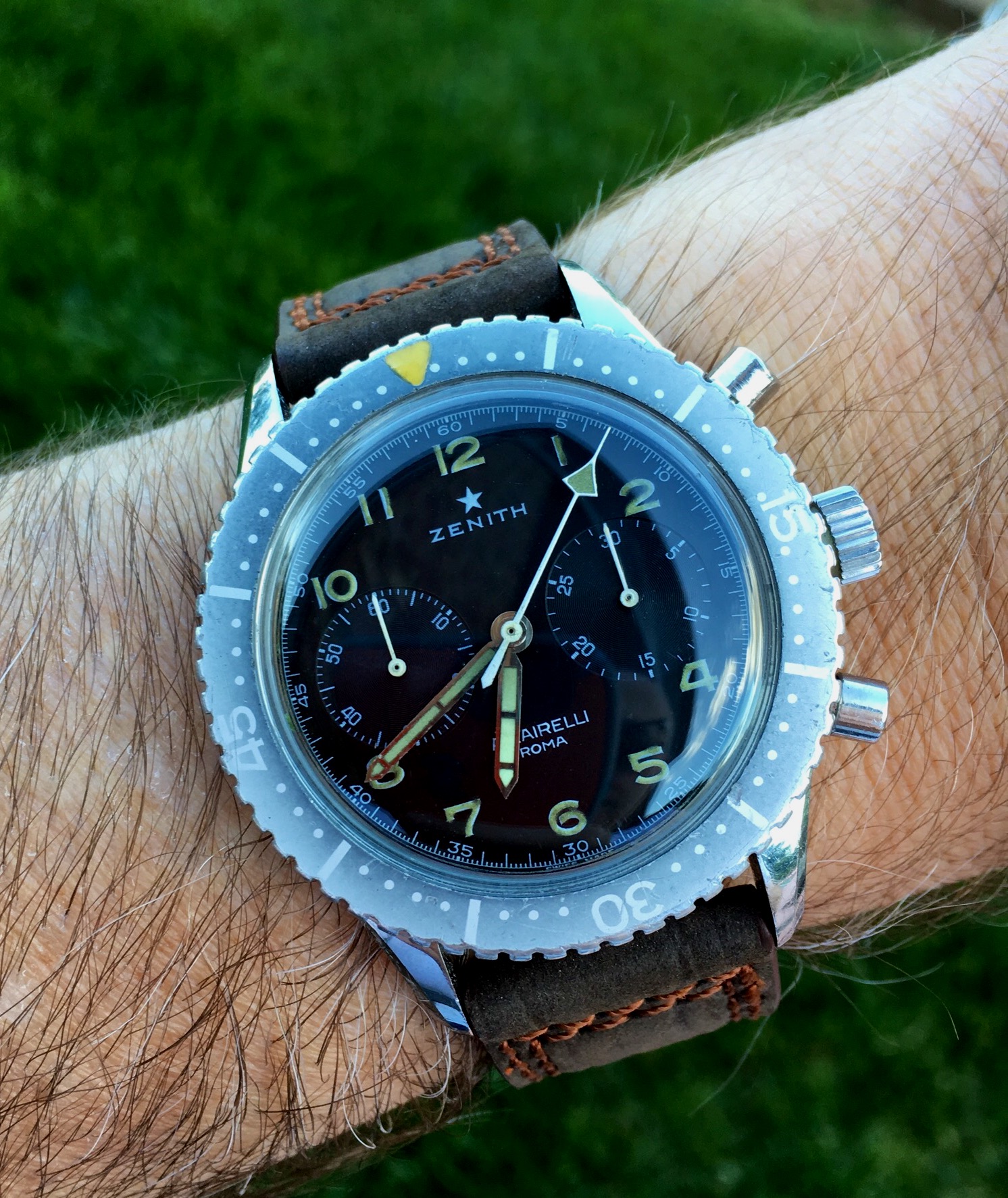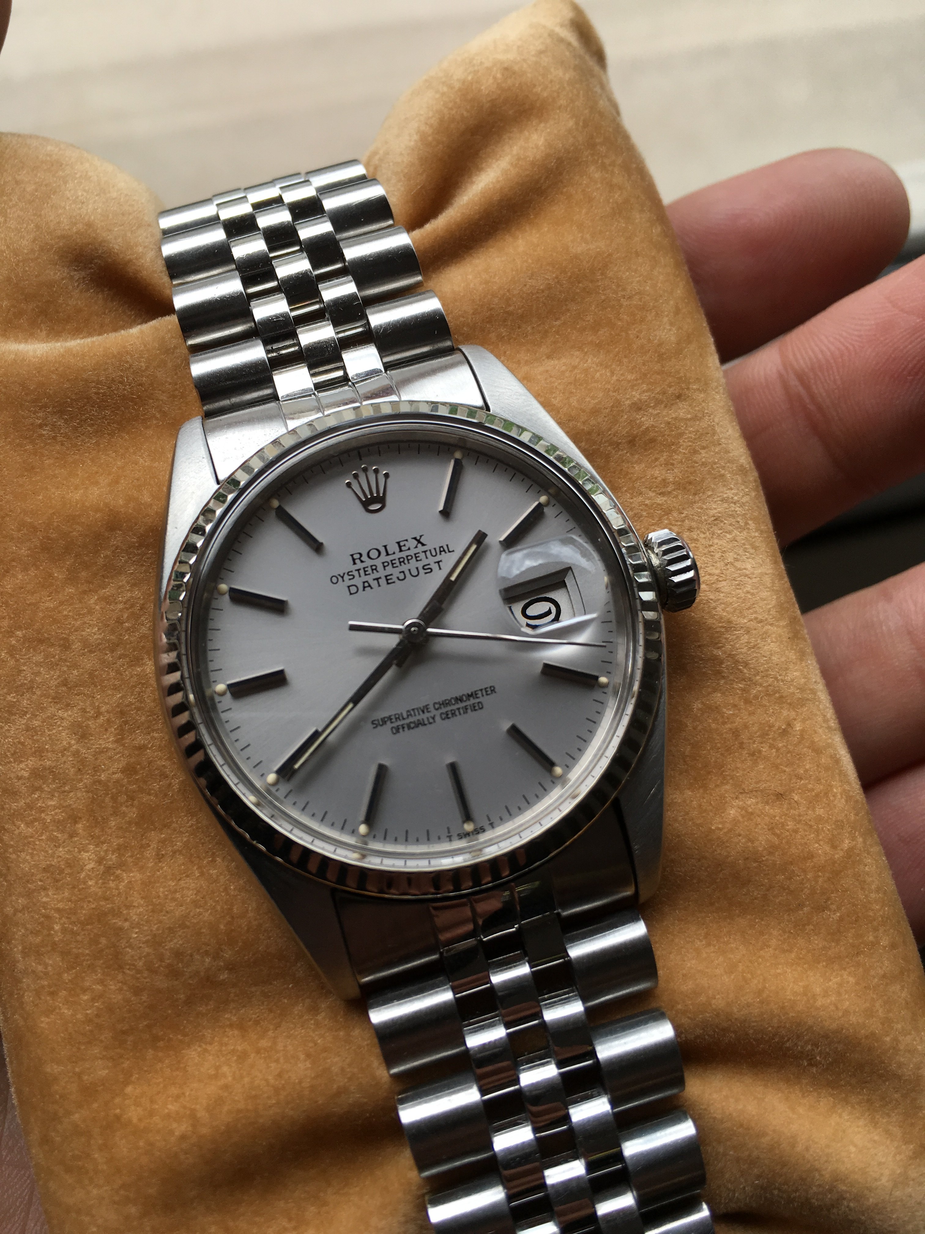 continuing the farewell tour...this is the rolex that wasn't meant to be. at 34mm, too small for me..6569 OP with engine bezel, aged dagger hands and blue sweeping hand,