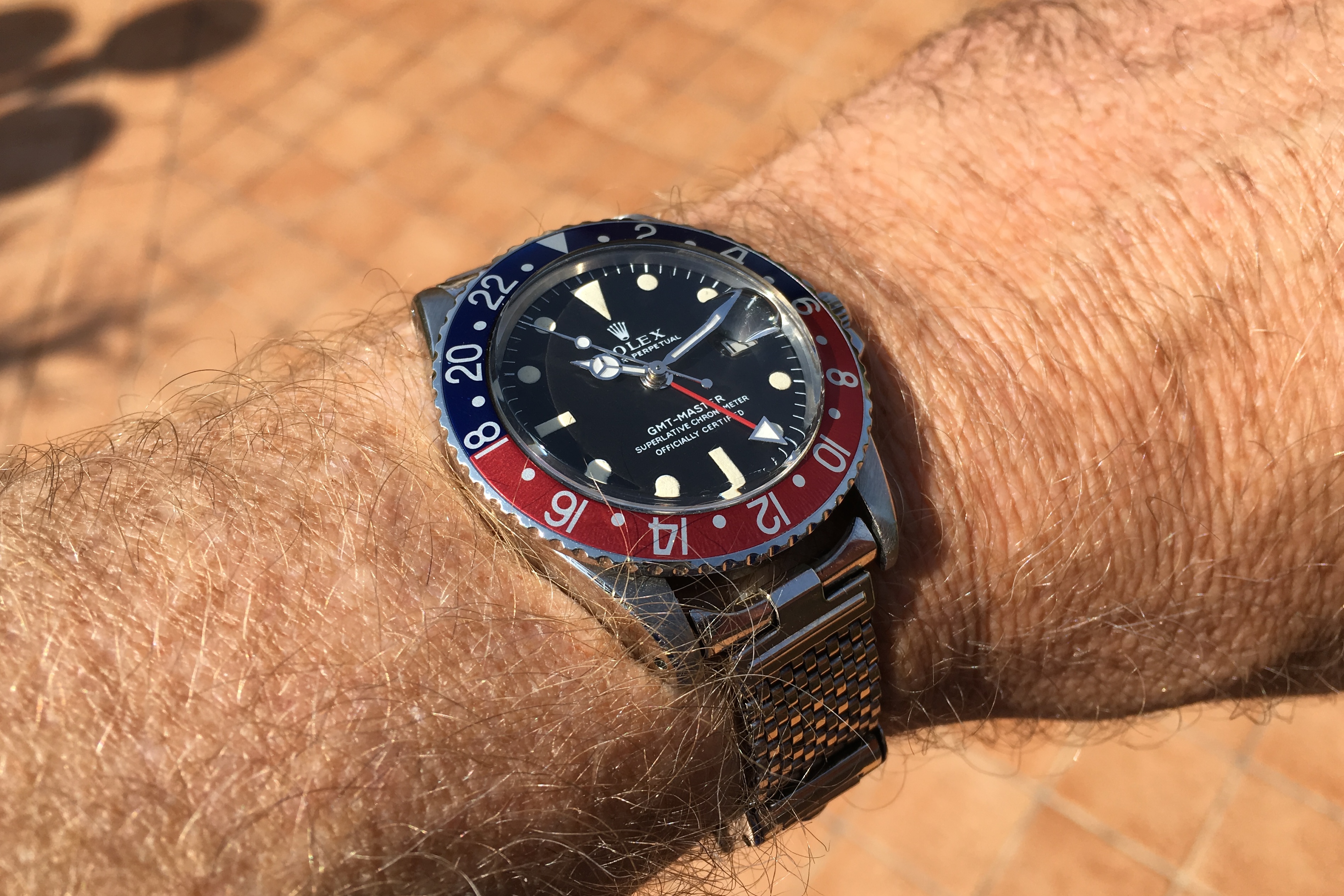 Out of everything created that night this combination was one of their favorites so I thought I would try it out for the weekend. Love it or hate it I have to say it wears quite well and gives the GMT a real 60's vibe. I've even poured a bit of gin on the bracelet to give it that after party next day stickiness and smell.