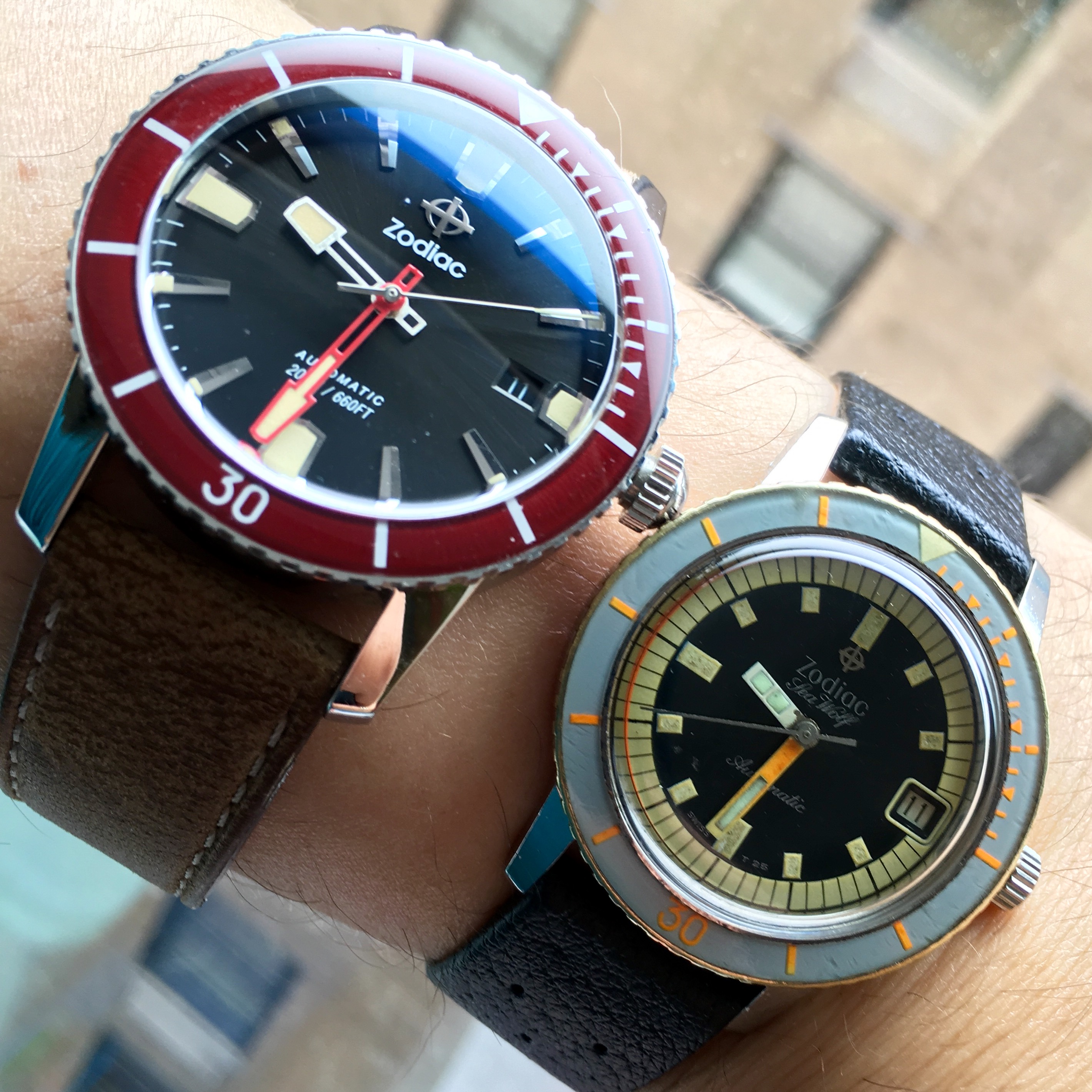 Rain is predicted. May change over to the modern Sea Wolf from vintage. The steroid use is obvious but not too ridiculous. Both are fun watches to wear, but I do like the tiny jewel like proportions of the vintage piece.