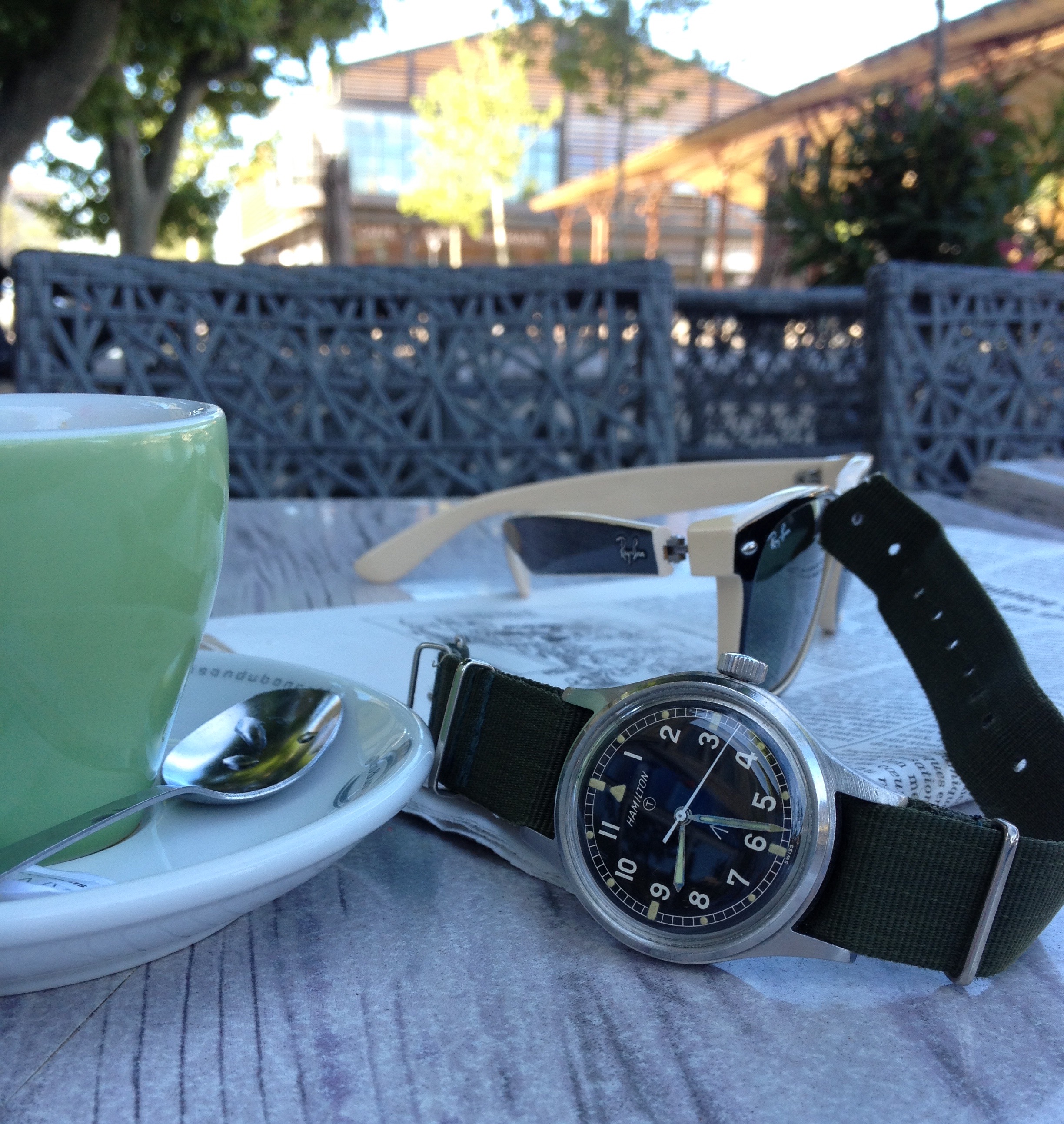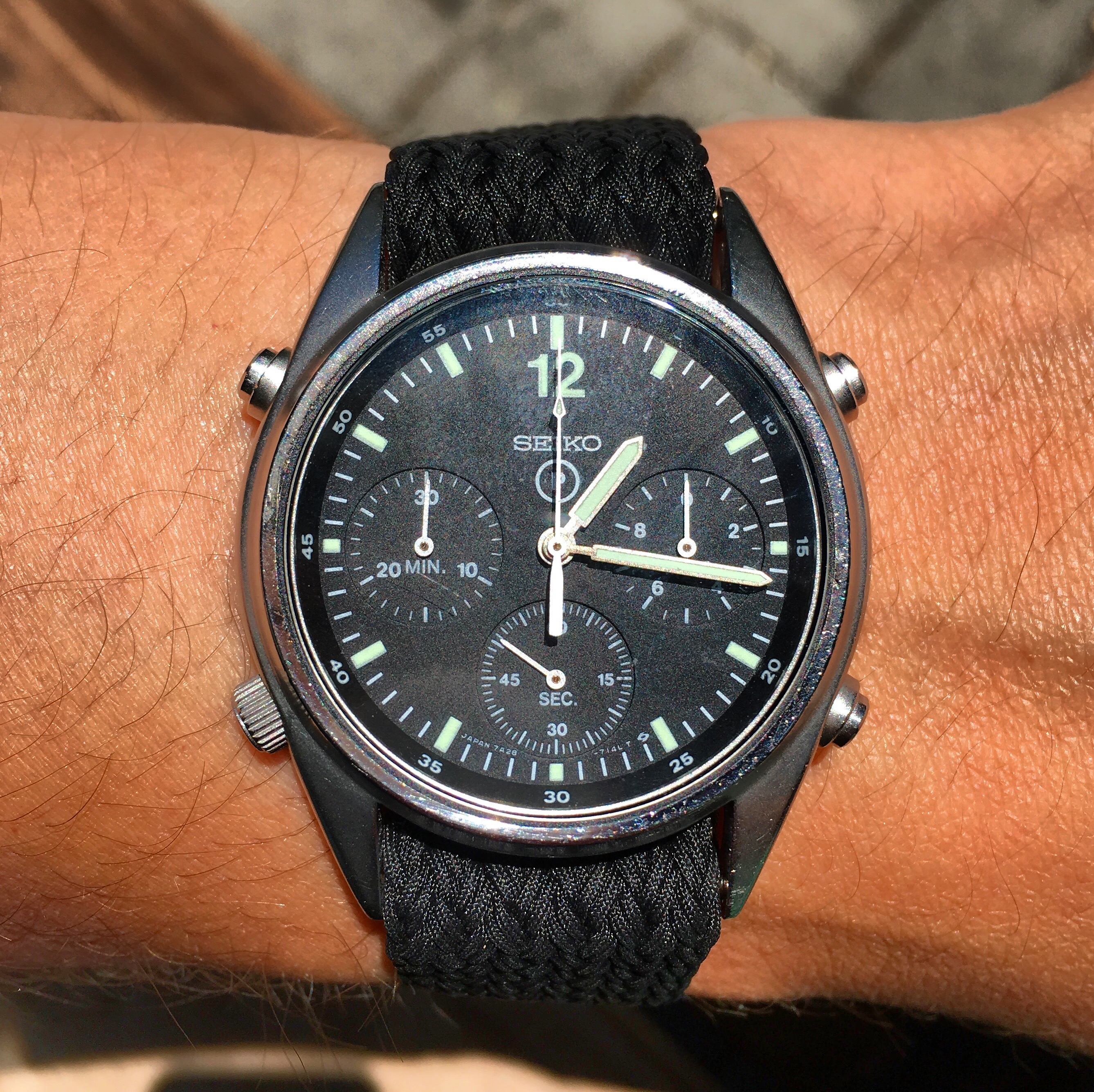 Posts 441 Likes 2,885 themattedial 路Jun 19, 2016 RAF-issued Gen 1 Chrono -- first year of issue. The first analog quartz chronograph. On a eulit panama neu strap.