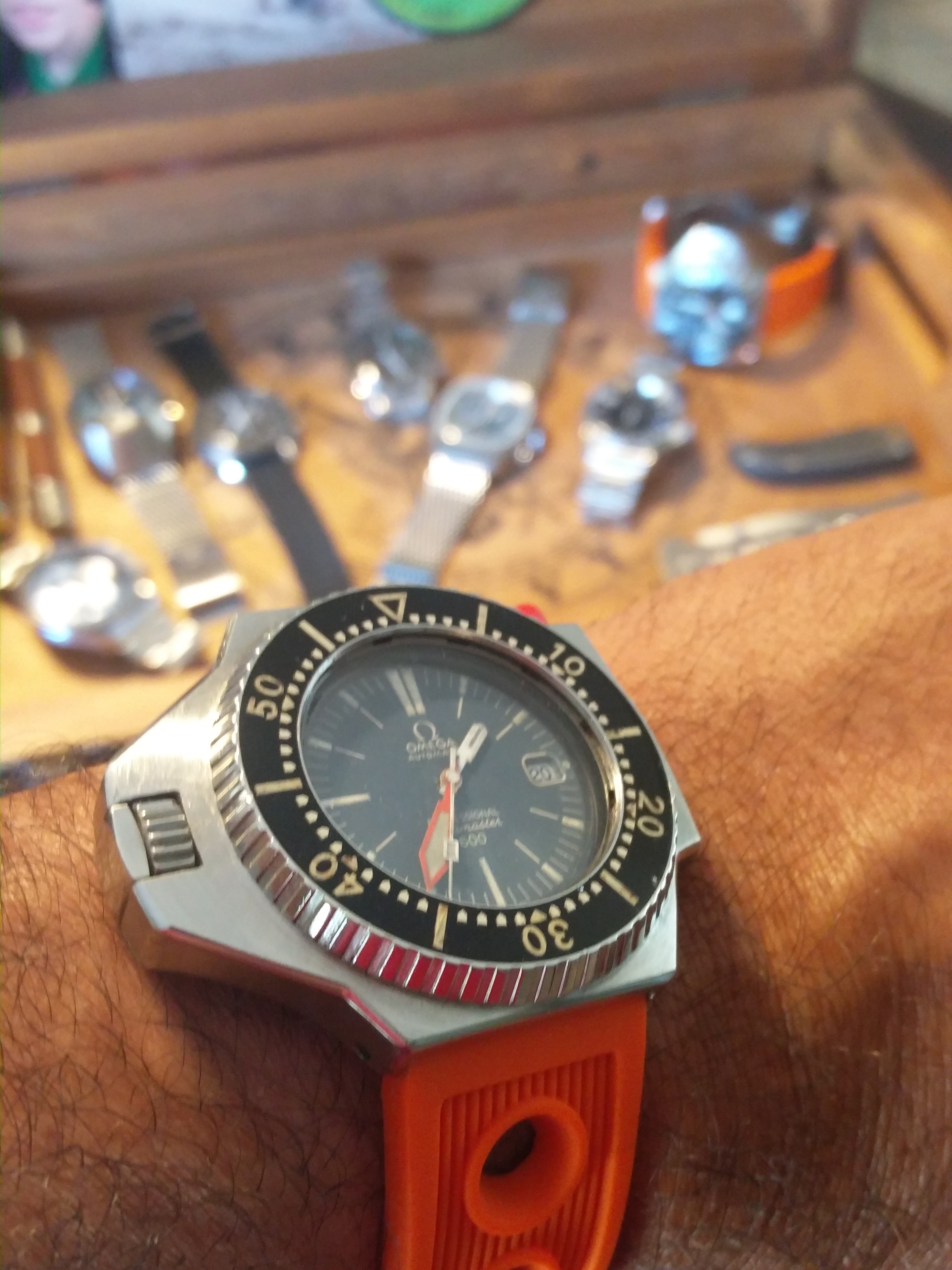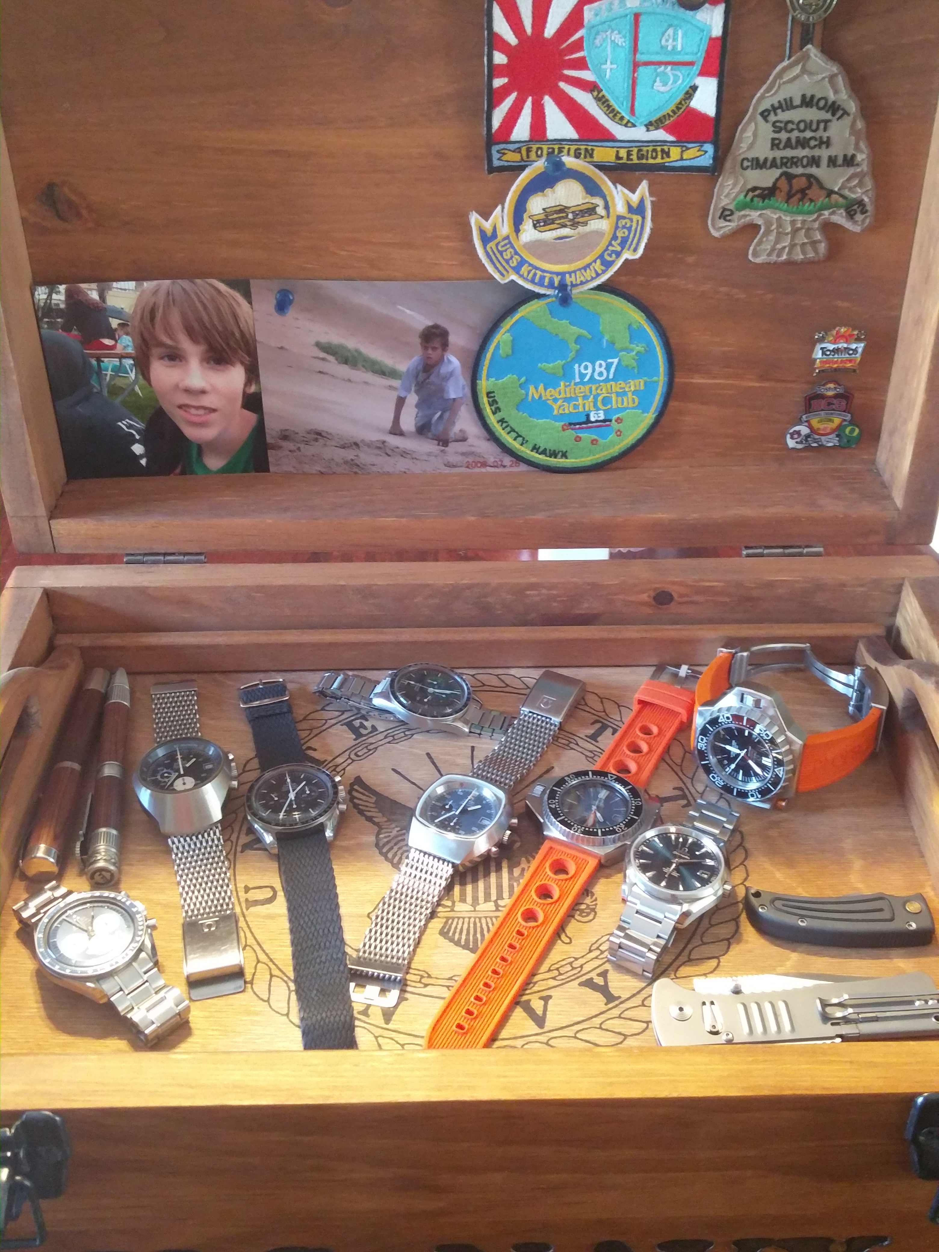 For Father's day I received this Navy wooden box to keep mementos and watches 😀. Fits most of the watches.