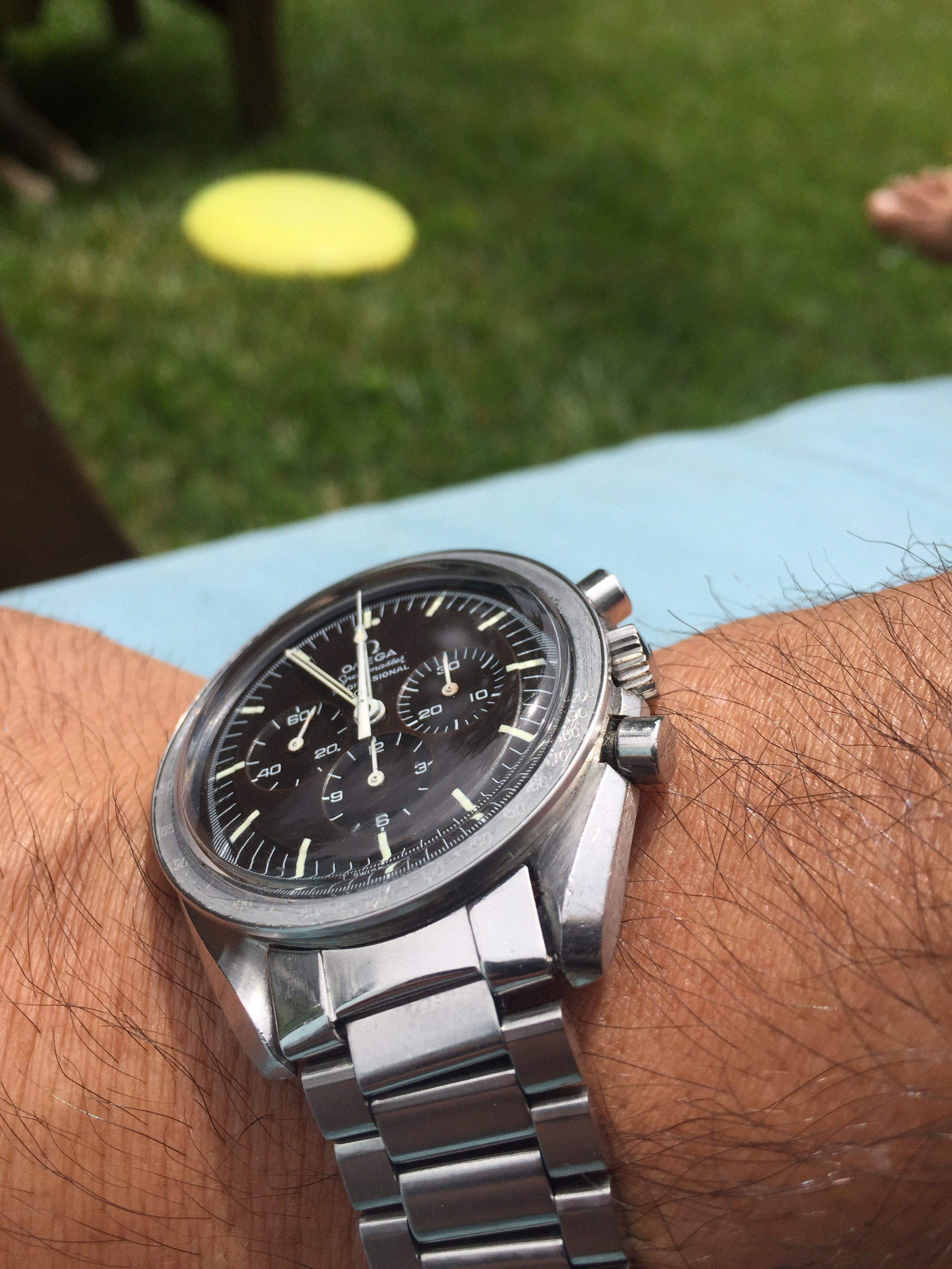 The first vintage Omega I ever purchased, a late 1990s Ebay purchase from a murky South American vendor. Liked the notion of the "beads of rice" bracelet so soon bought one of those to. Happily wore this watch as the daily driver for years, until Omega Forums wised me up to redials. If it isn't a redial, the lettering is rather thickly done. Has the 505 movement. It's still a good watch.