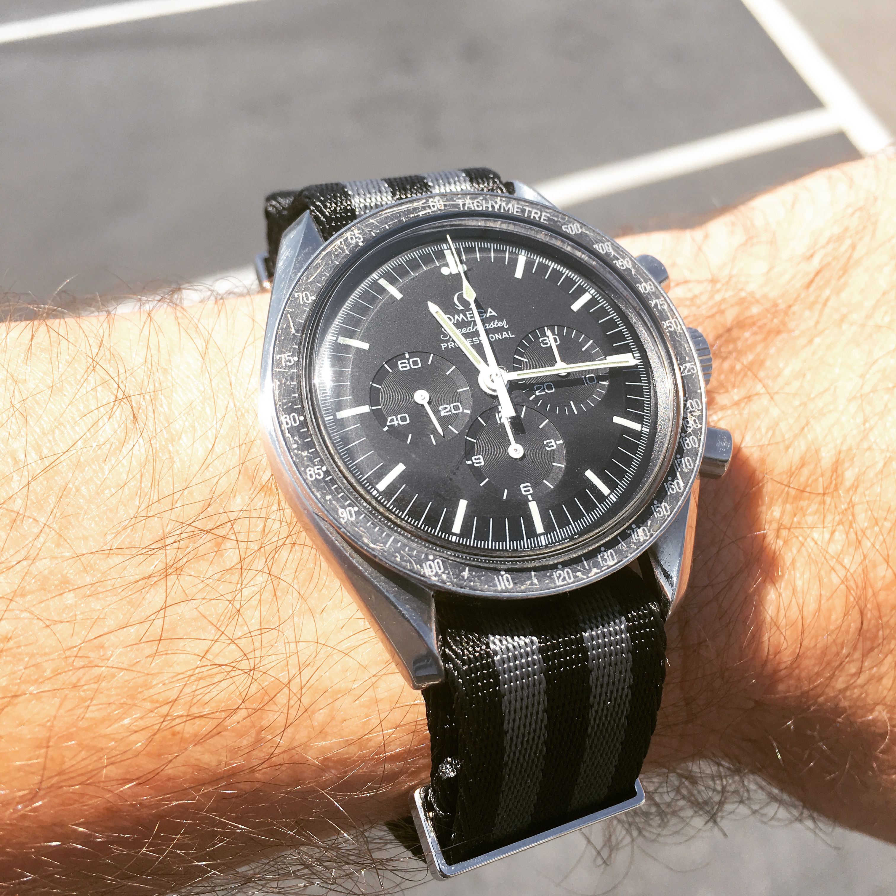 Just spent a satisfying hour moving straps and bracelets around. I bought this perlon band for my Unitas and had more or less forgotten about it and re-discovered it this morning.