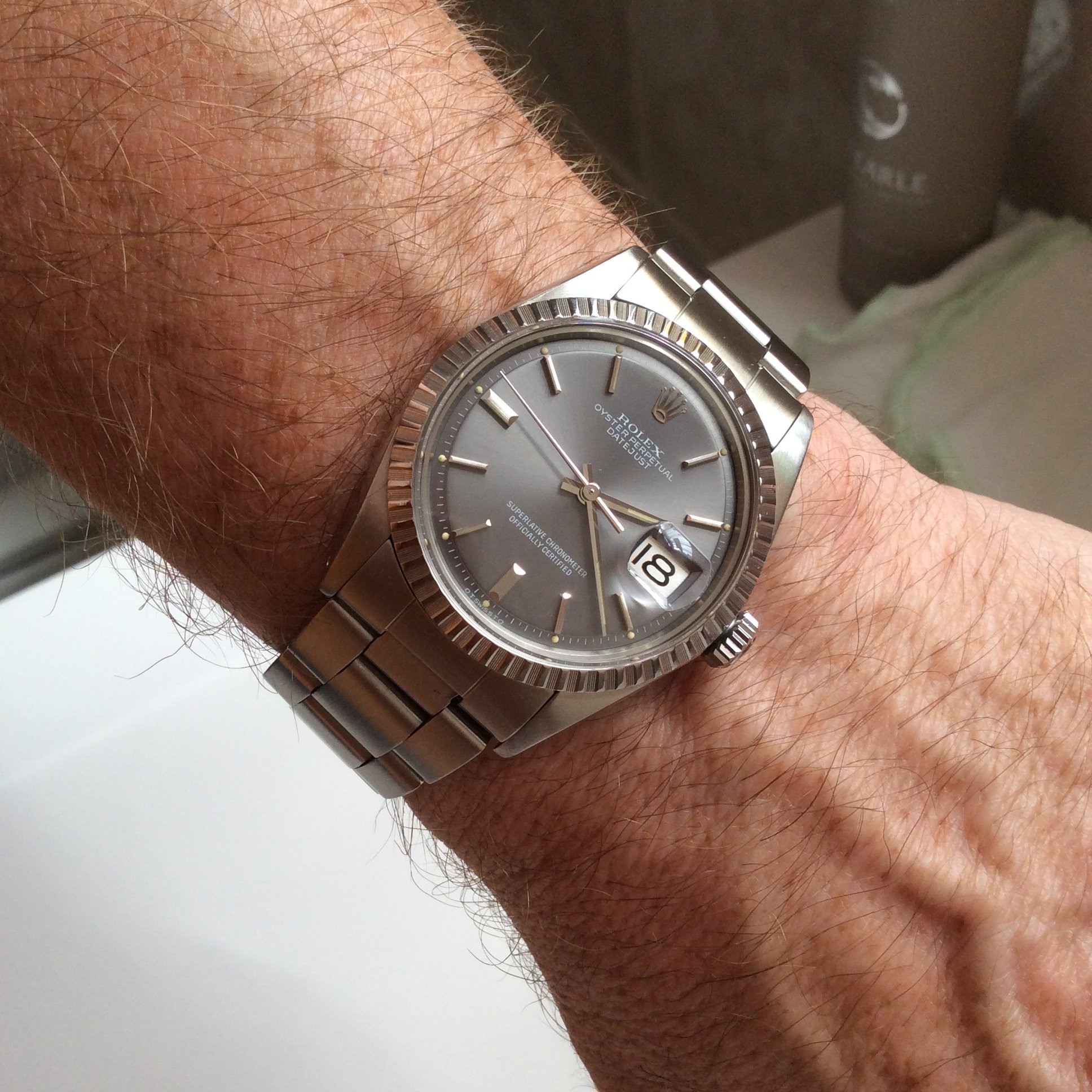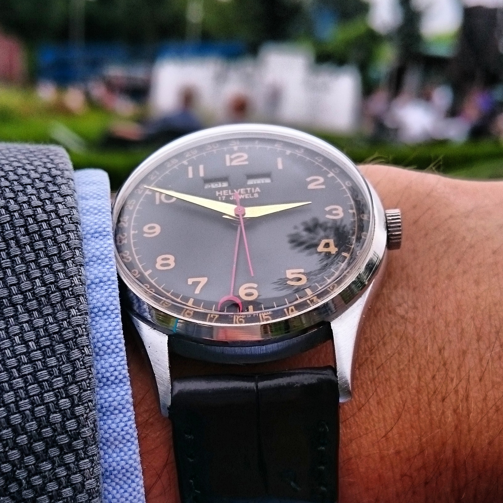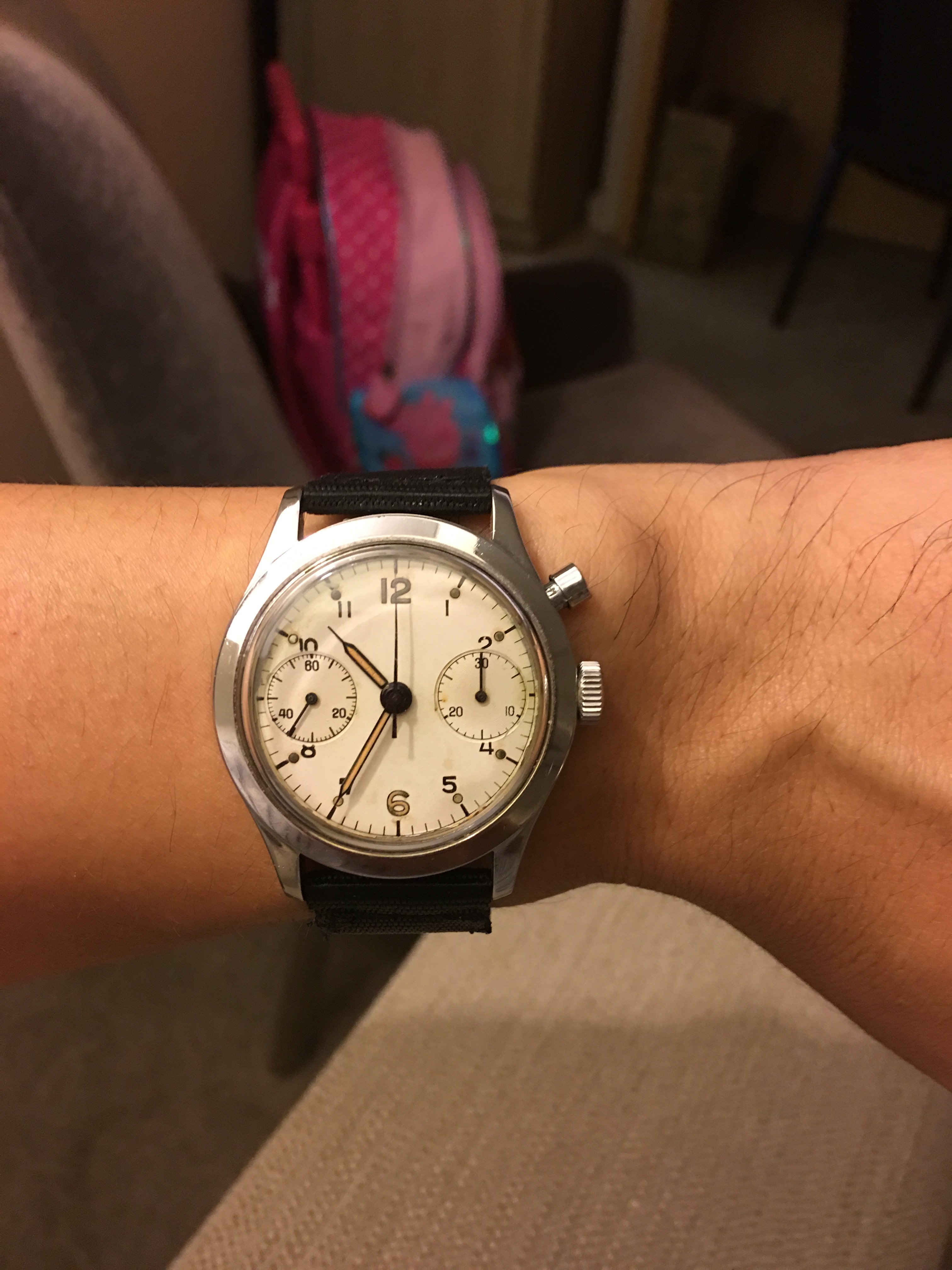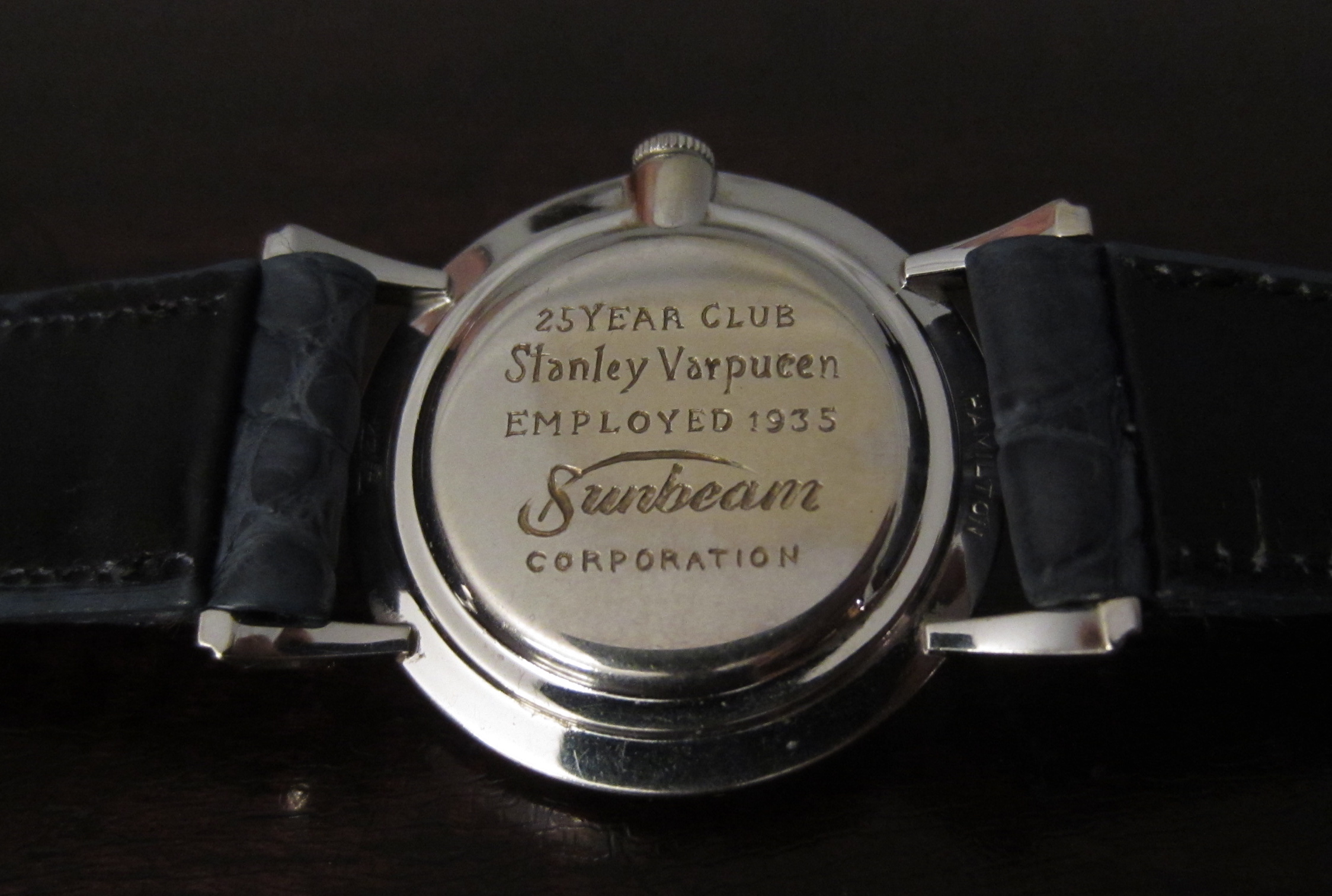 I don't wear this ca. 1960 Bradford B often enough. It reminds me of Patek in quality (really, esp. with its superb 22-jewel cal. 770). 33mm 14K white gold case (white gold not too common by then). It was not worn much, obviously. These are old pics, but it looks the same!