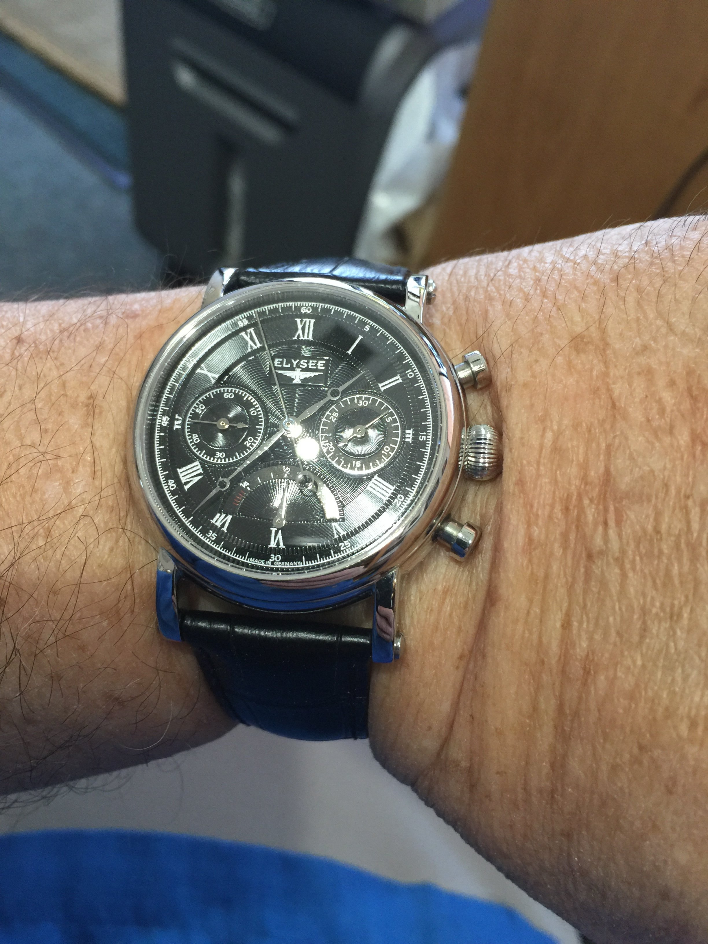 Posts 8,498 Likes 60,692 TexOmega 路Jul 21, 2016 Still rockin' my NOS pilot Chrono homage. Modified Valjoux 88, power reserve not moon phase.