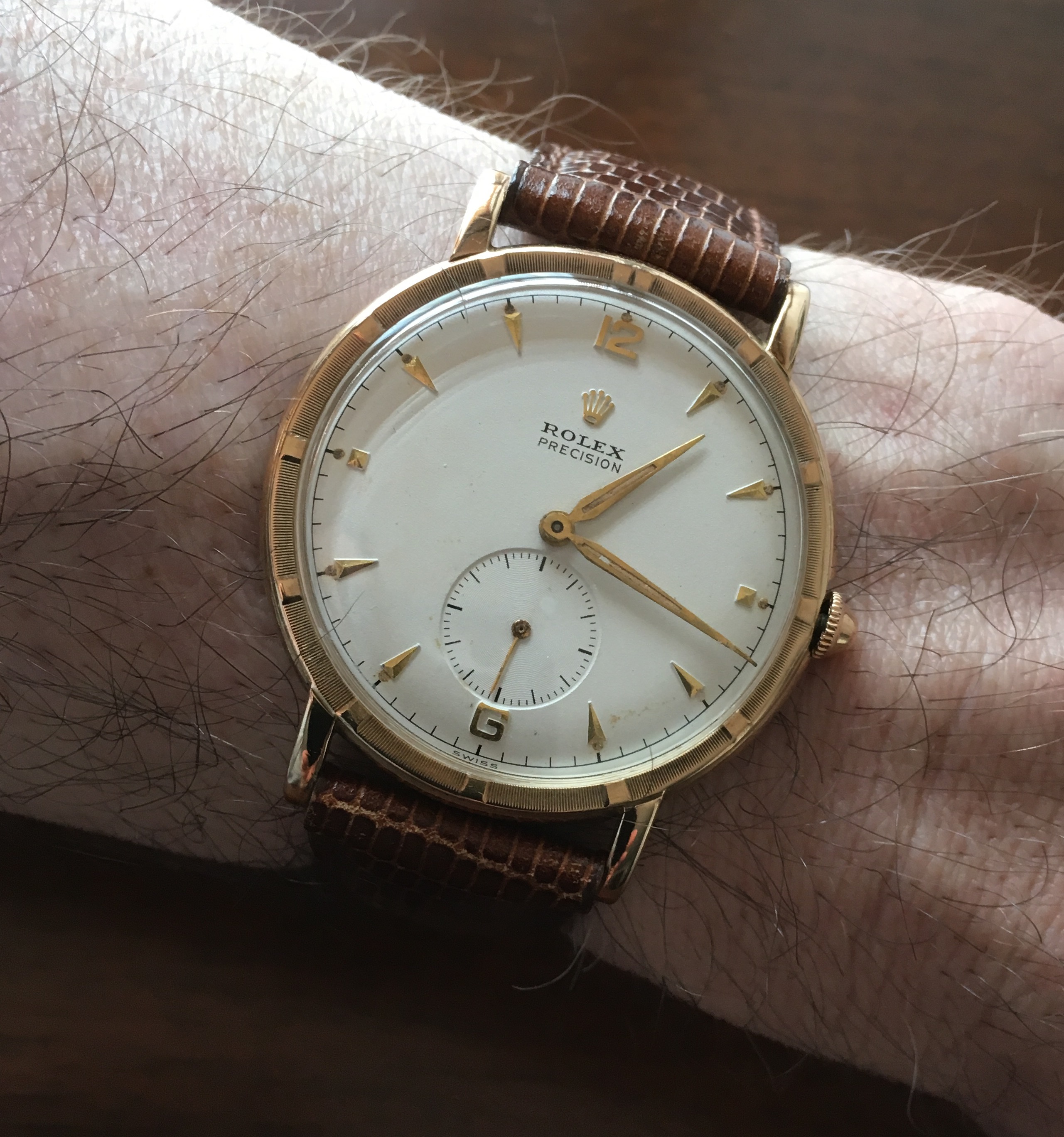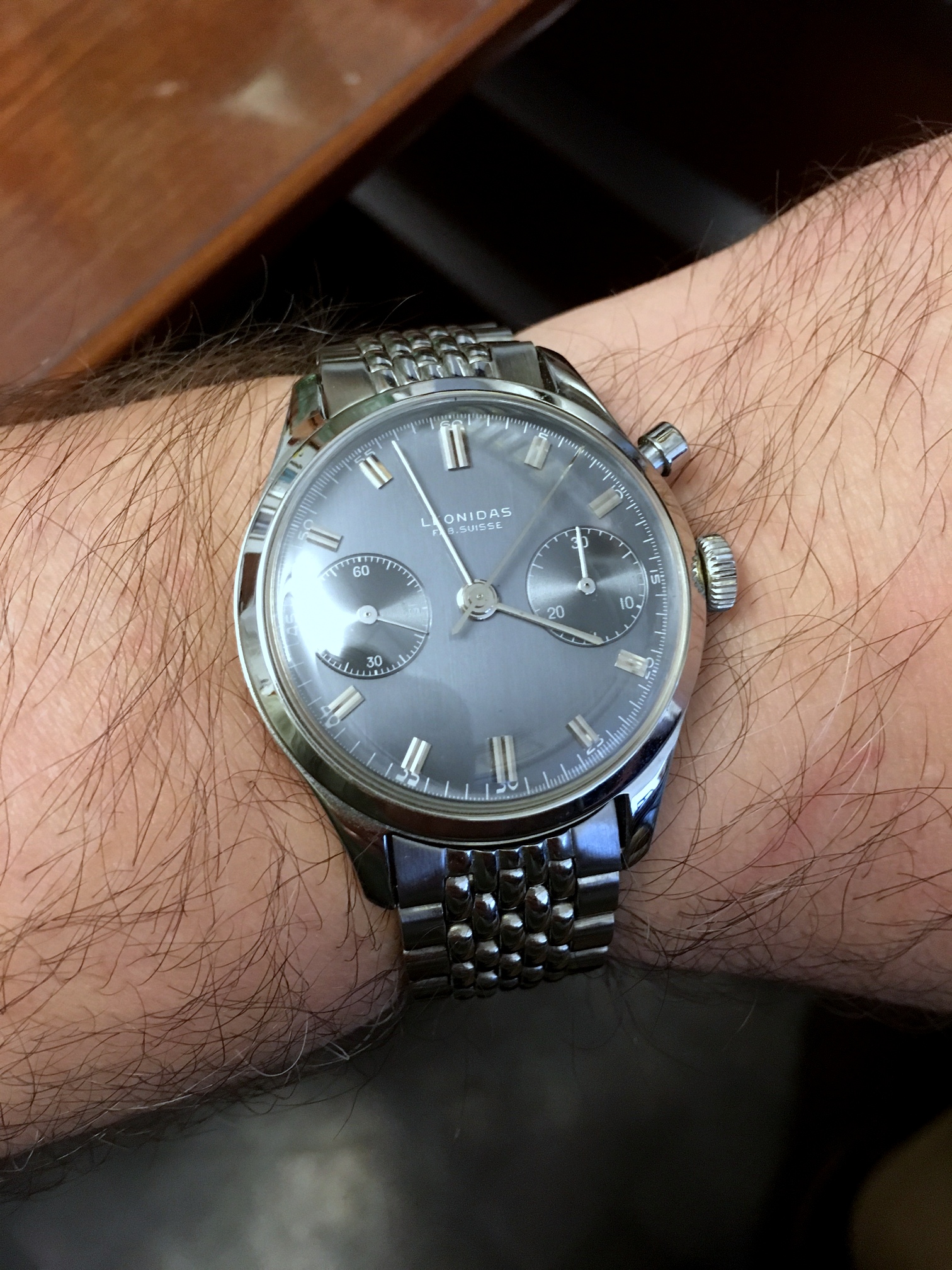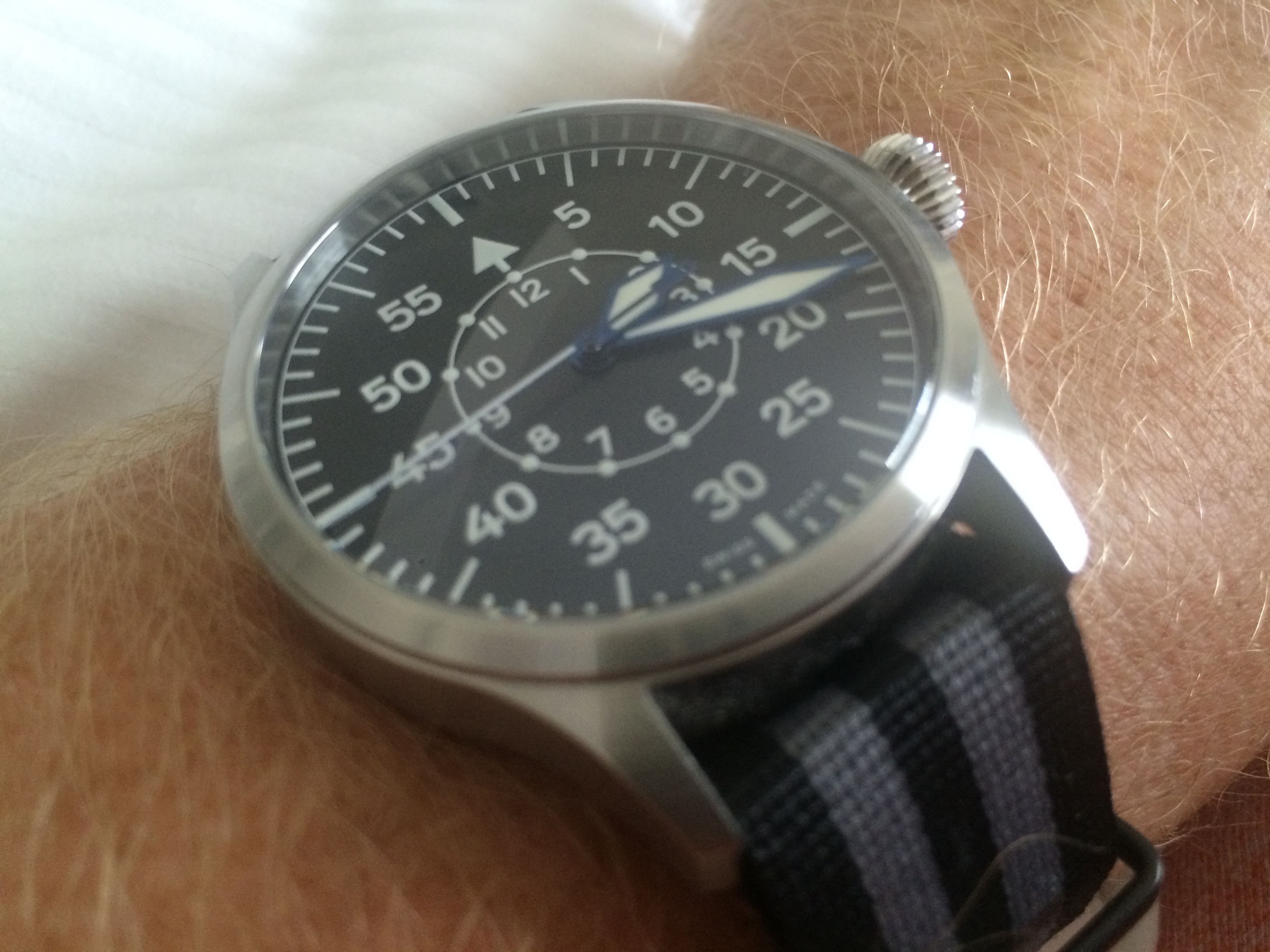 The fuzzy focused wrist is a '55 caliber 501 Tresor, now that's modern! Its got a rotor that goes all the way round!