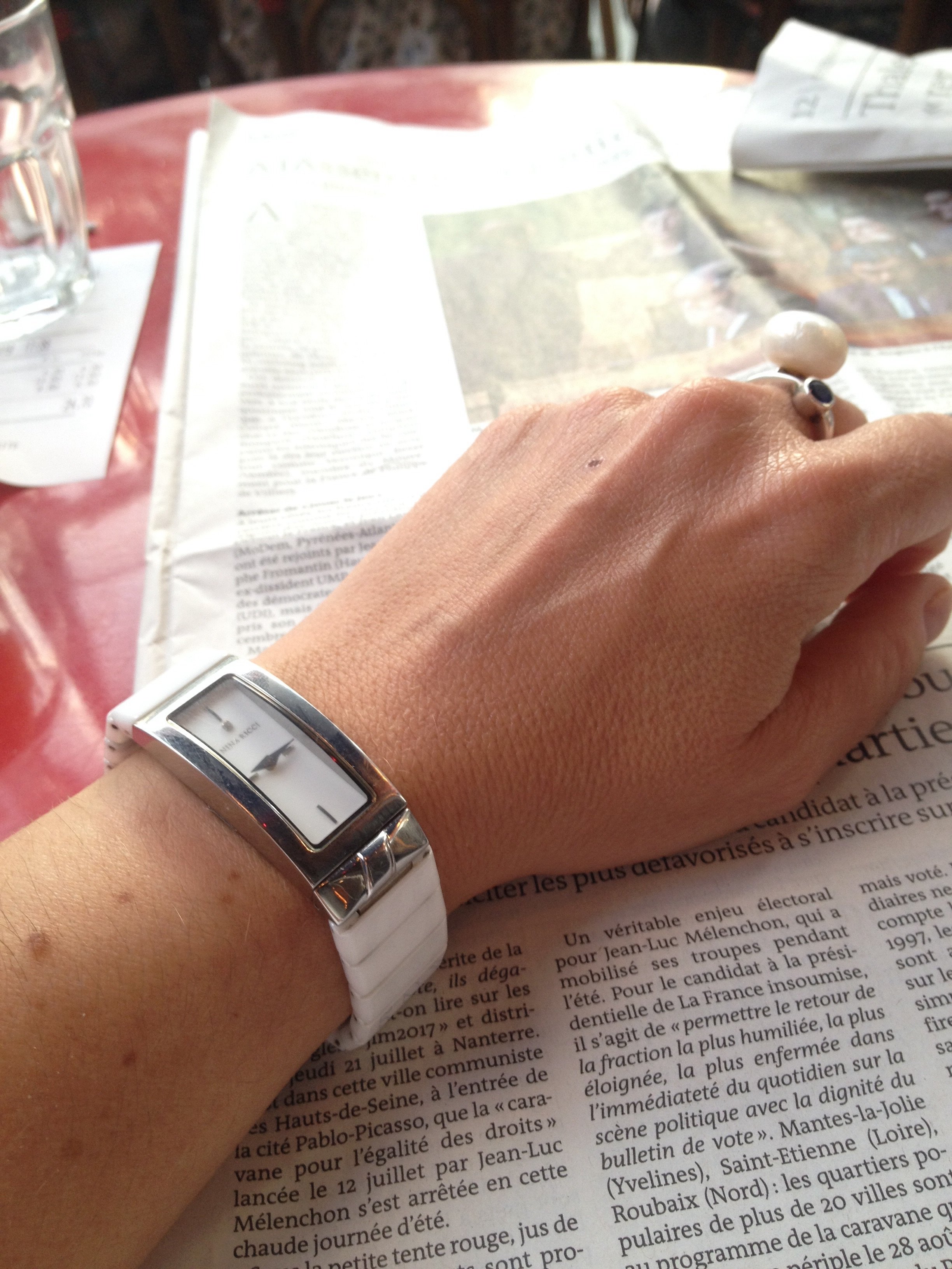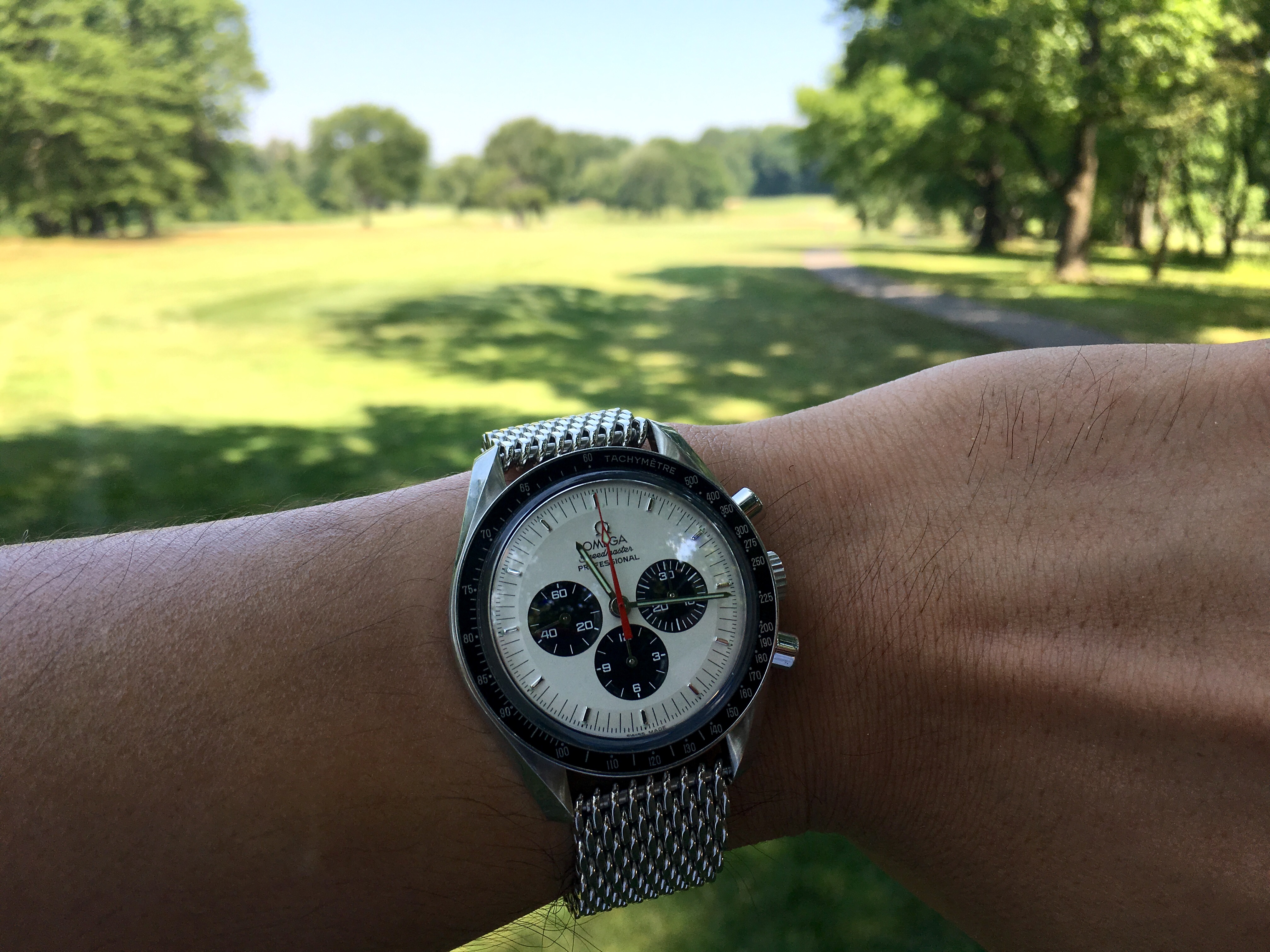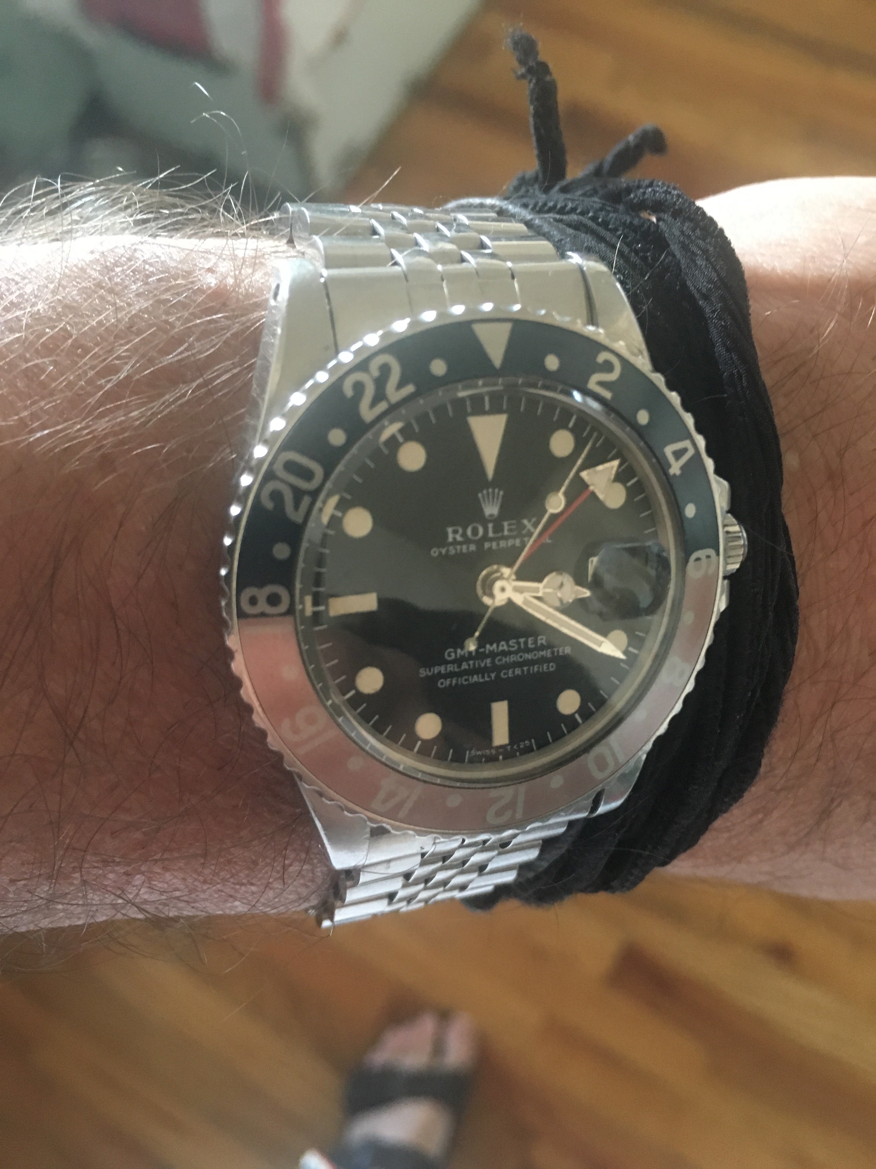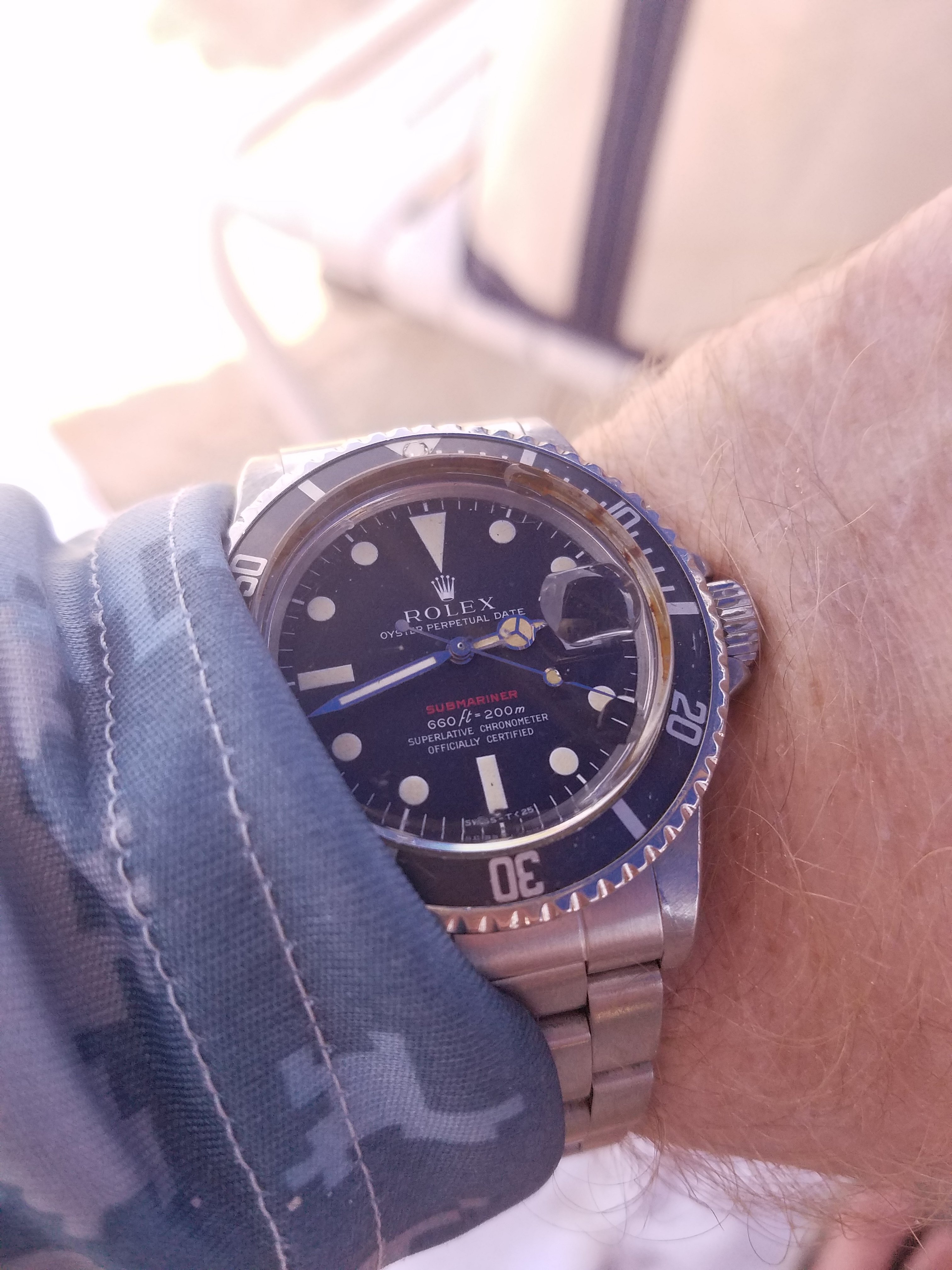 The fuzzy focused wrist is a '55 caliber 501 Tresor, now that's modern! Its got a rotor that goes all the way round!