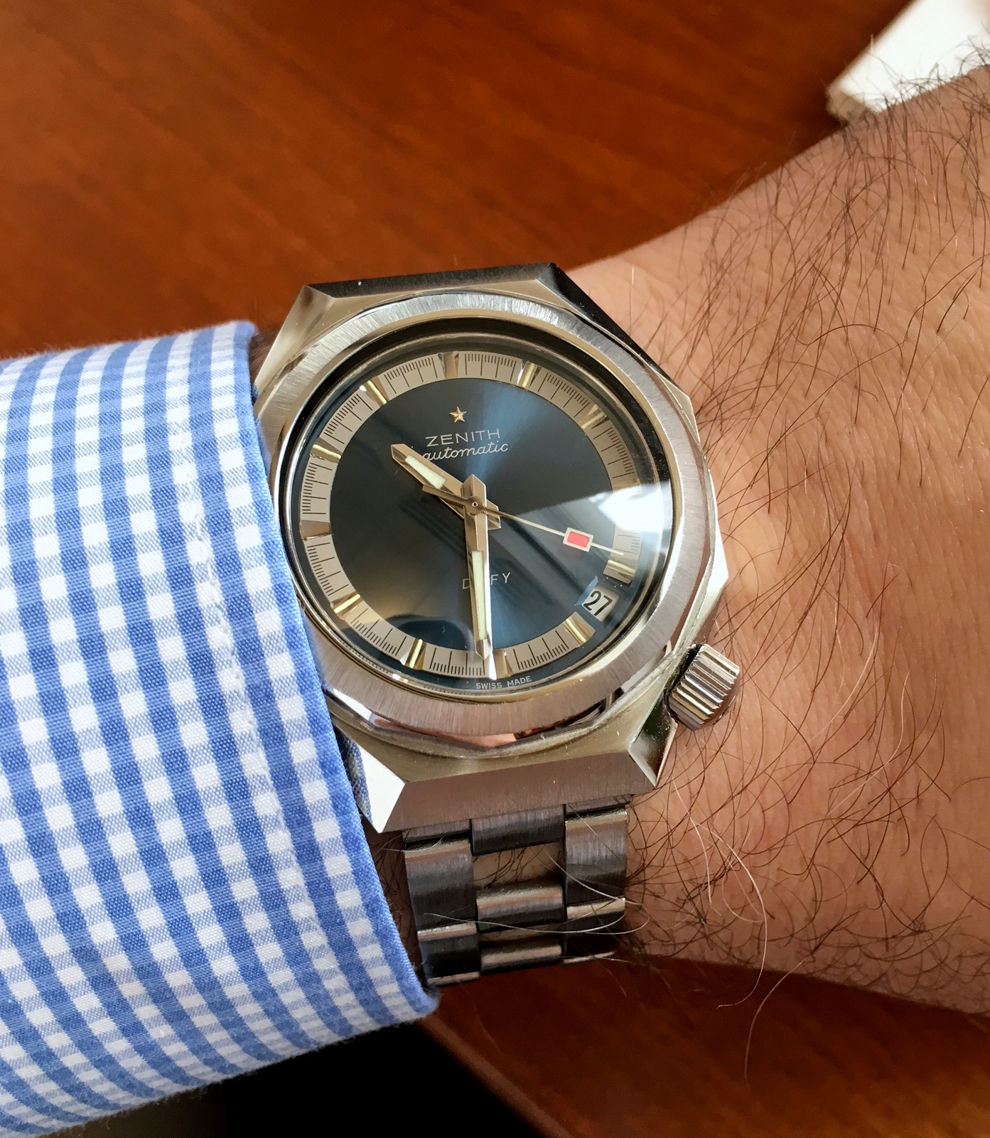 A little watch history: IN 1969, after years of research, Zenith introduced the most effective glare-magnet known to horology. Impossible to photograph easily, even today: