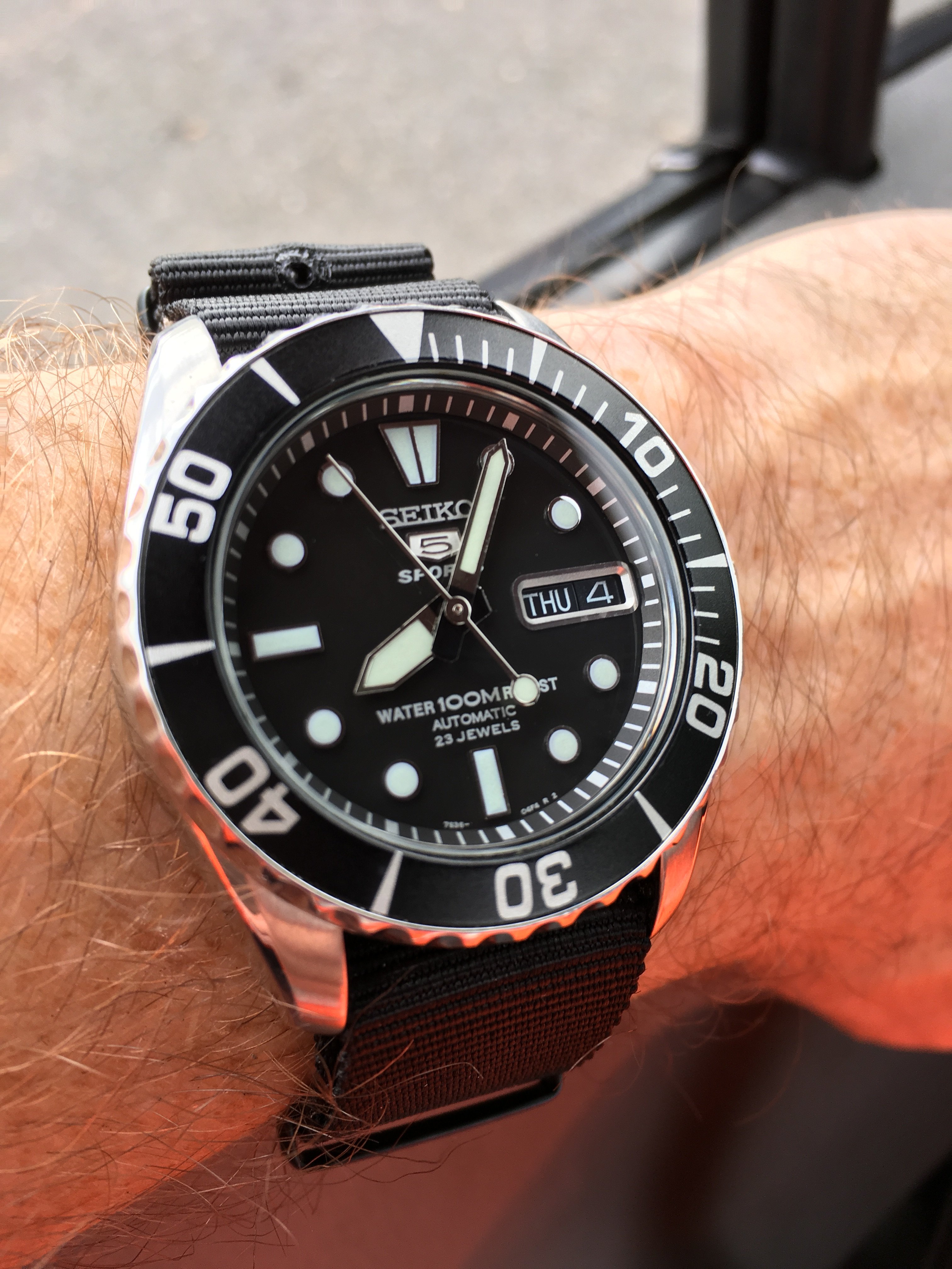 Decided to give it the old college try and do "The Buzz Aldrin" today...so I'm wearing my beloved Seiko 6309-7049 and newly acquired Seiko SRP777 on the same black nylon NATO. 馃榿