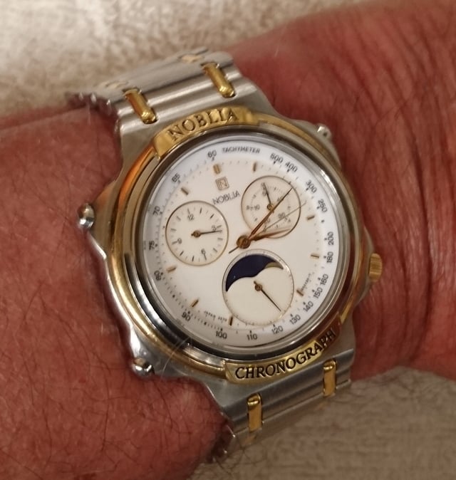 Funky Quartz Noblia Chrono Christmas gift from the past from my daughter I wear the Noblia from time to time It's the thought that counts not this watch most WIS'S would not be caught dead wearing this watch. Several years later I educated her on watch selections and makers