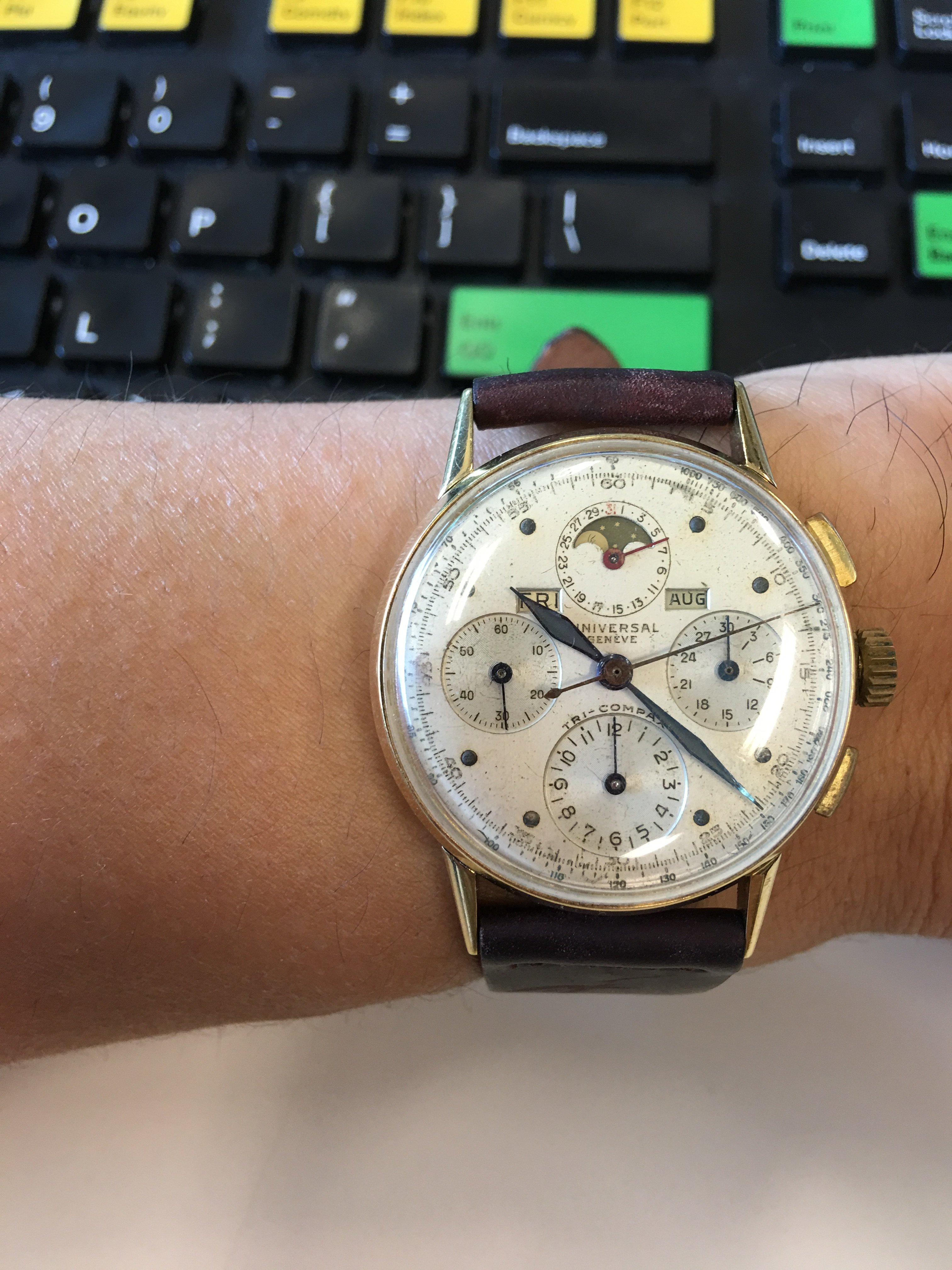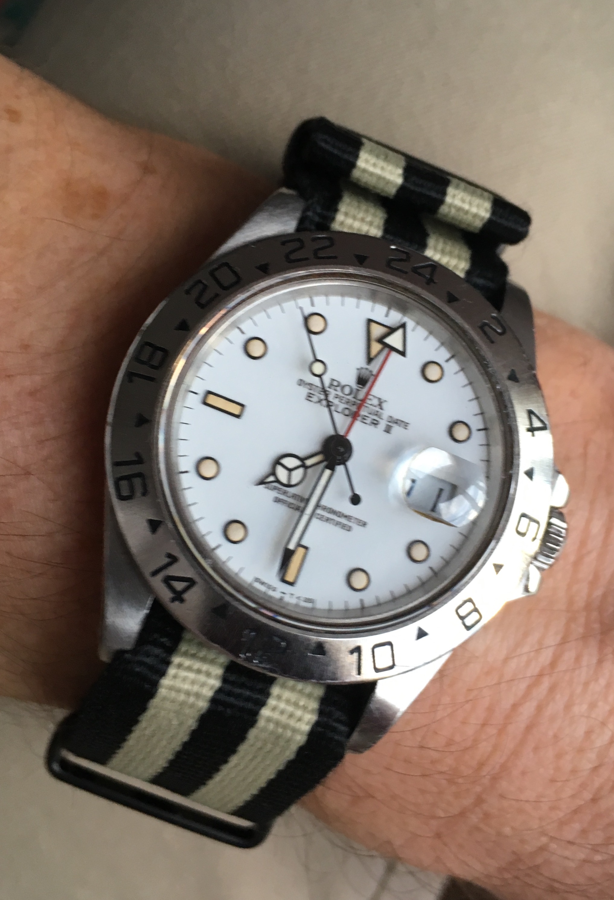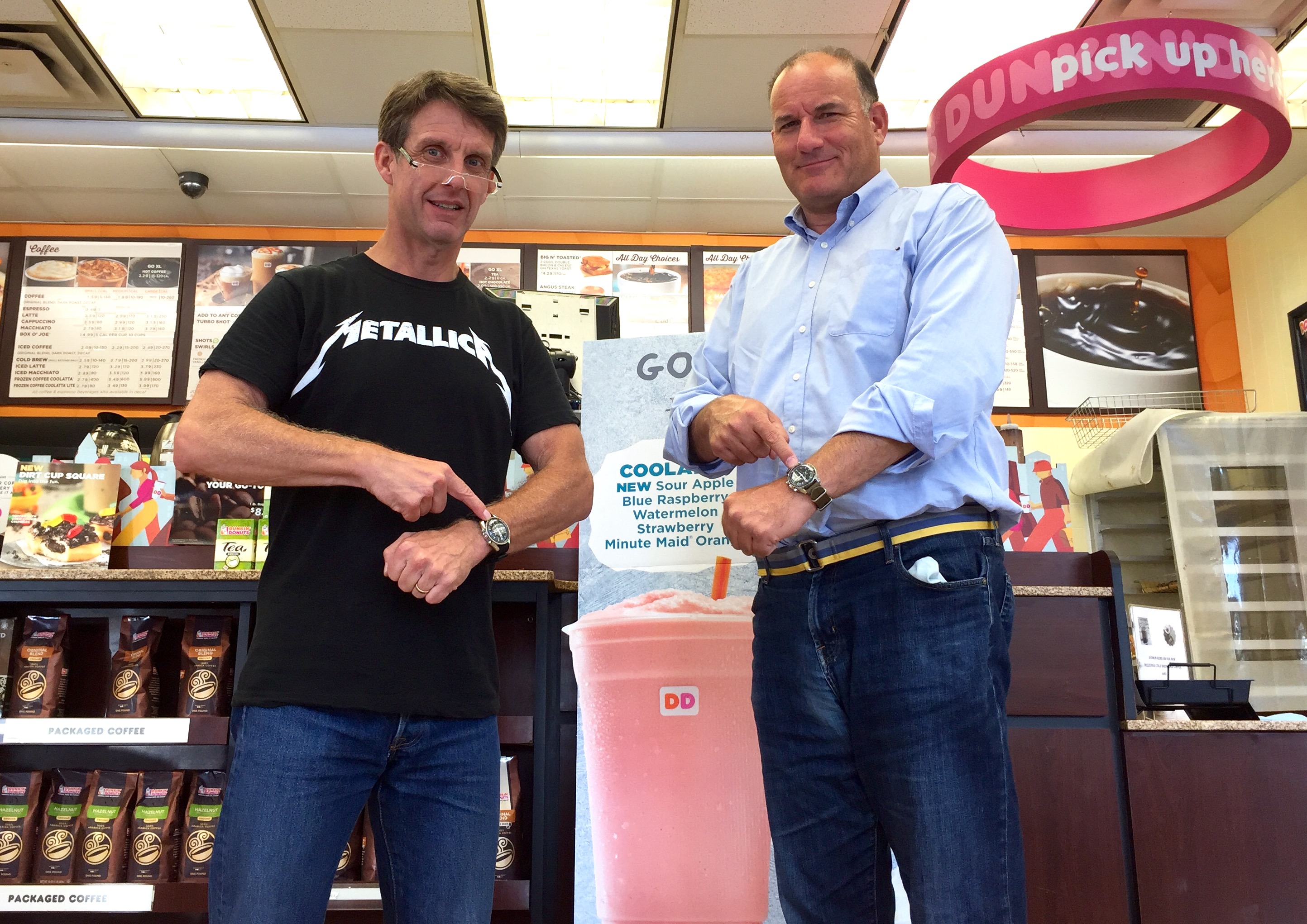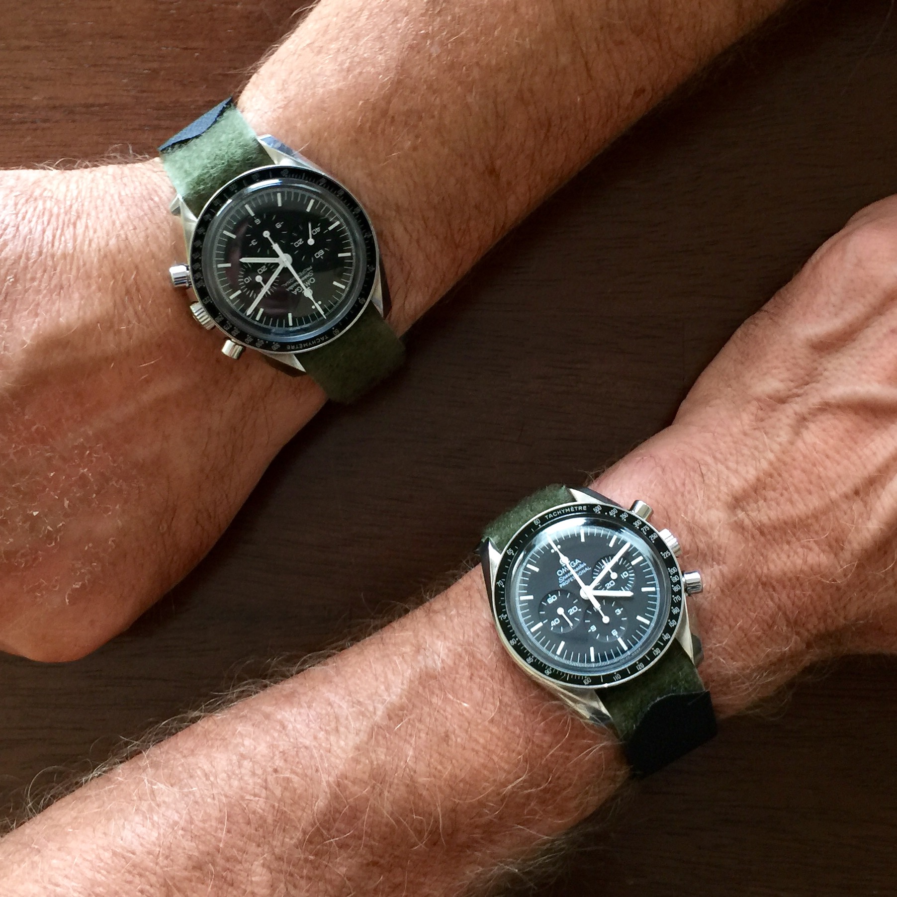 Both @ChuckMK23 and I are wearing our Speedy Gonzales watches today...at our local DD...AND Chuck gave me a pretty cool sturdy generic green/black Velcro band which he purchased on his recent mountain climbing expedition in the western US. The second pic below shows the sturdy generic green/black Velcro bands on both of our Speedy Gonzales watches...thanks again, Chuck! 馃憤