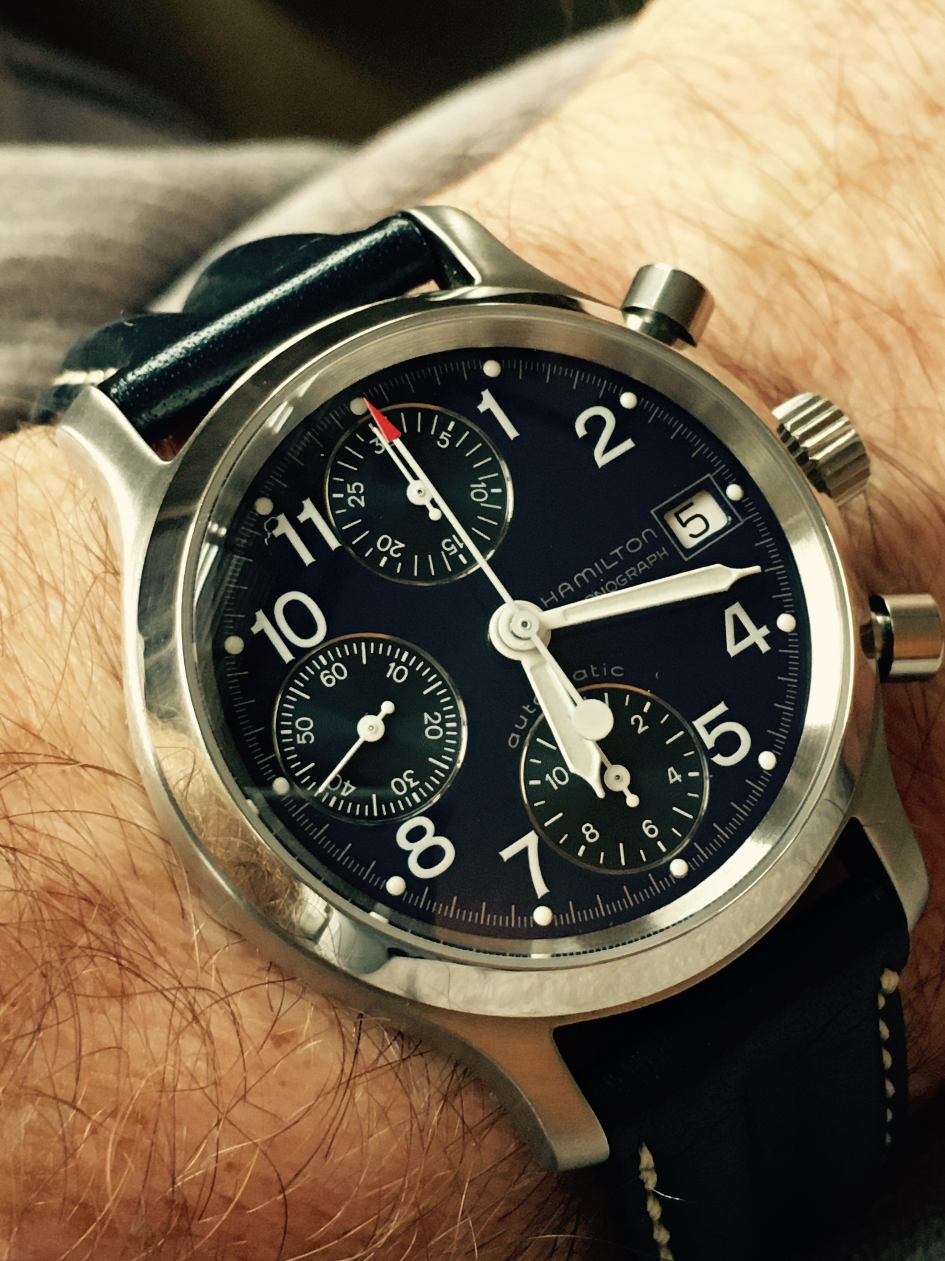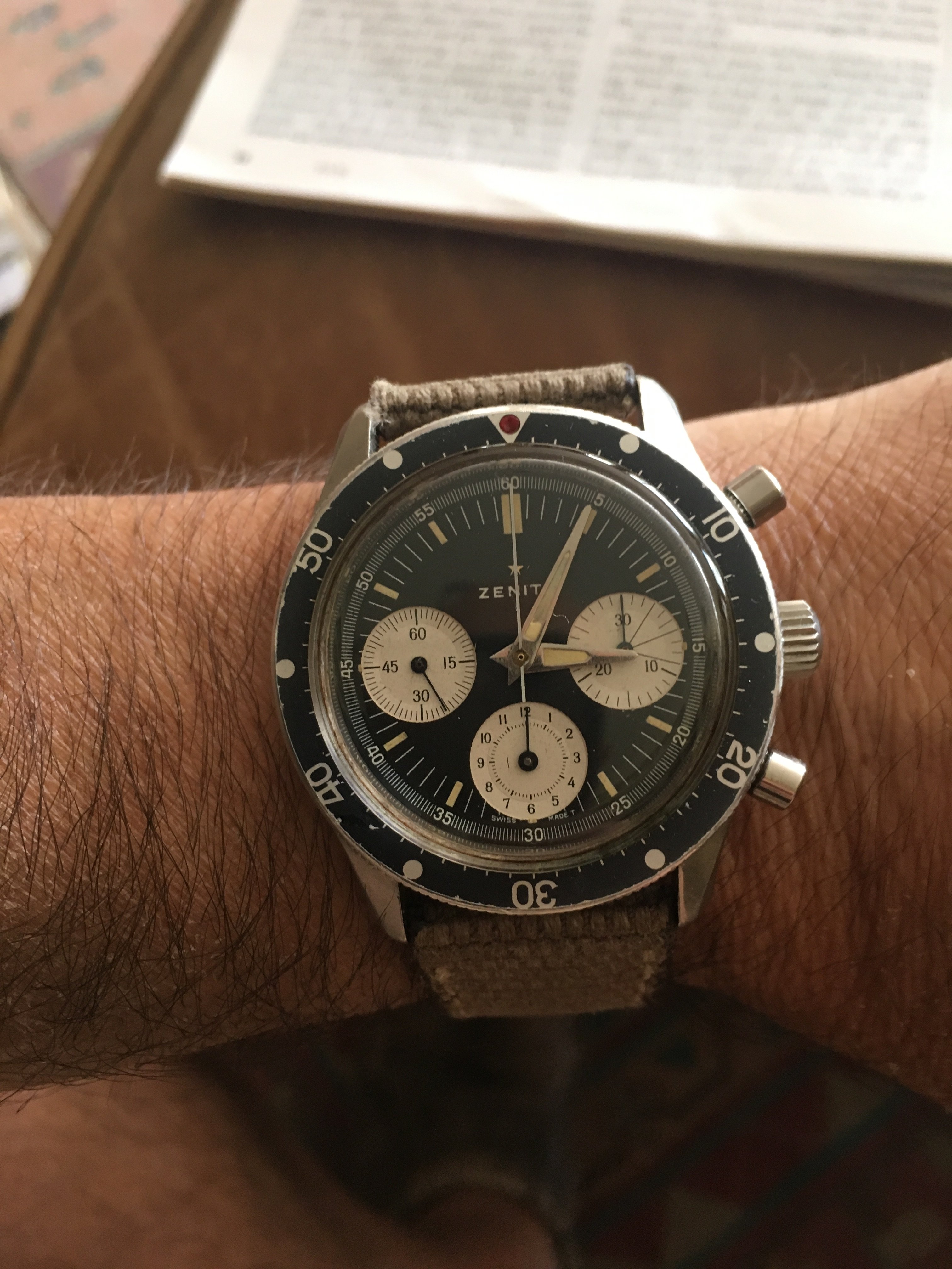 “barn find” 145.022-68ST. This one owner watch was purchased at an estate sale, just had a brand new (OEM) mainspring from Otto Frei installed, and is keeping excellent time with all functions working correctly.