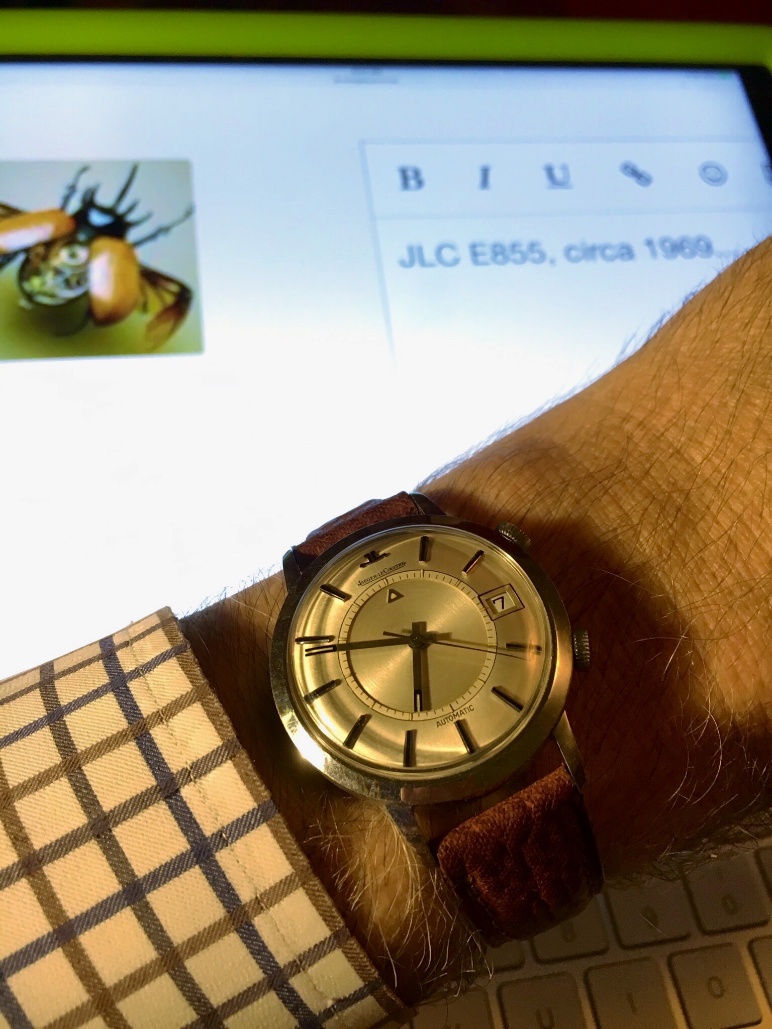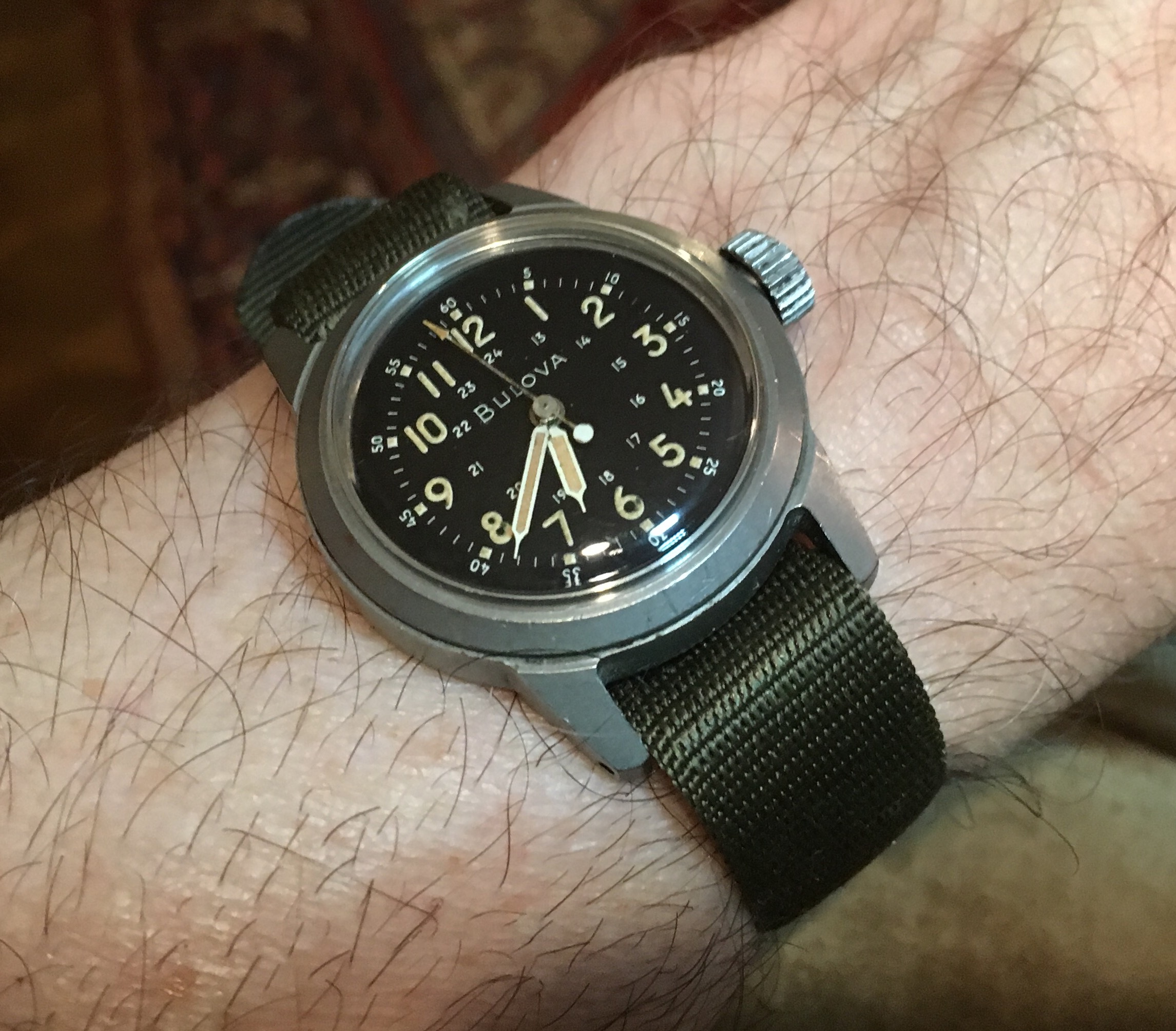 Wearing my Dad’s watch on an old strap I found. The watch was given to him by me and my Mom to his 60th birthday. The old man passed away in January 2015 at the age of 76.