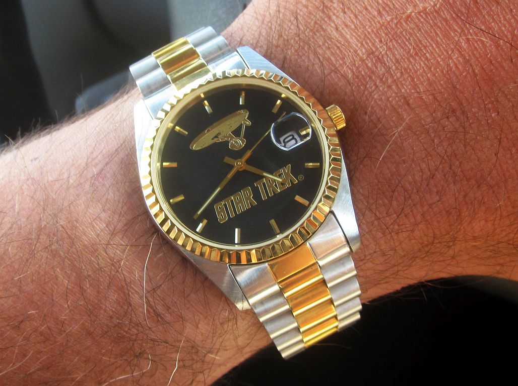 Note how the Starship Enterprise furturistically floats above the dial as the running second hand. Live long and prosper!