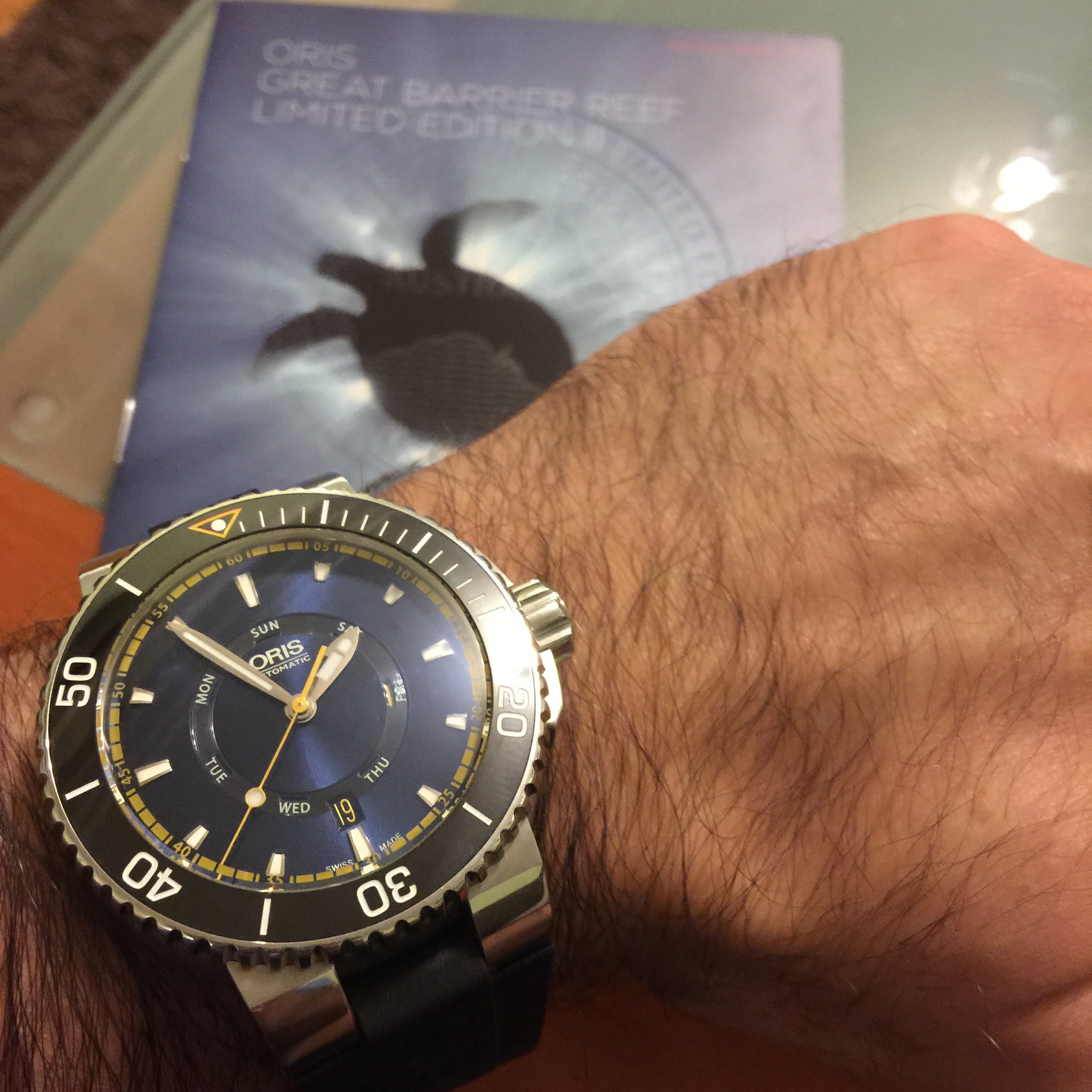 I like this dial more than that of the cover girl ref. A3818 with its painted effects. This metallic dial really plays with the light.