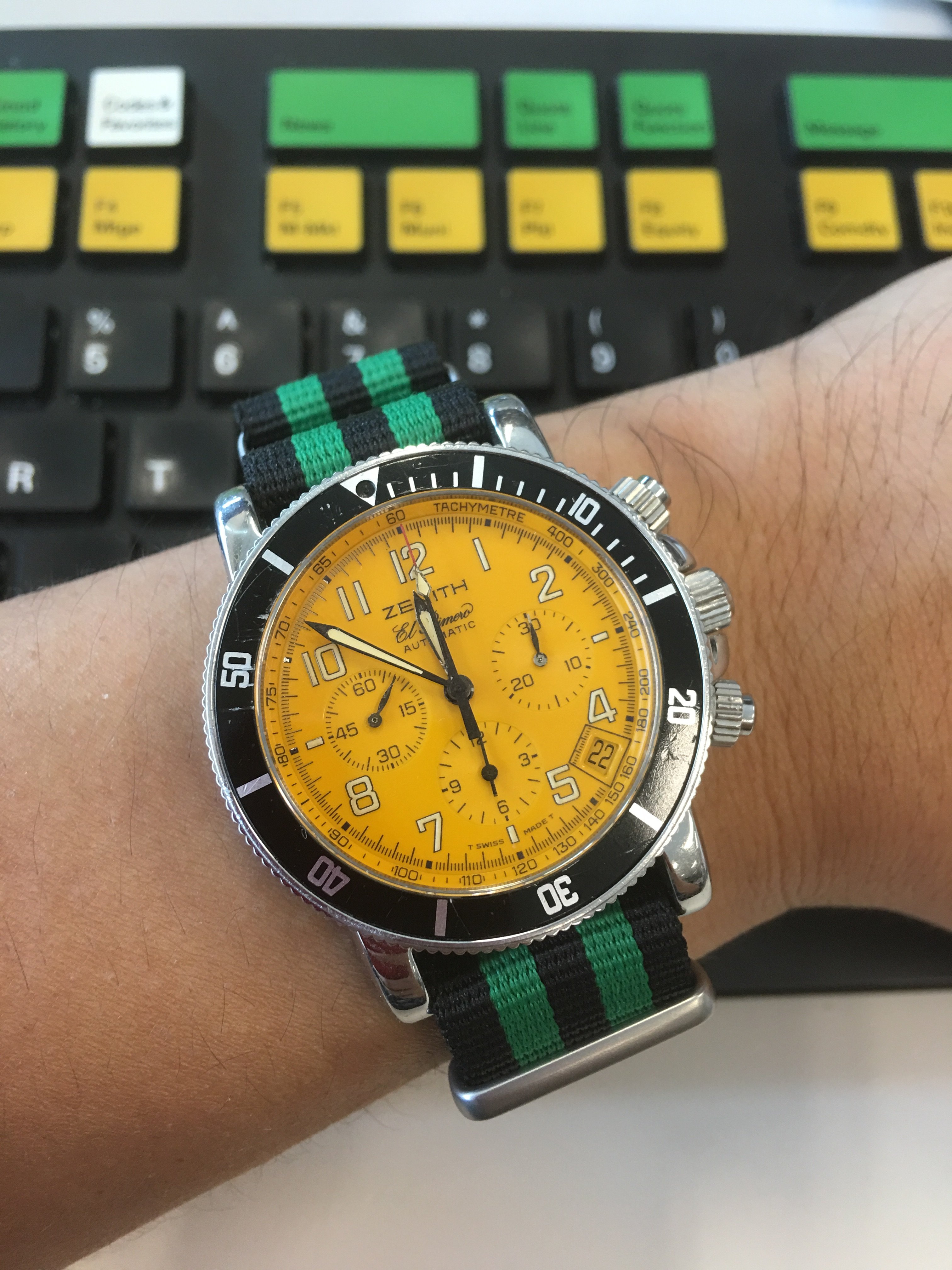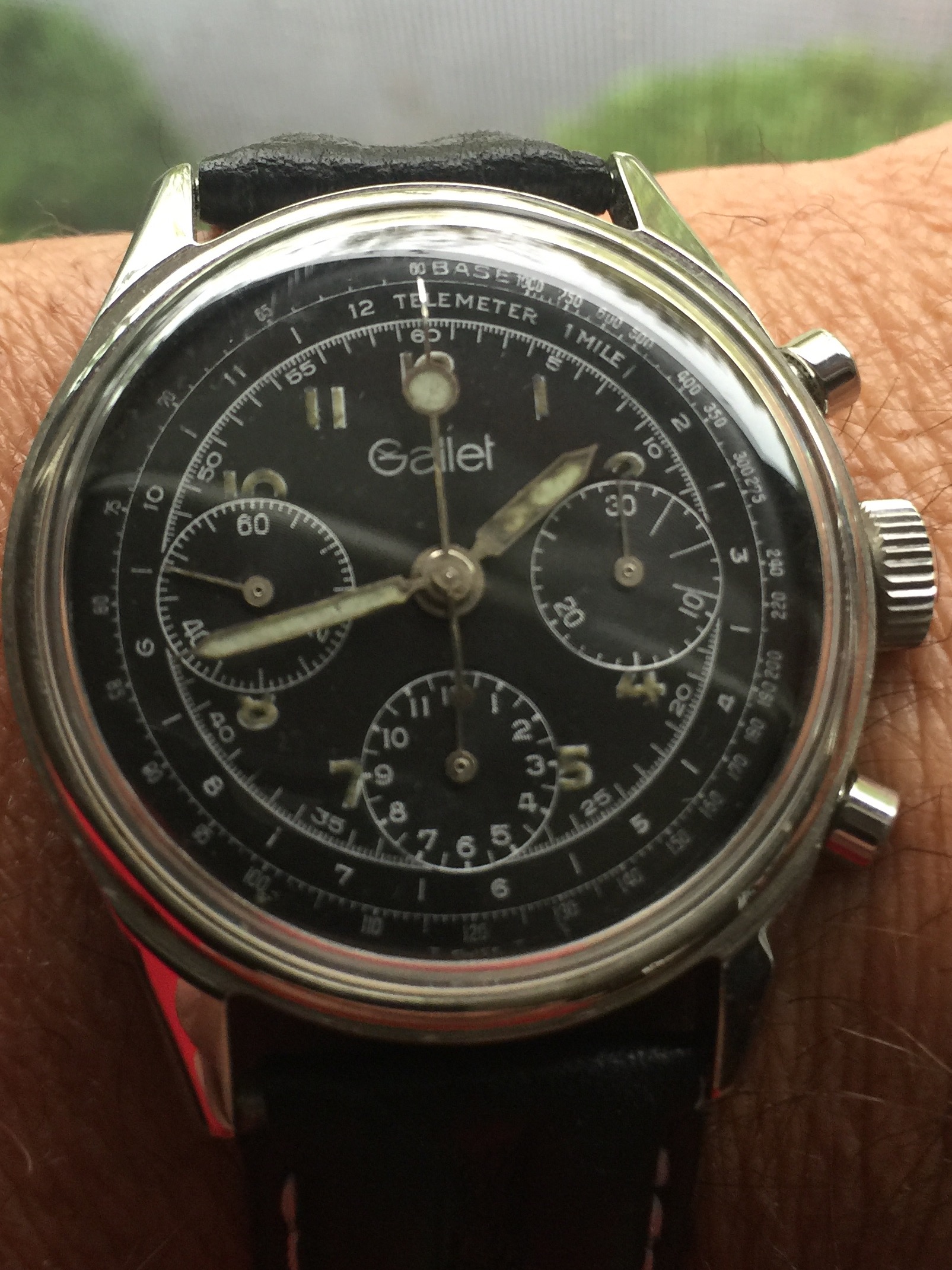 Posts 13,714 Likes 53,533 Larry S ·Sep 21, 2016·Color Commentator for the Hyperbole. Gallet Multichron 12H ... Circa 1970's. Jim Clark ish ..mysterious lollypop Chrono hand....oh well I love it and it looks cool. Could be my noob tax ... Dunno.