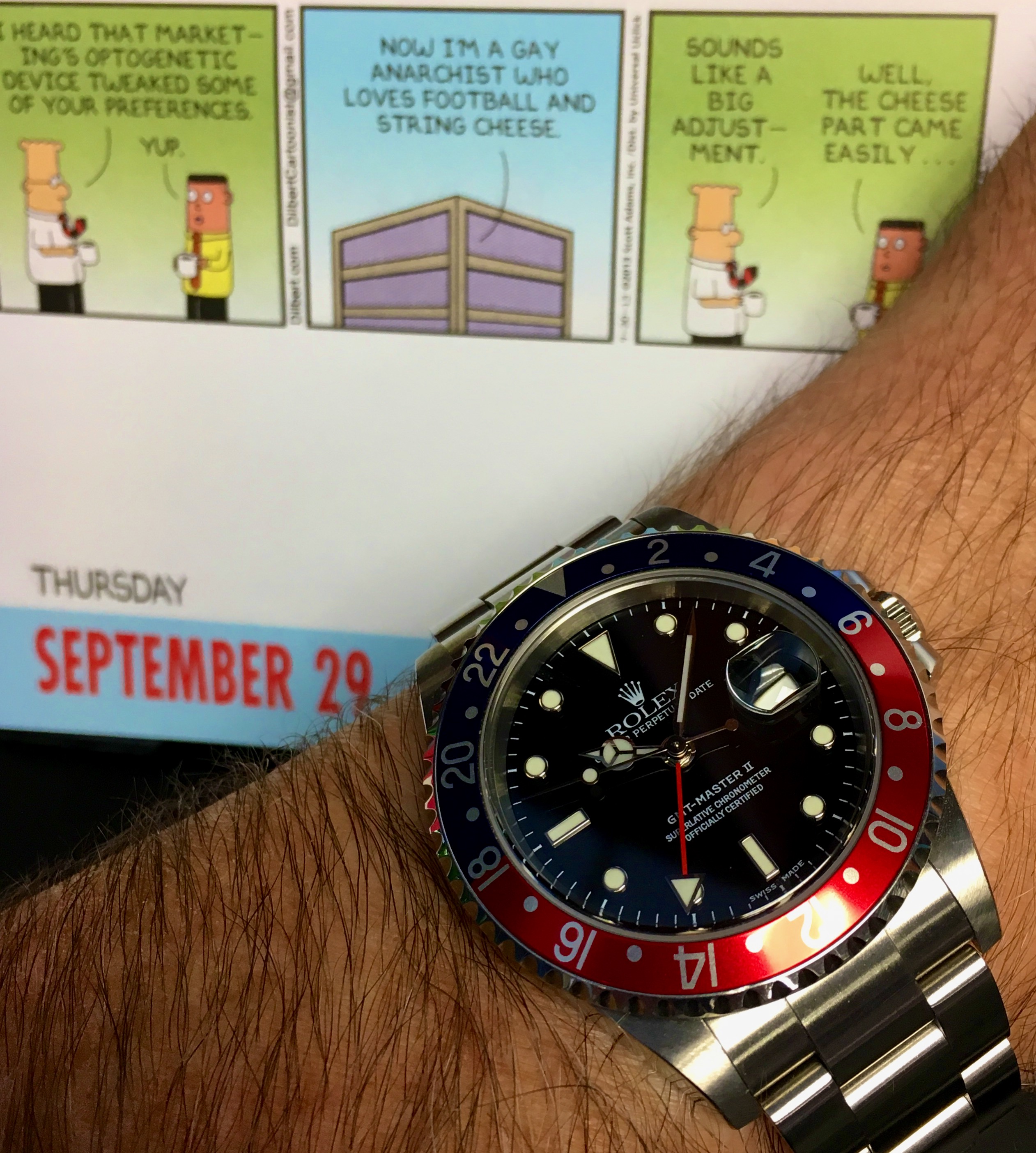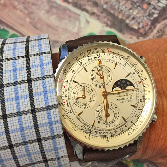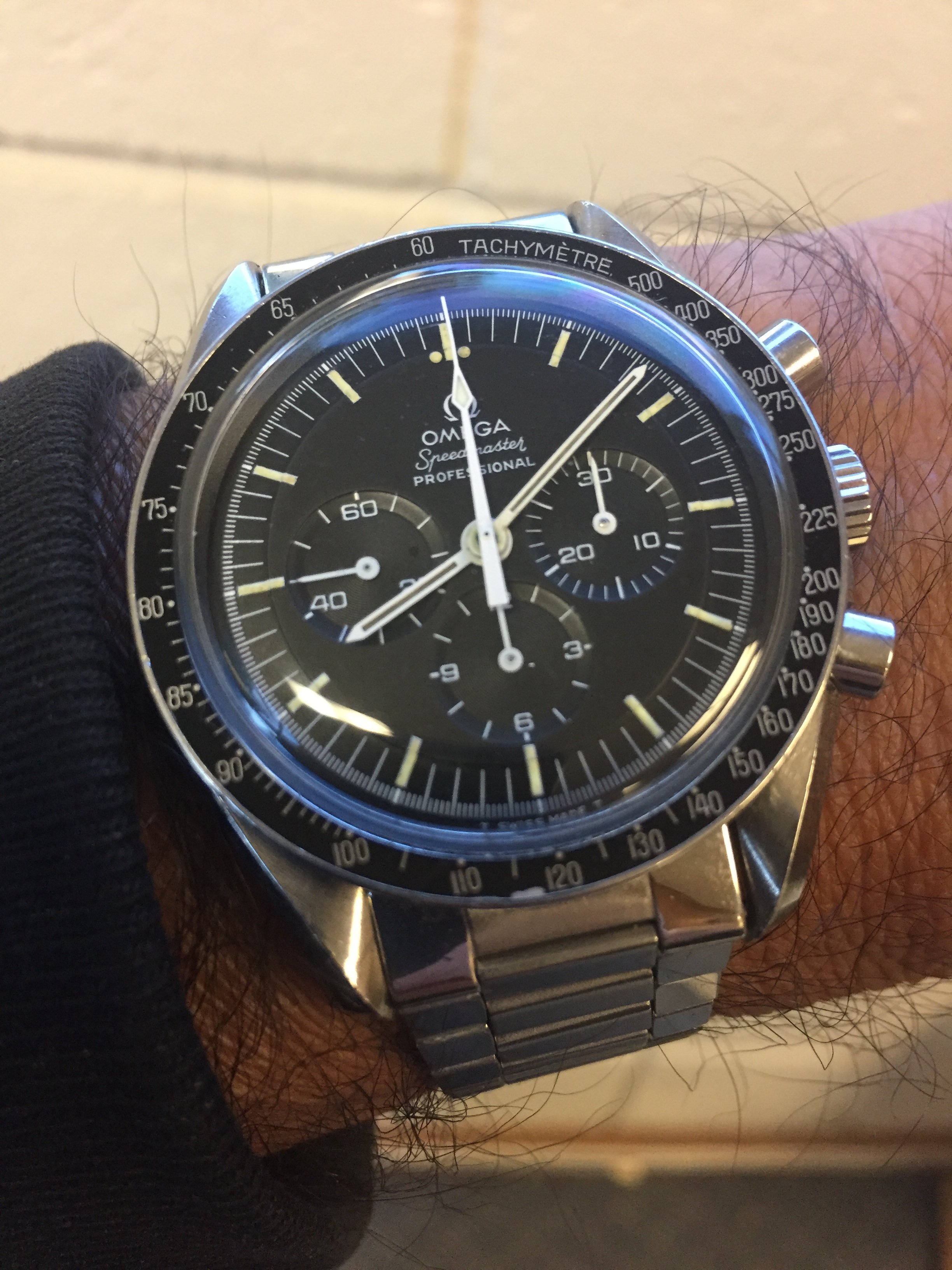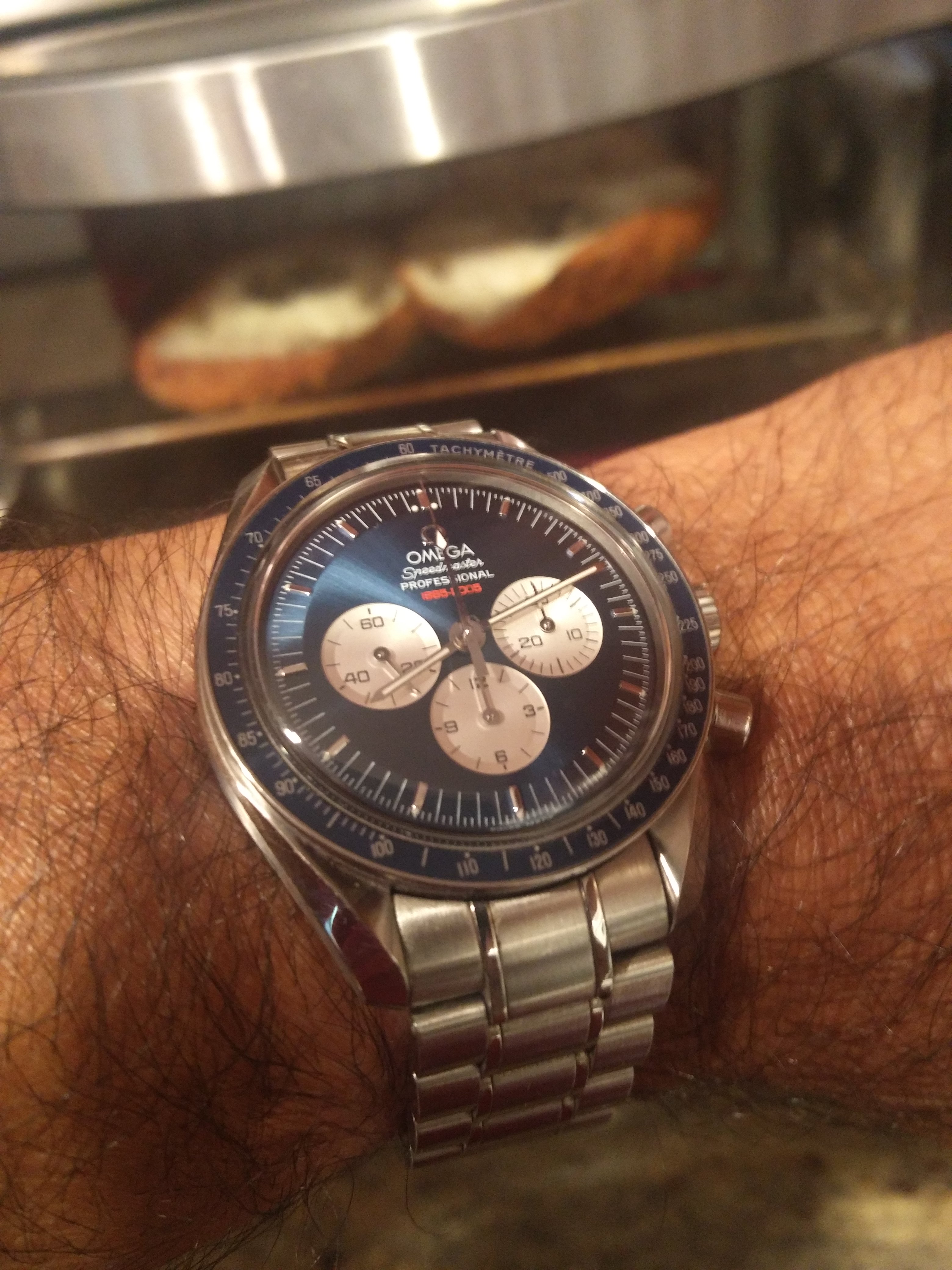 ··Not in LA anymore.Still honeymooning with this watch before we switch over to Team Omega this afternoon and Mrs.Jones and I fly off to Minneapolis for the Ryder Cup. When I bought the watch it had an improperly-sized, cheap-ish strap -- 21mm in 22mm lugs, so I found an OEM strap at a grey market dealer for a good price. Today is the first day wearing the new shoes 😀