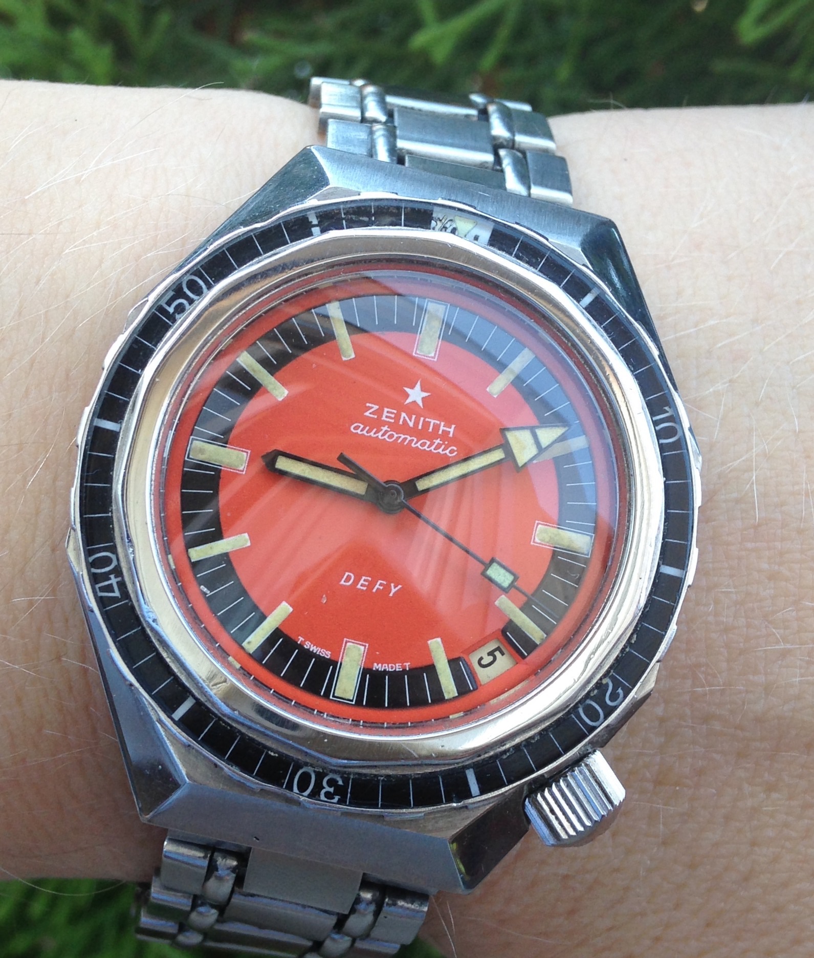 Posts 392 Likes 3,946 Mick Tock ·Oct 5, 2016 This is an early Zenith ref. A277 chronograph, driven by a Zenith cal. 146H. I love the even aging of the bezel, the dial, and the hands. I was lucky to get the watch on the matching ladder bracelet. Enjoy, Mick