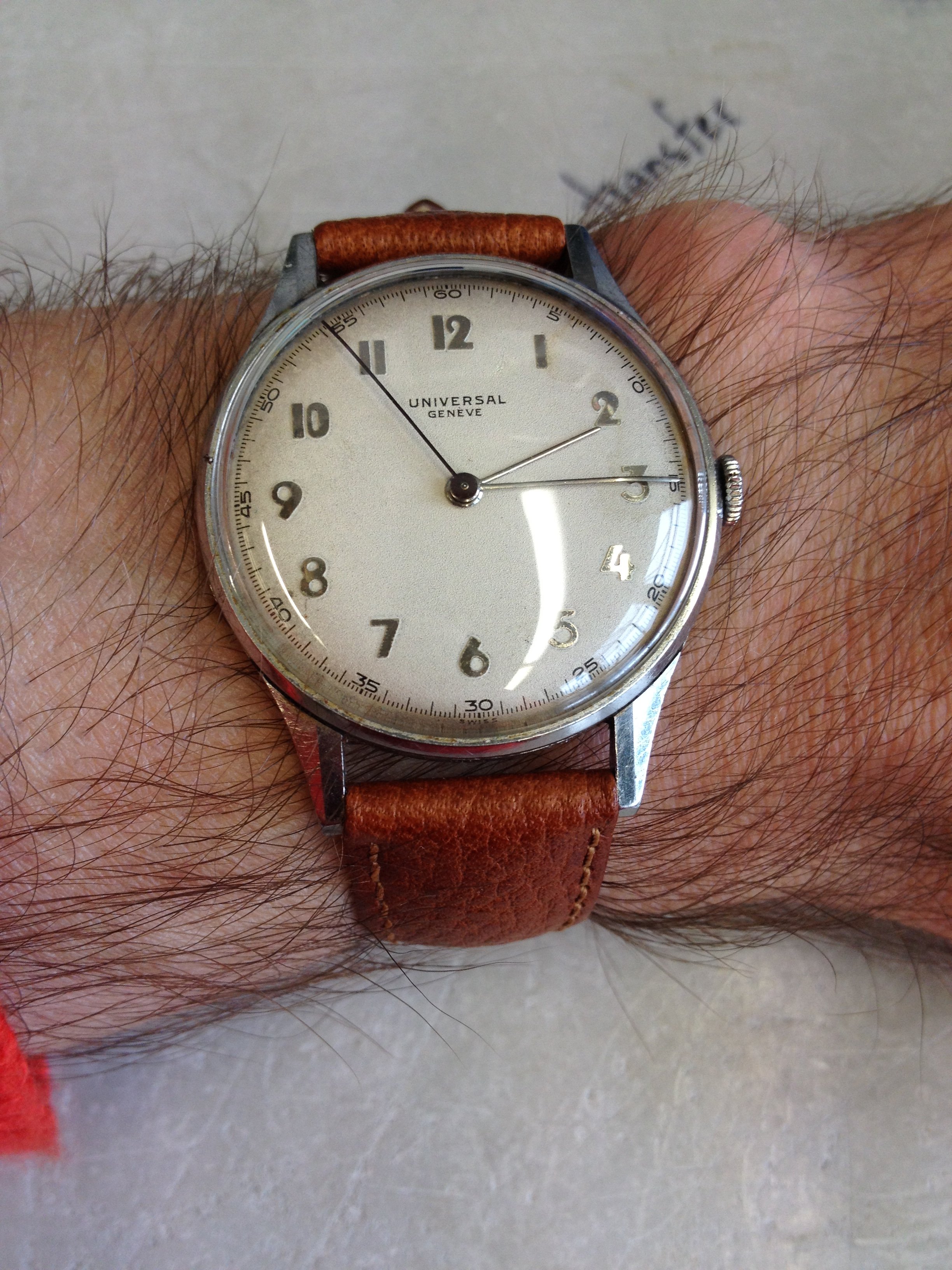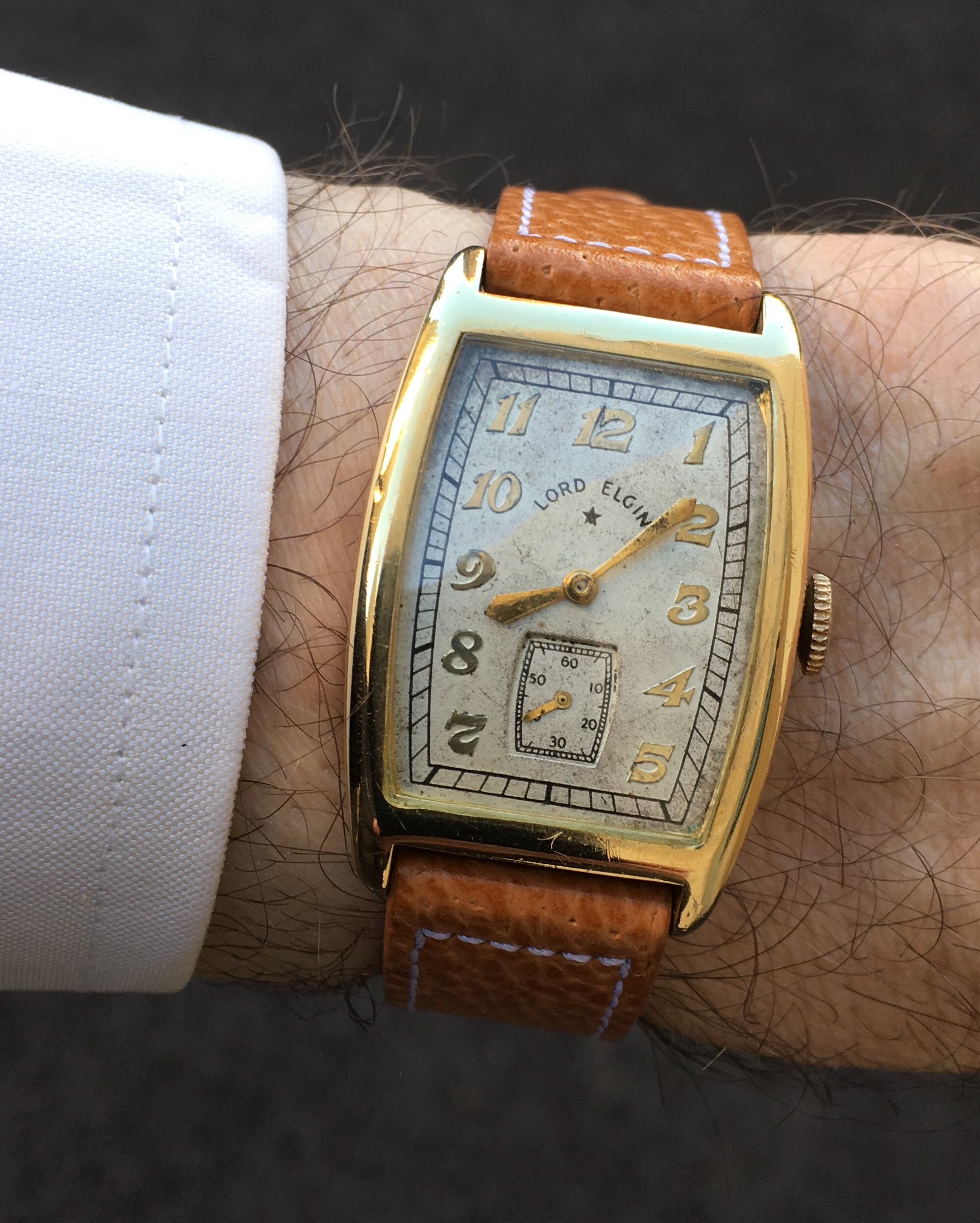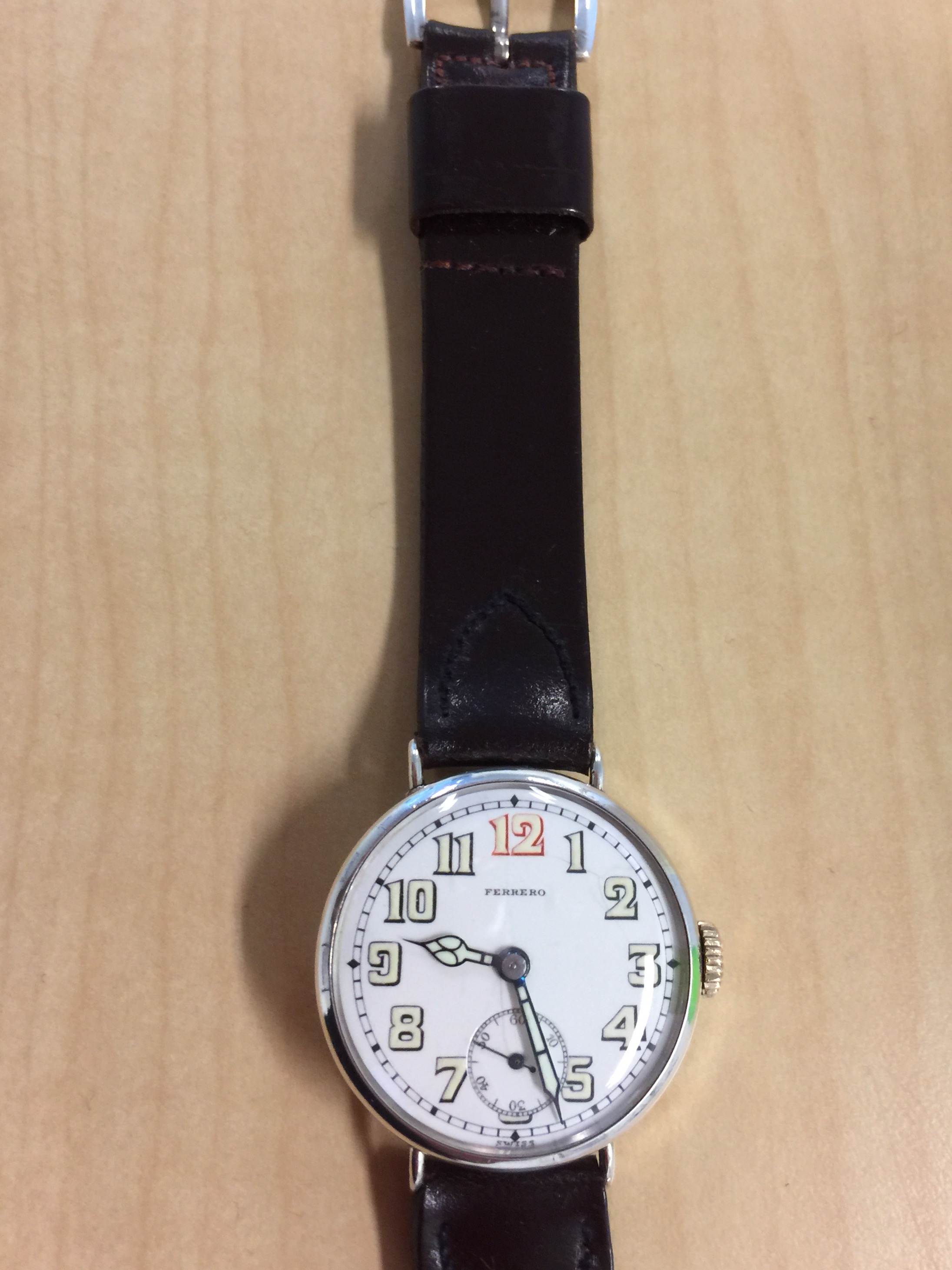 Various watchmakers tinkered with the elderly movement until one actually spent some time poising the balance and adjusting the escapement, so now it keeps good time, some few seconds a day on the wrist.